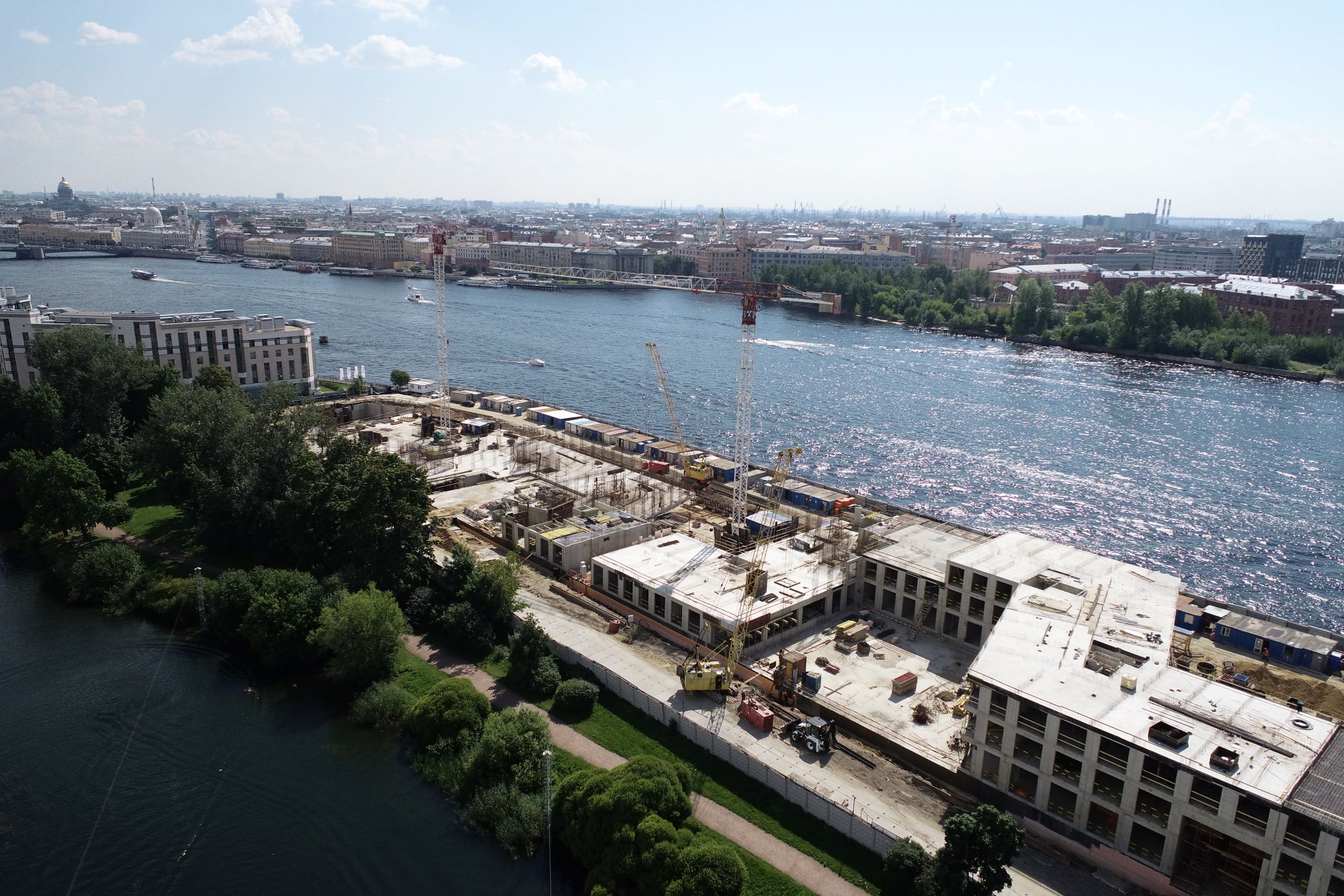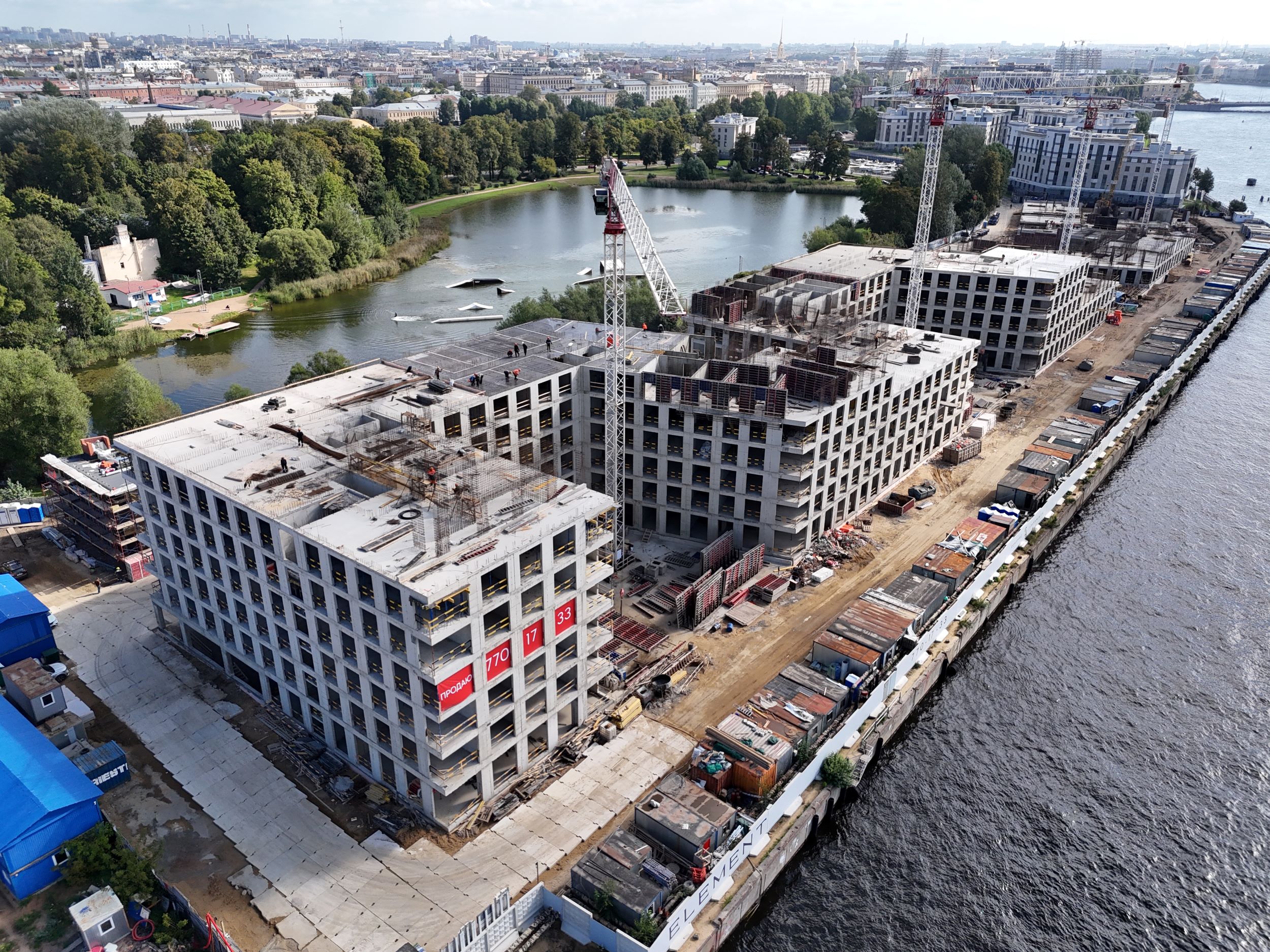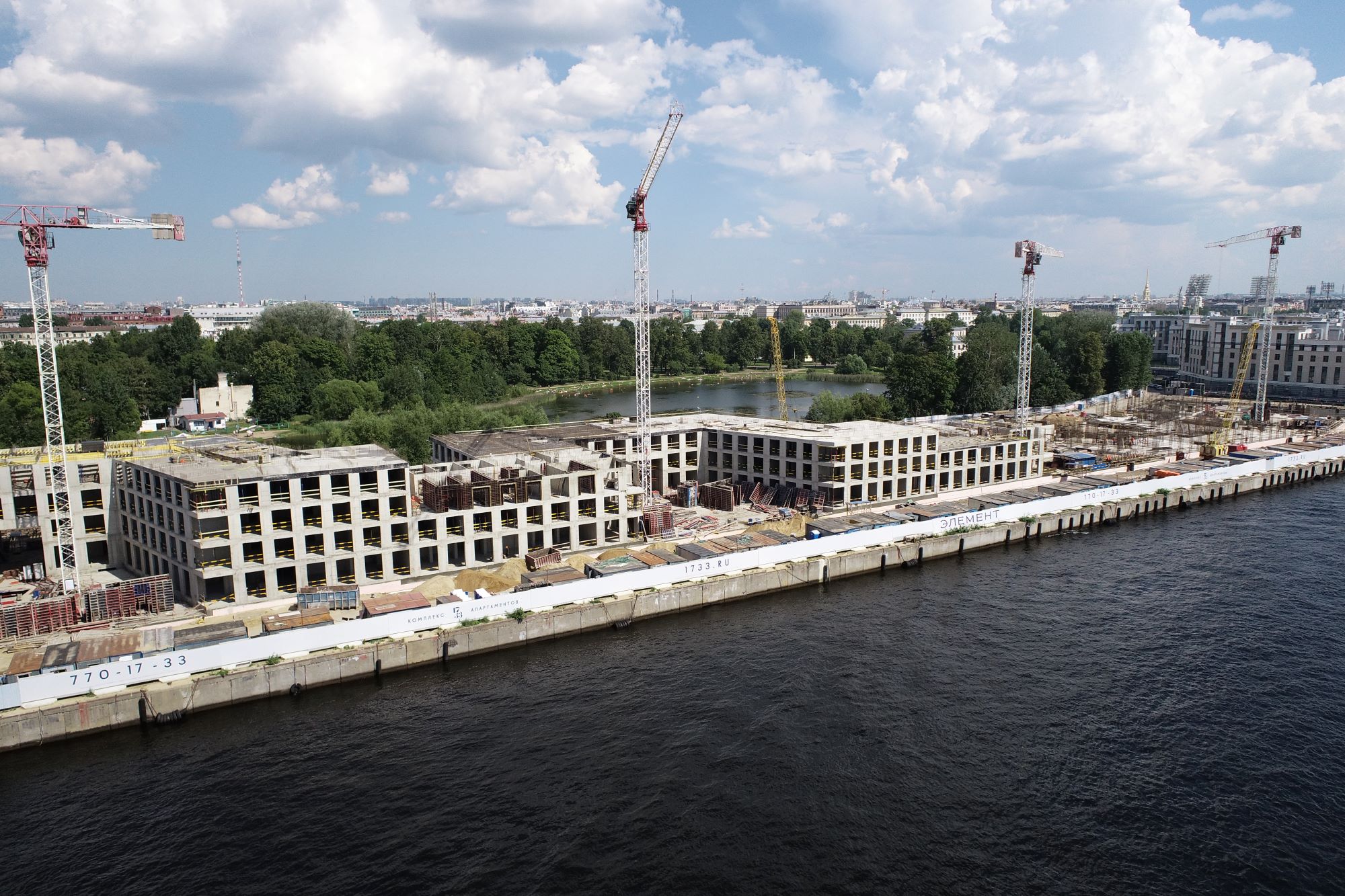 На закрытой территории ЖК «Петровский остров 17/33» комфортные зоны для отдыха, променад вдоль живописной набережной Невы и собственный причал для яхт.