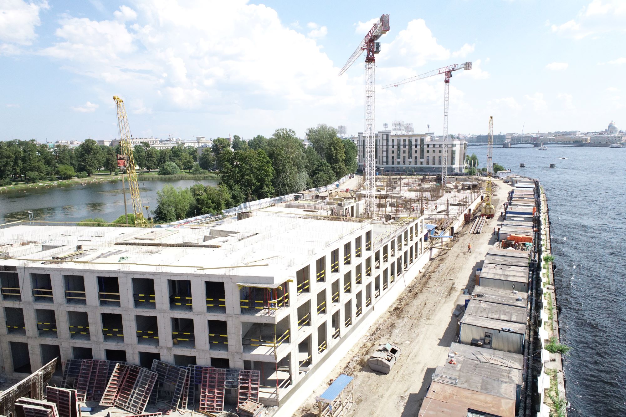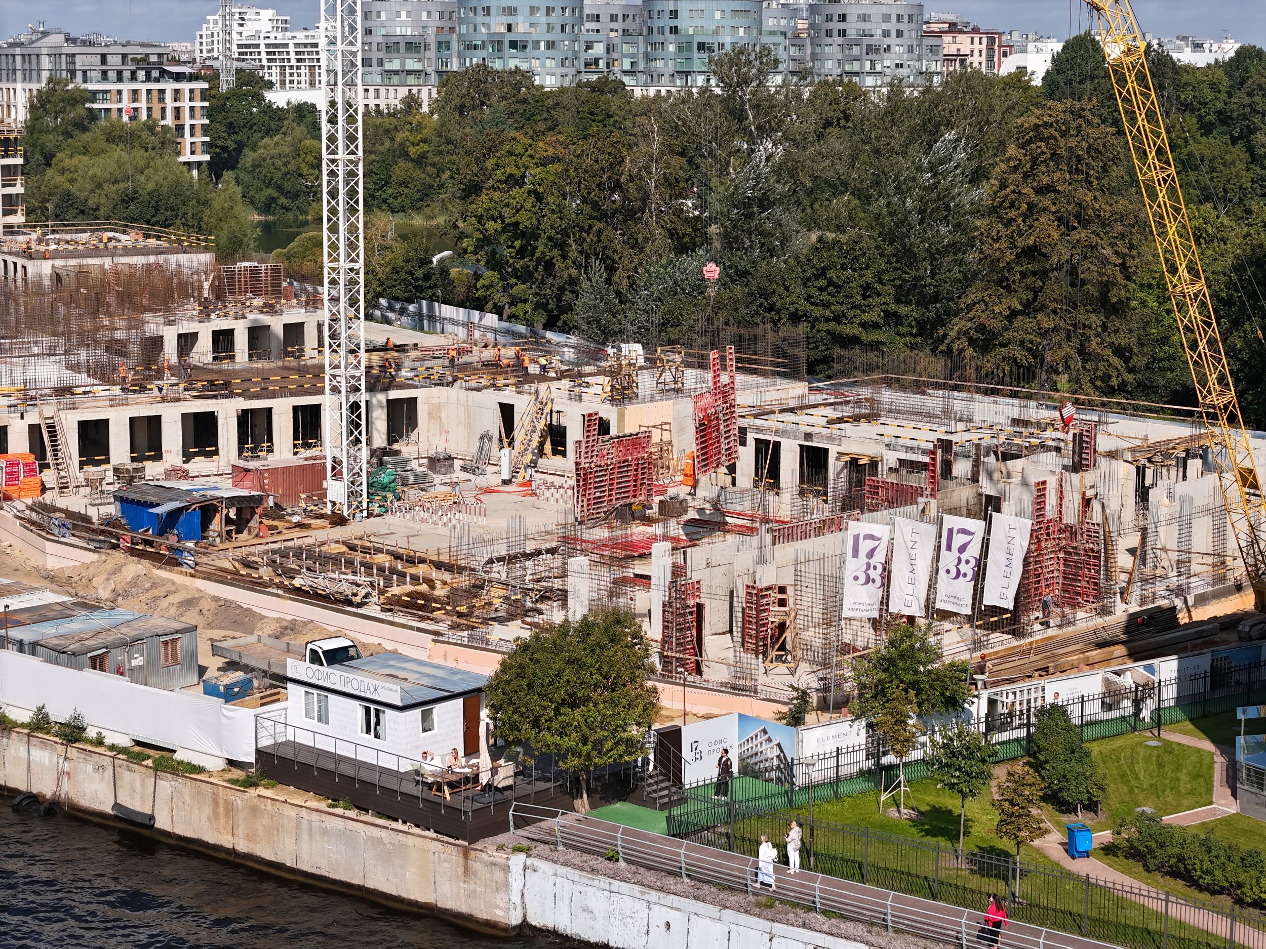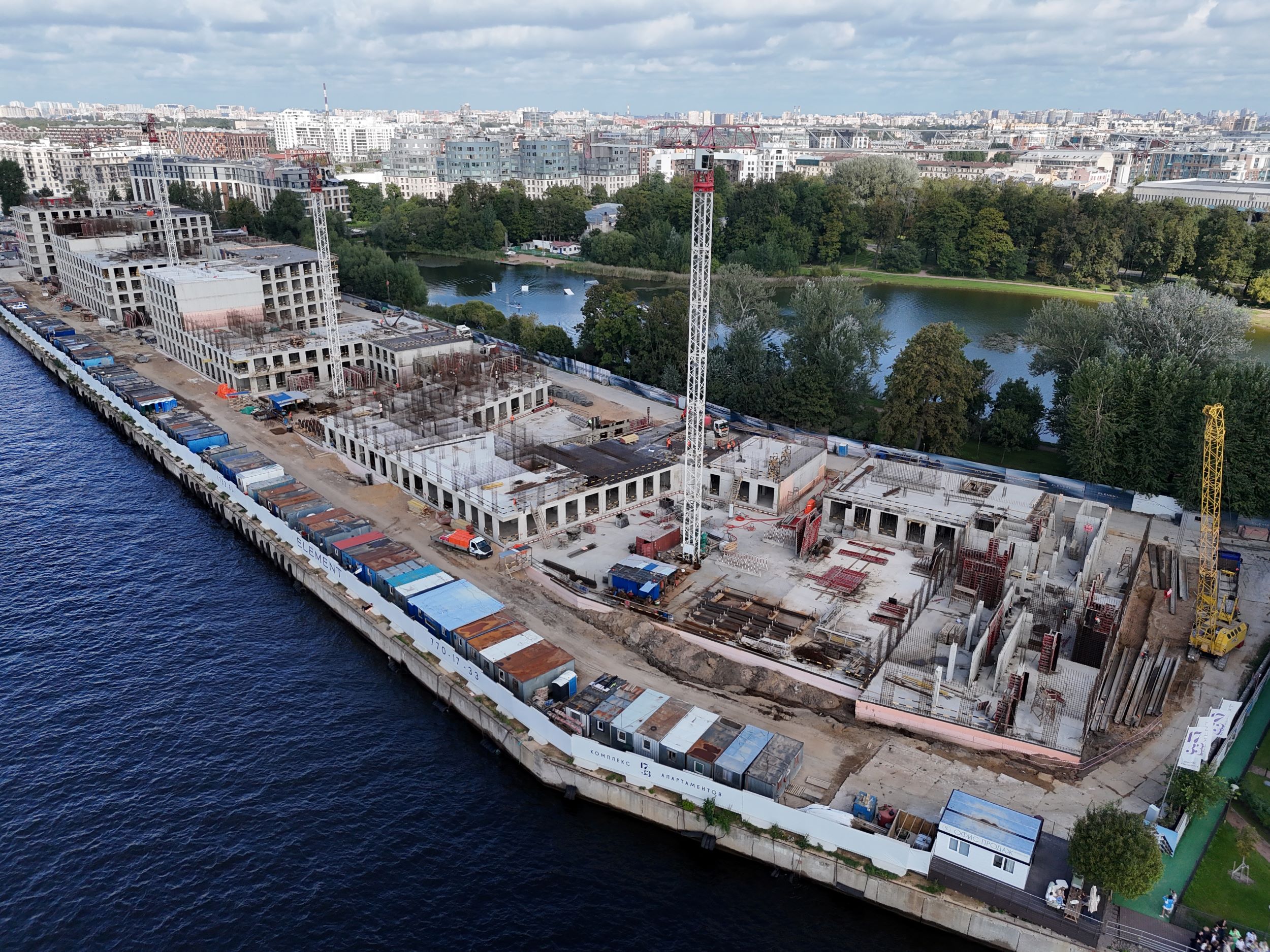 На закрытой территории ЖК «Петровский остров 17/33» комфортные зоны для отдыха, променад вдоль живописной набережной Невы и собственный причал для яхт.