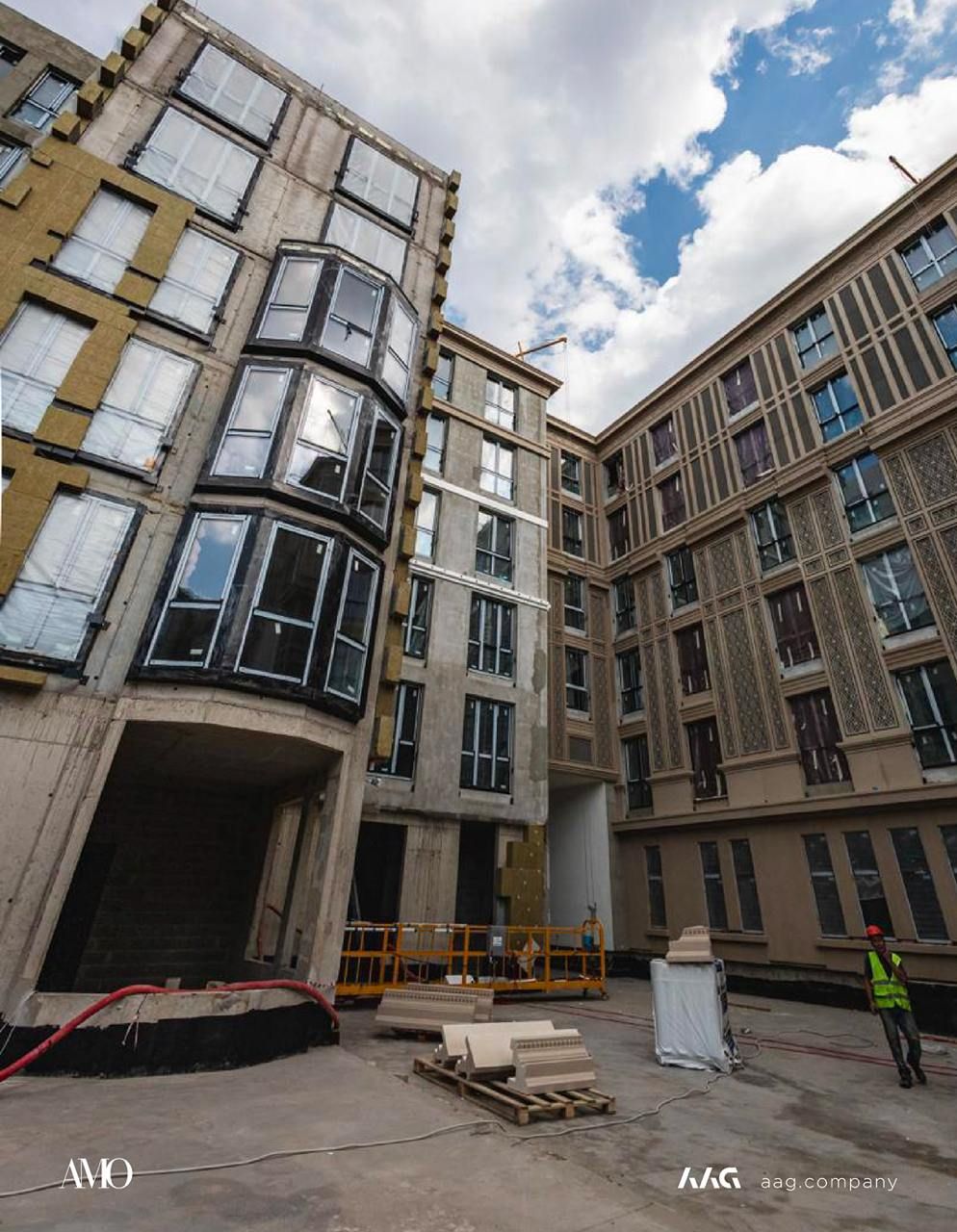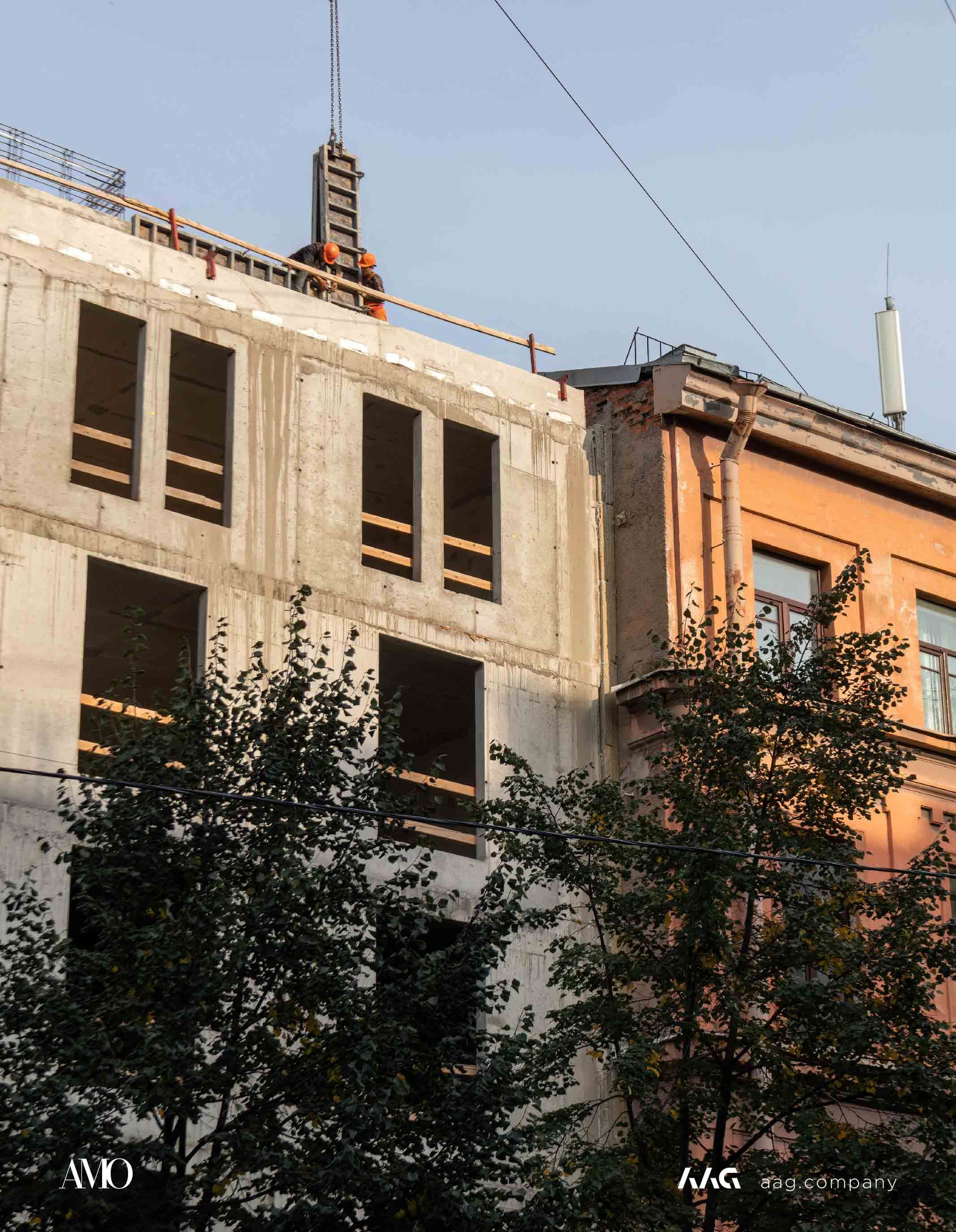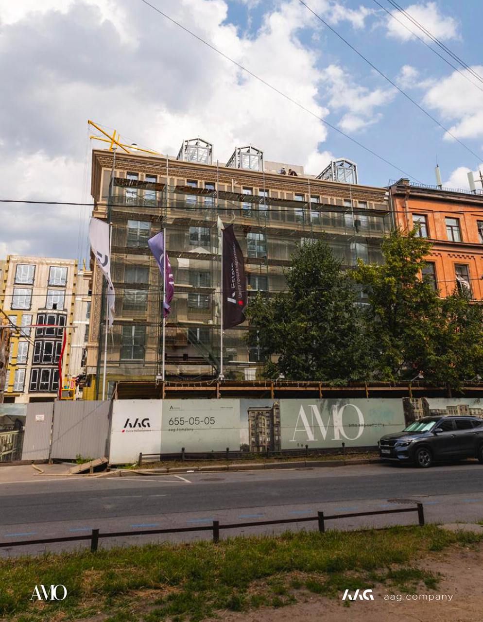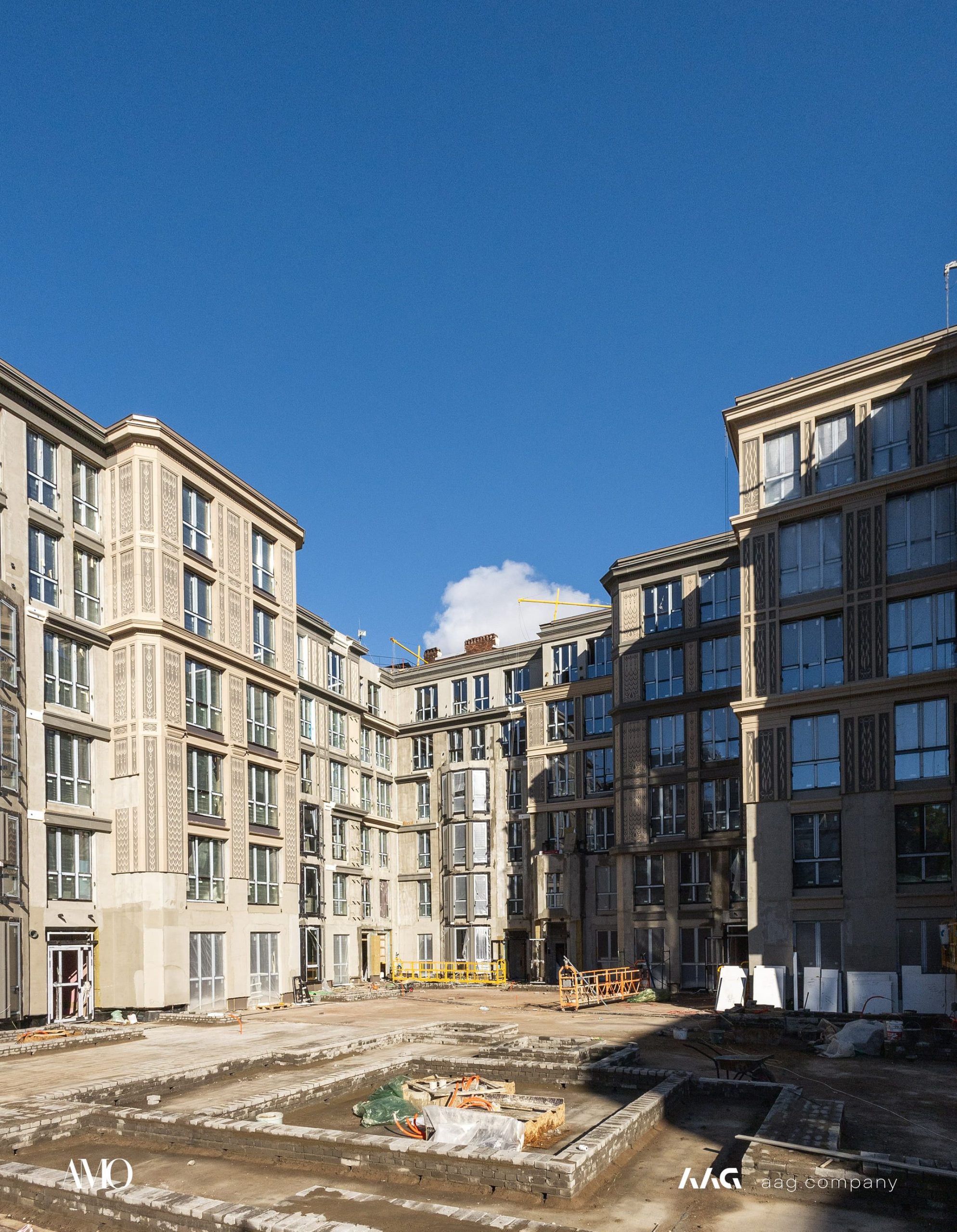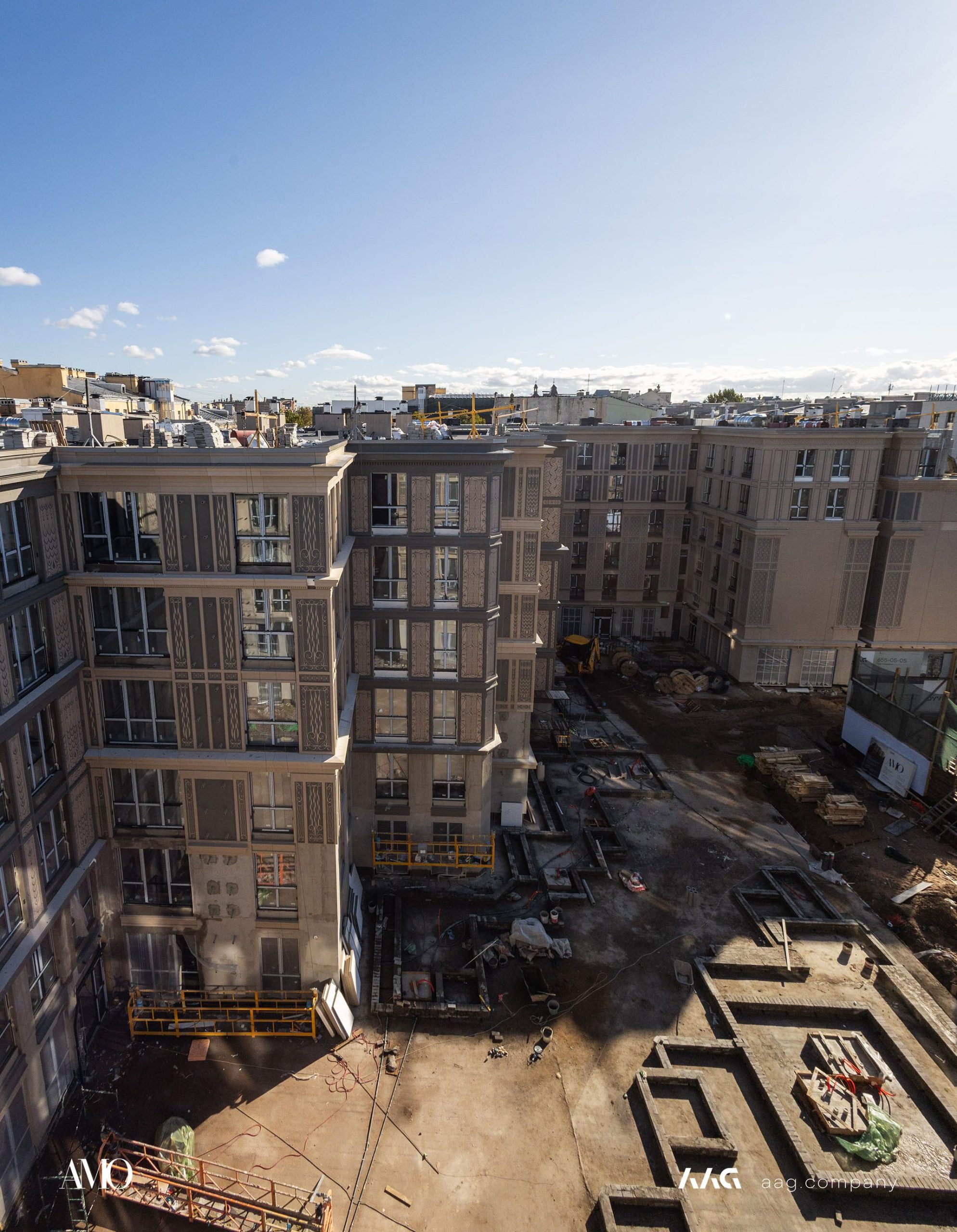 Сам «AMO» — ЖК из трех секций, расположенных в форме буквы П, что характерно для ступенчатой старинной застройки центральных районов Петербурга.