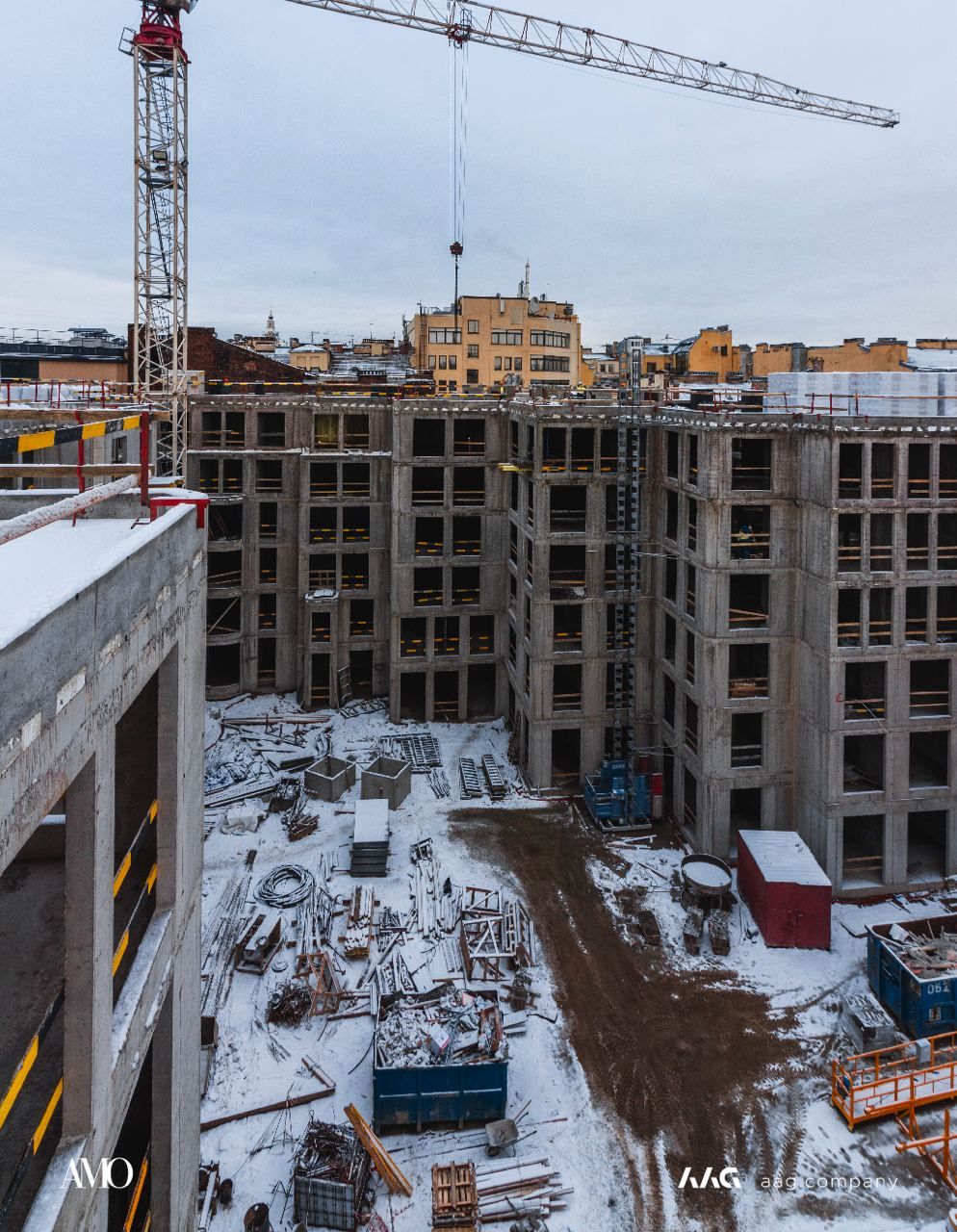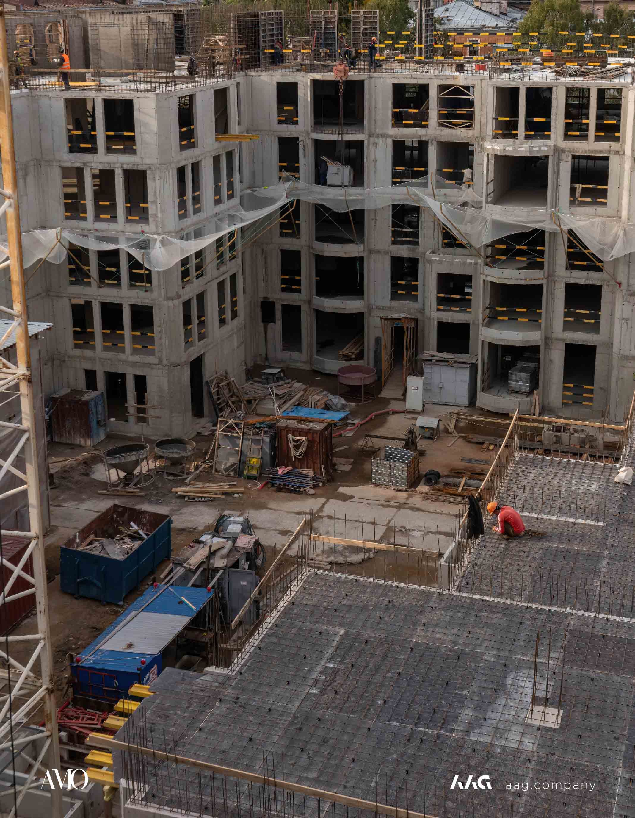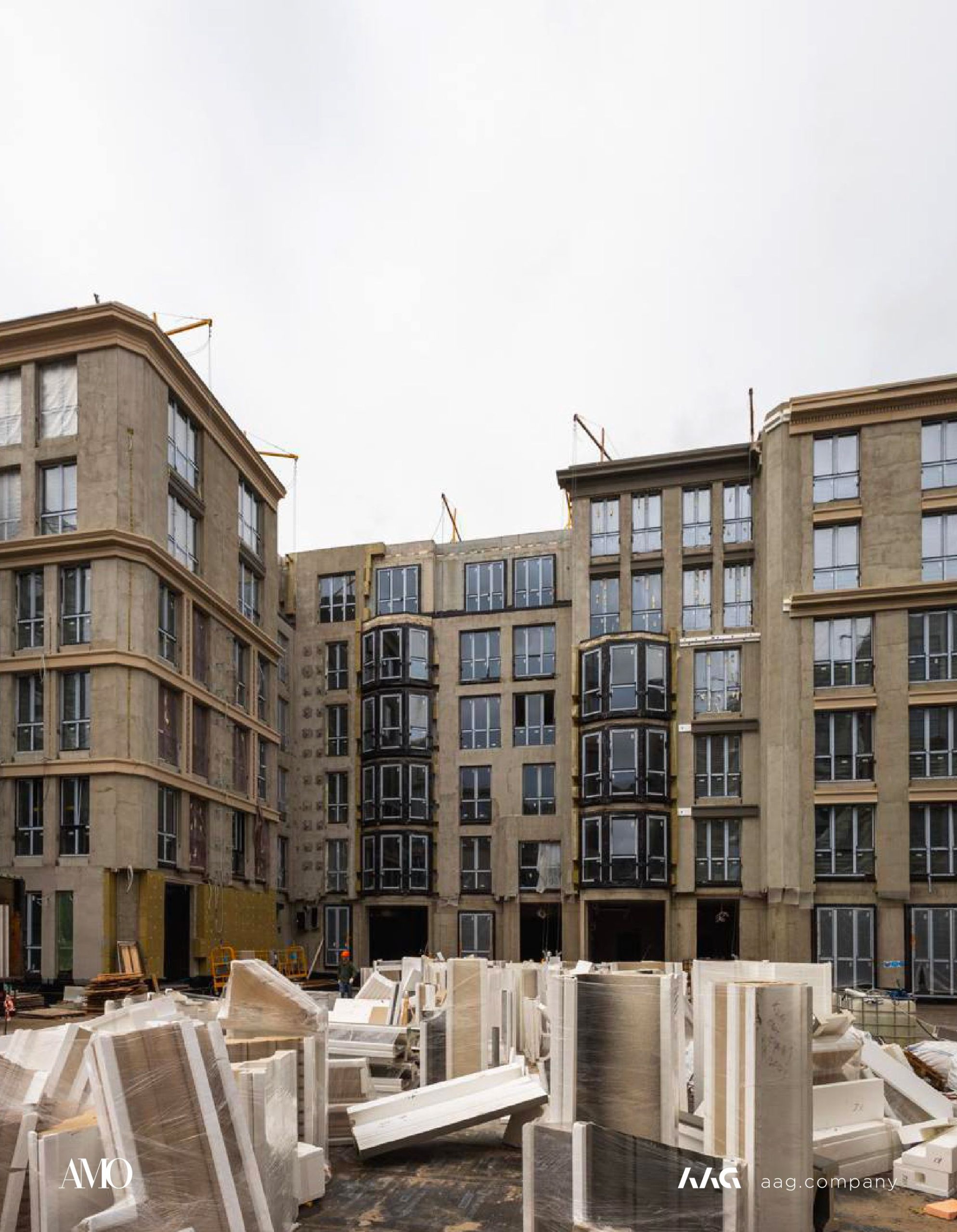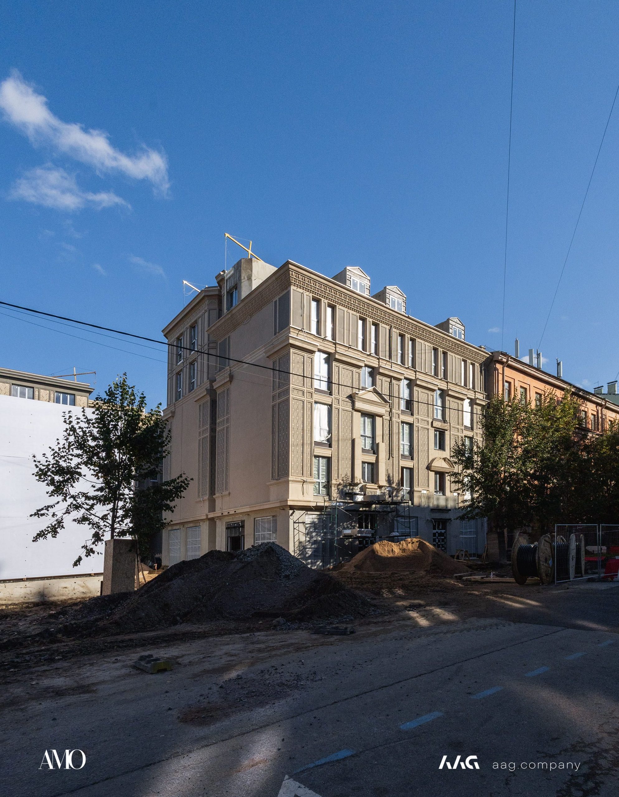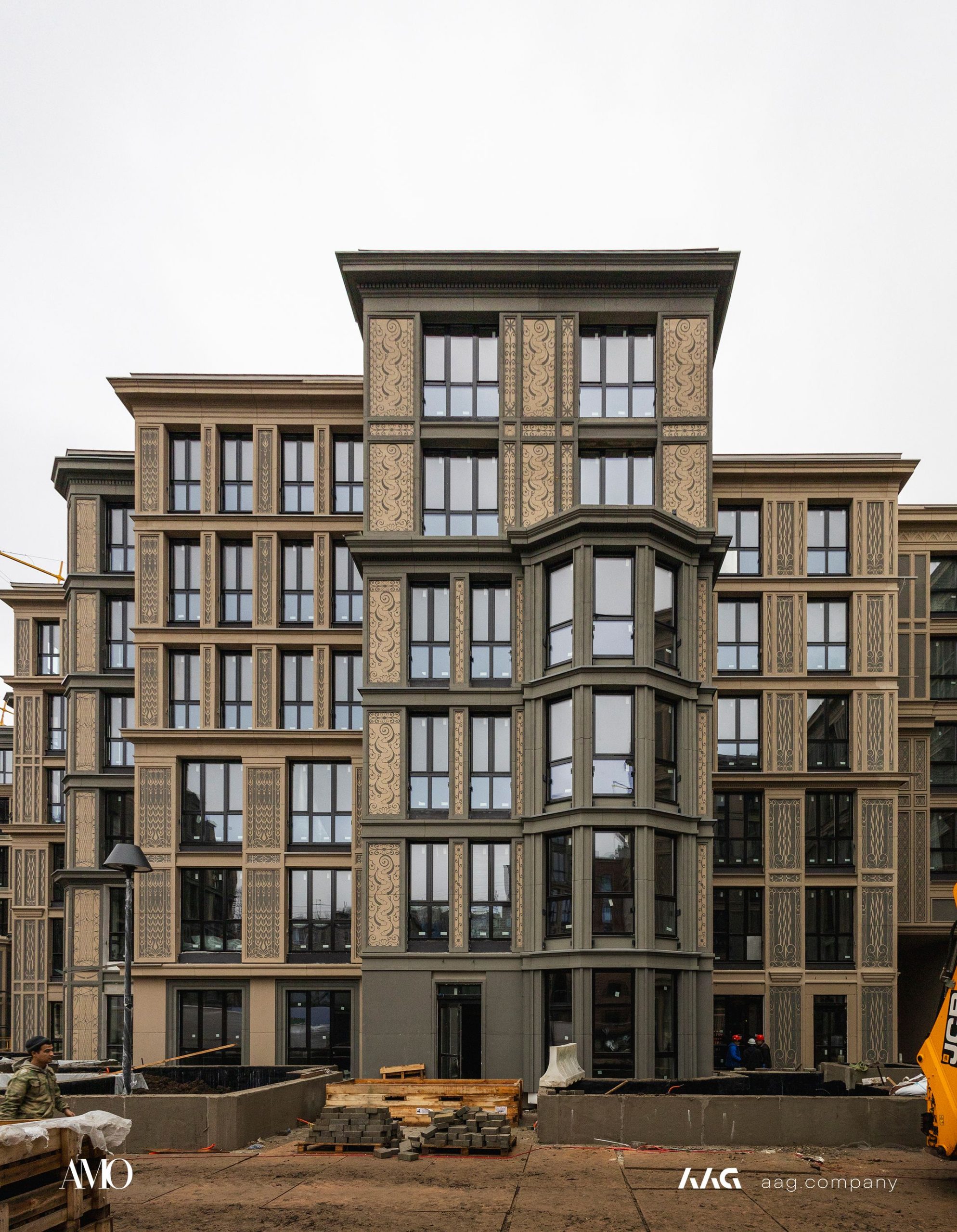 Сам «AMO» — ЖК из трех секций, расположенных в форме буквы П, что характерно для ступенчатой старинной застройки центральных районов Петербурга.