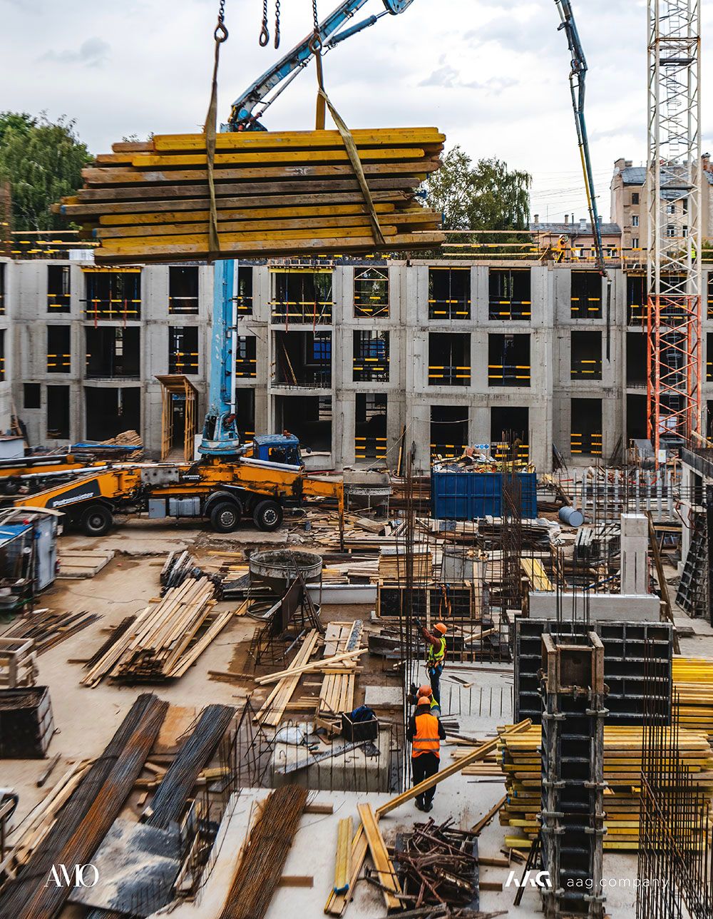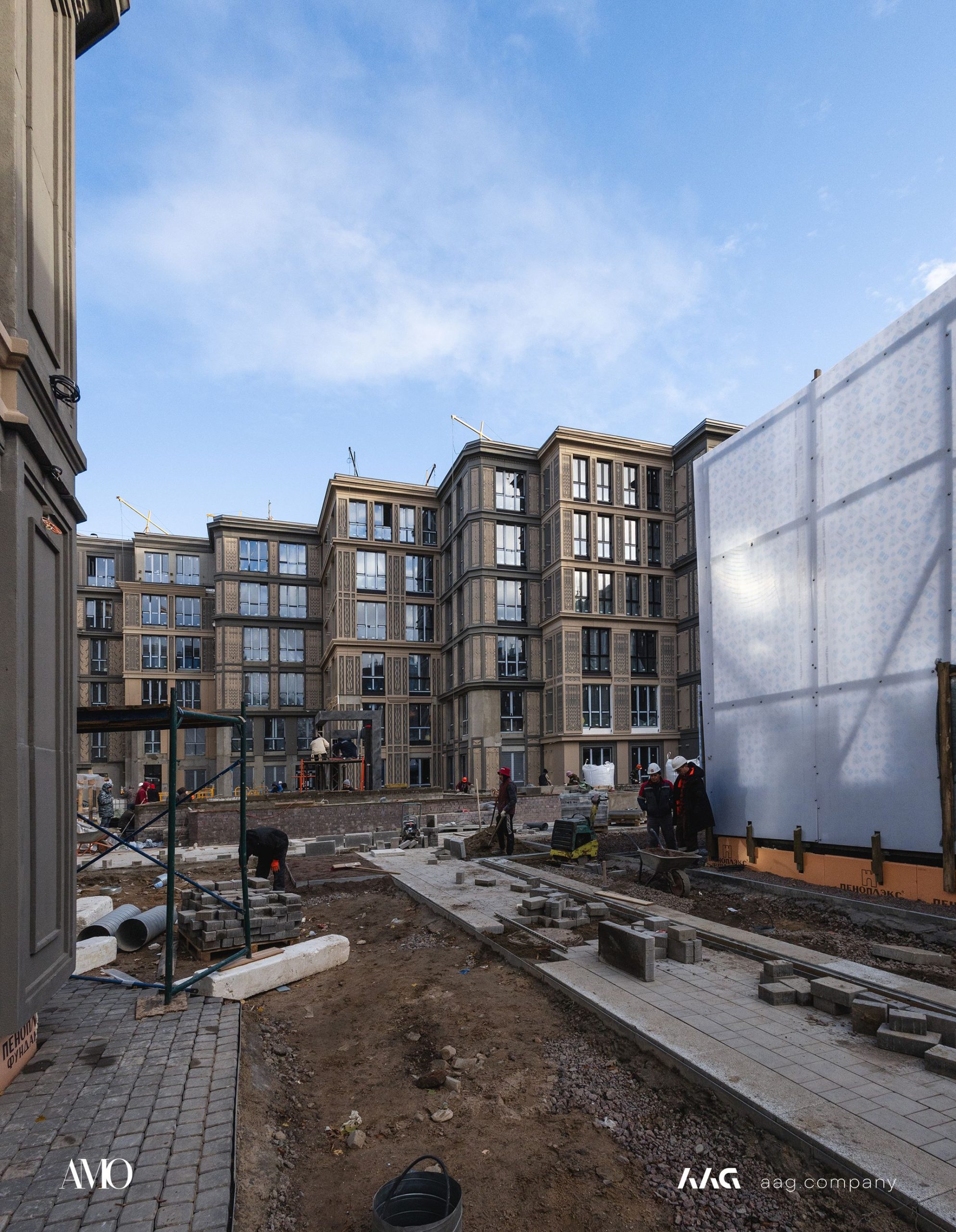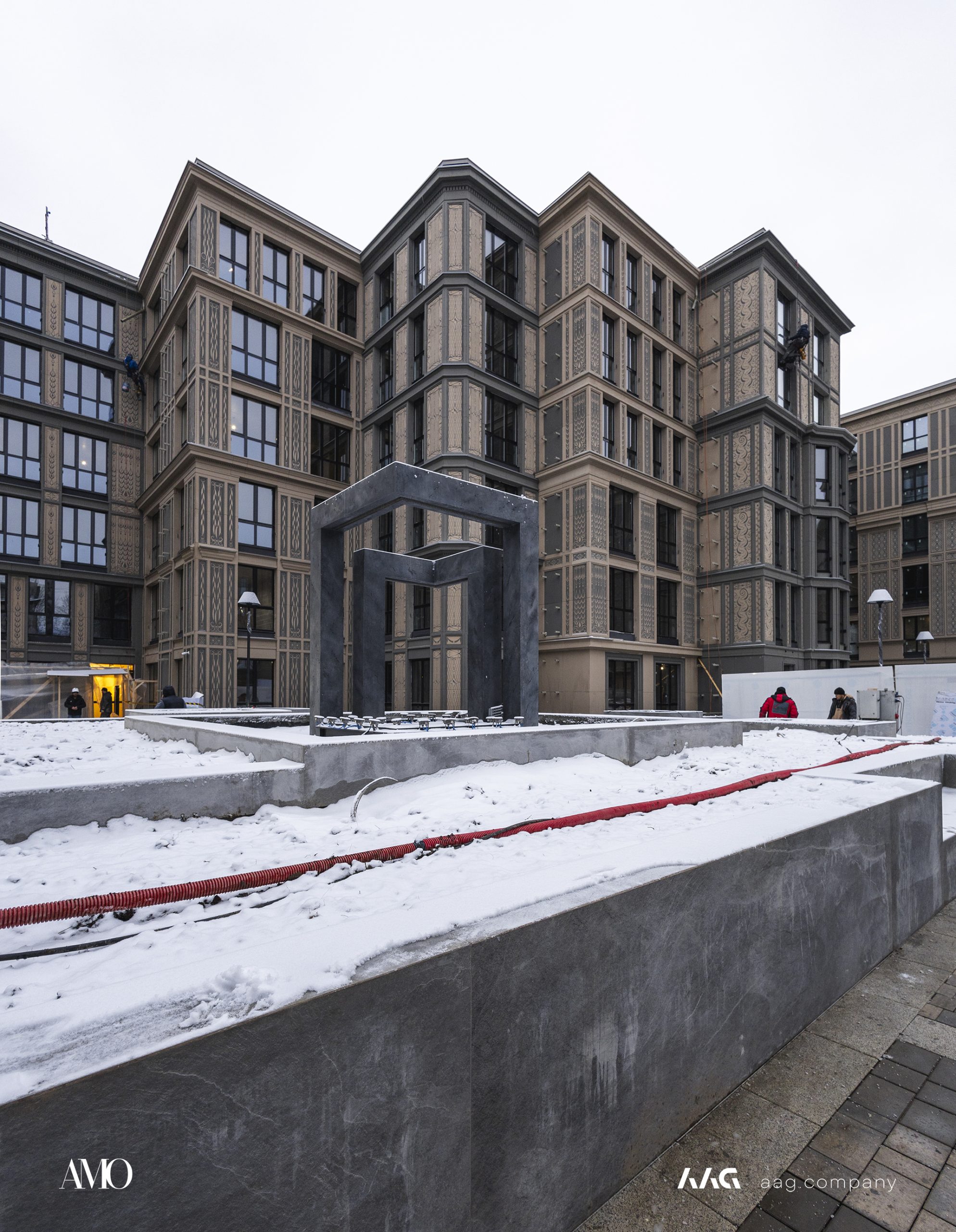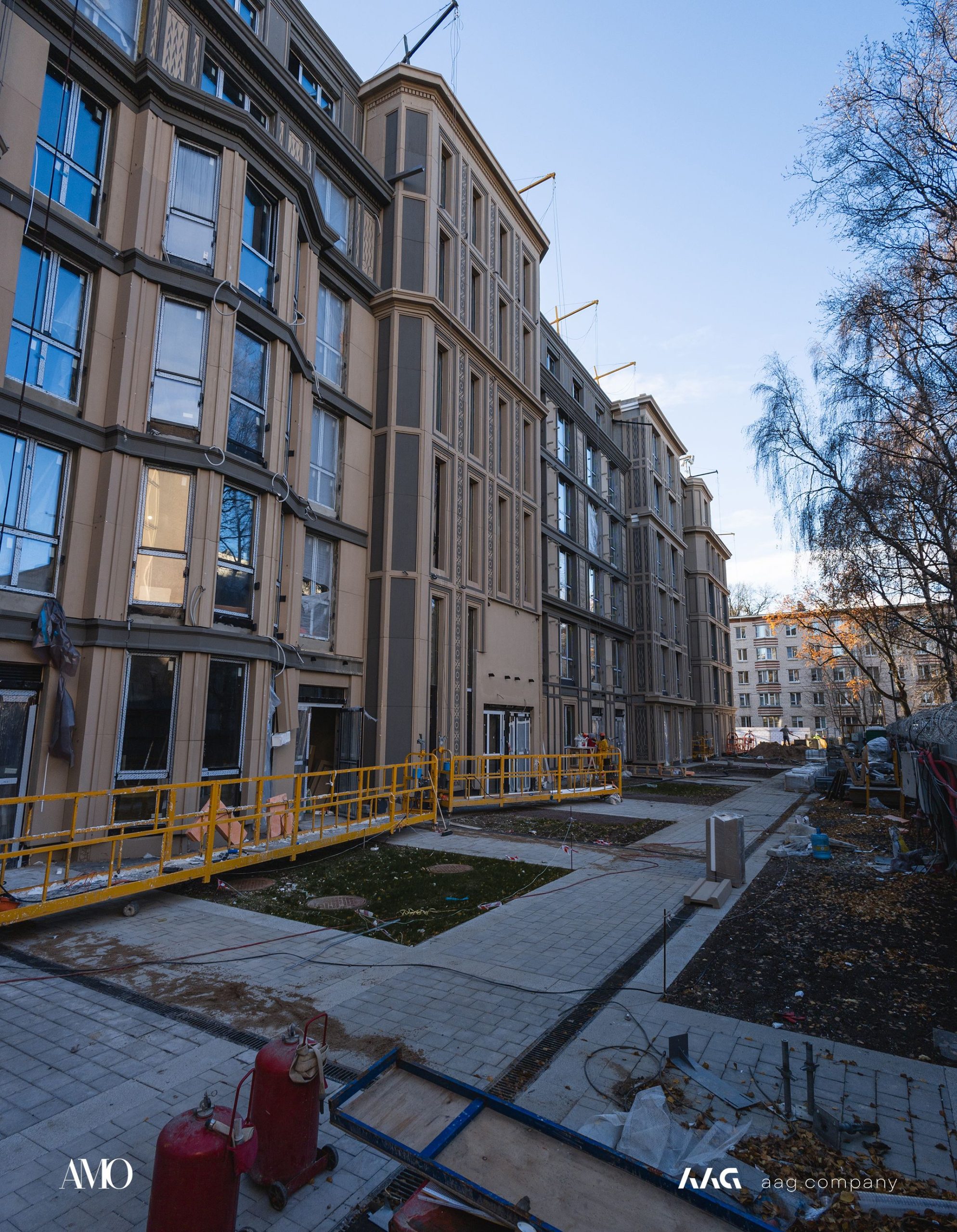 Сам «AMO» — ЖК из трех секций, расположенных в форме буквы П, что характерно для ступенчатой старинной застройки центральных районов Петербурга.