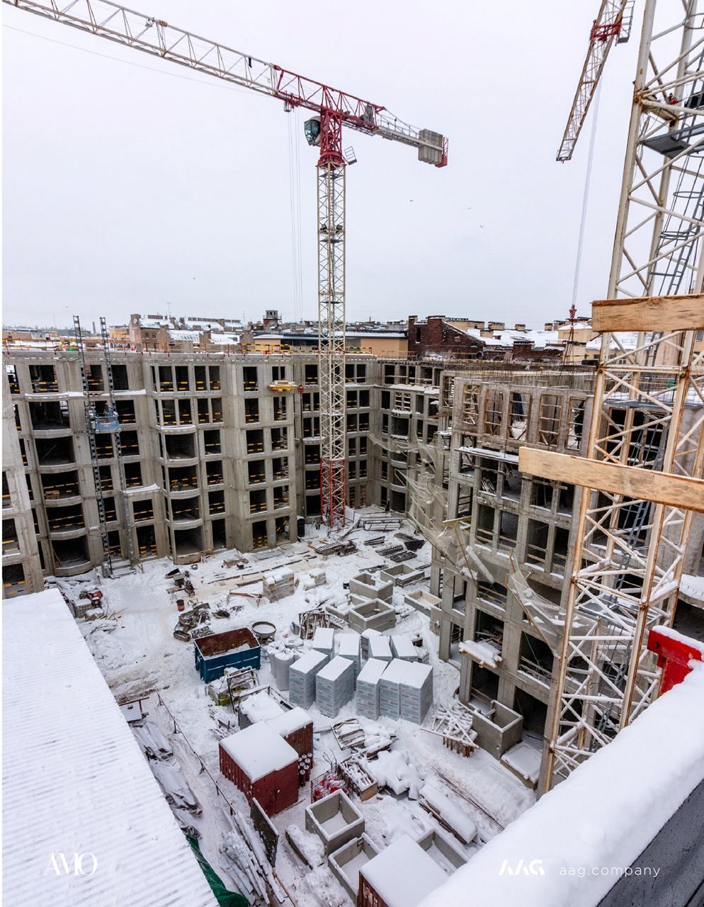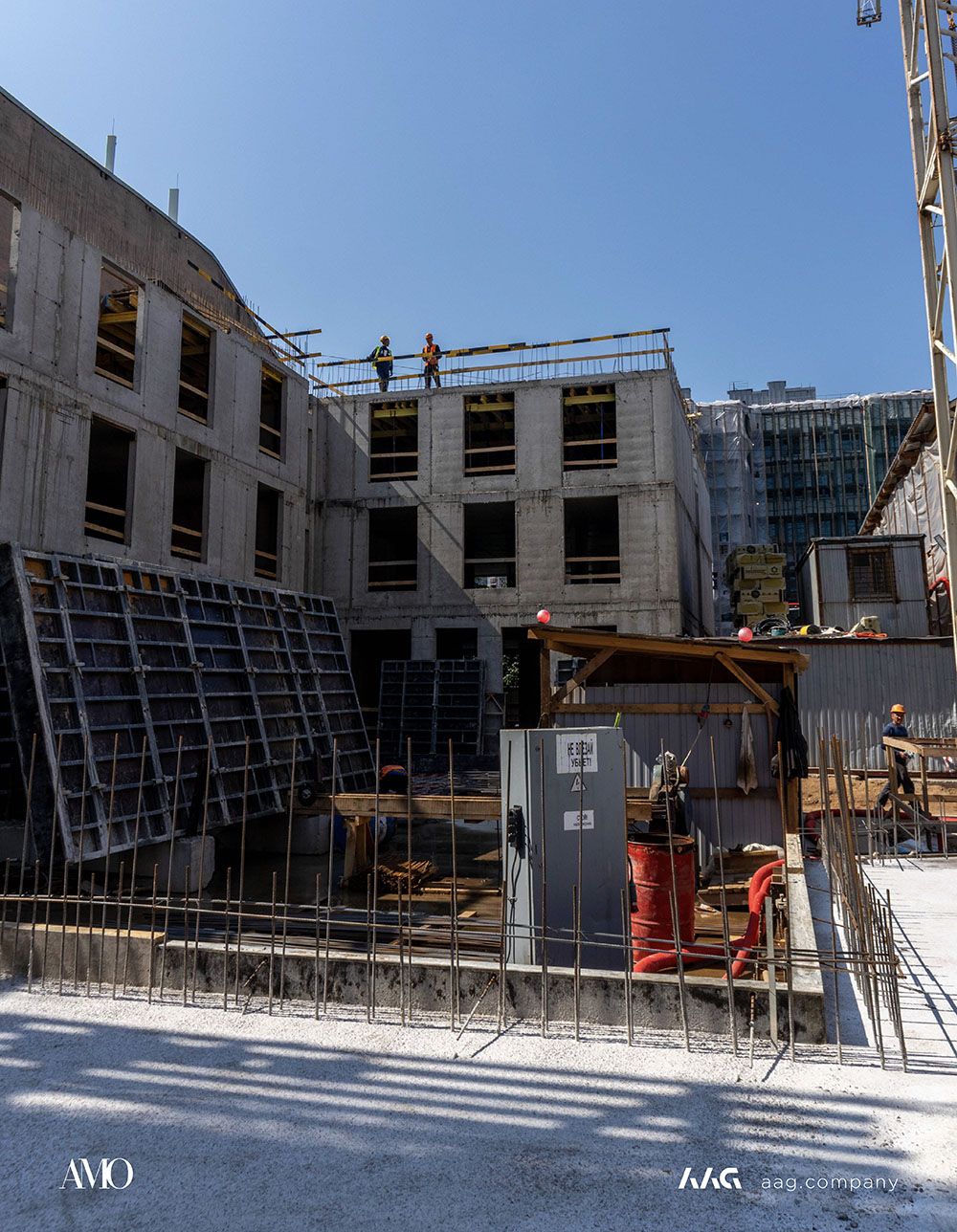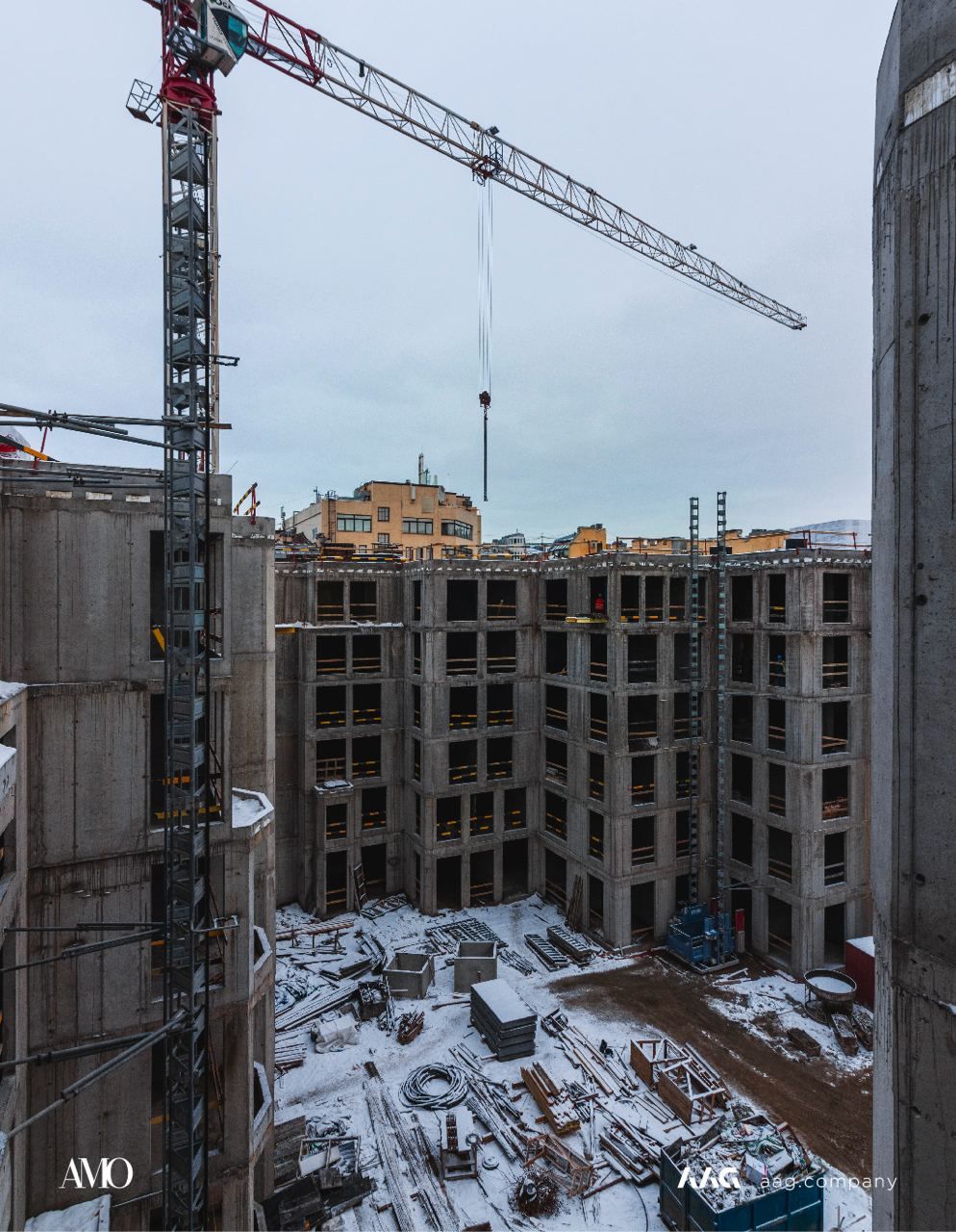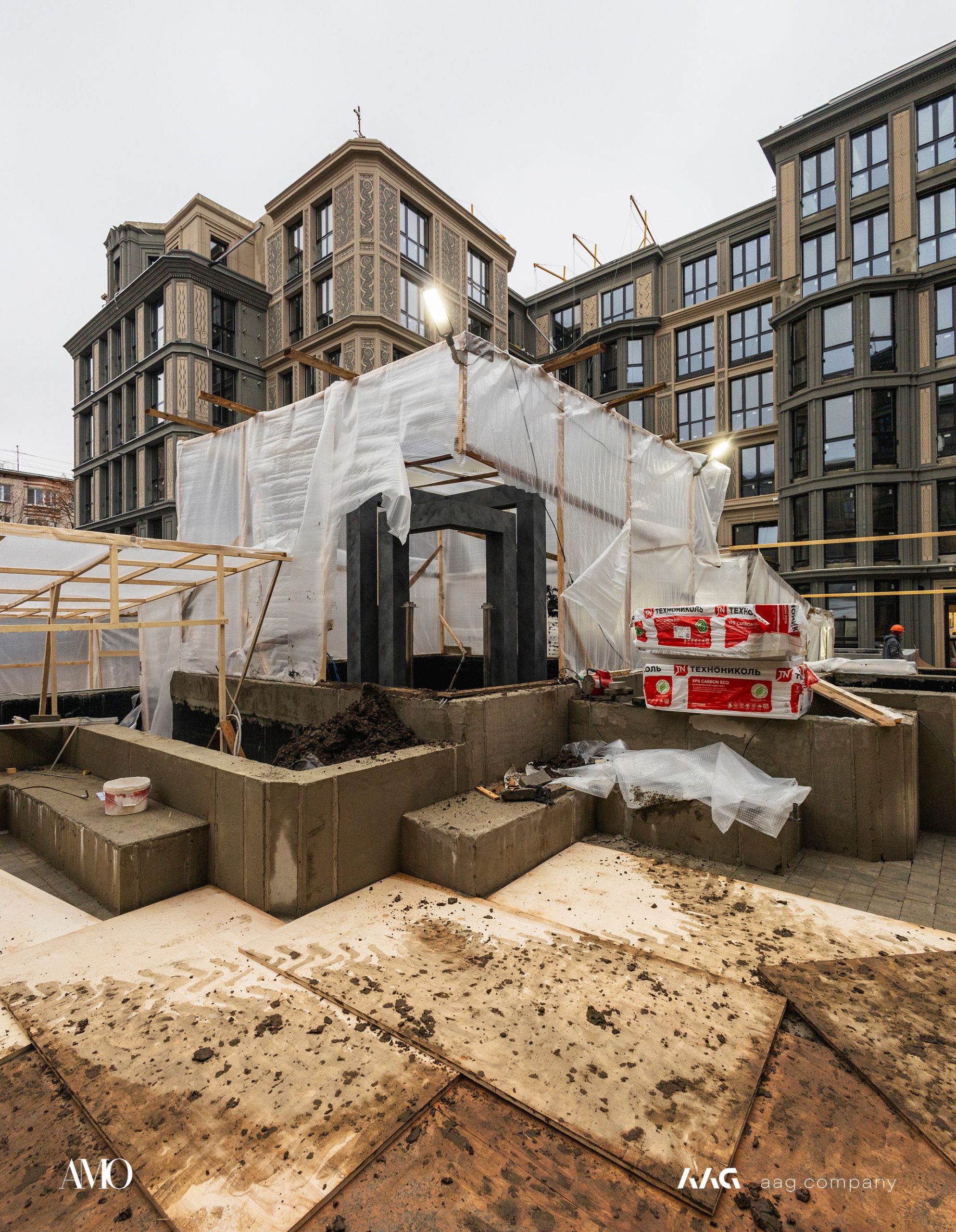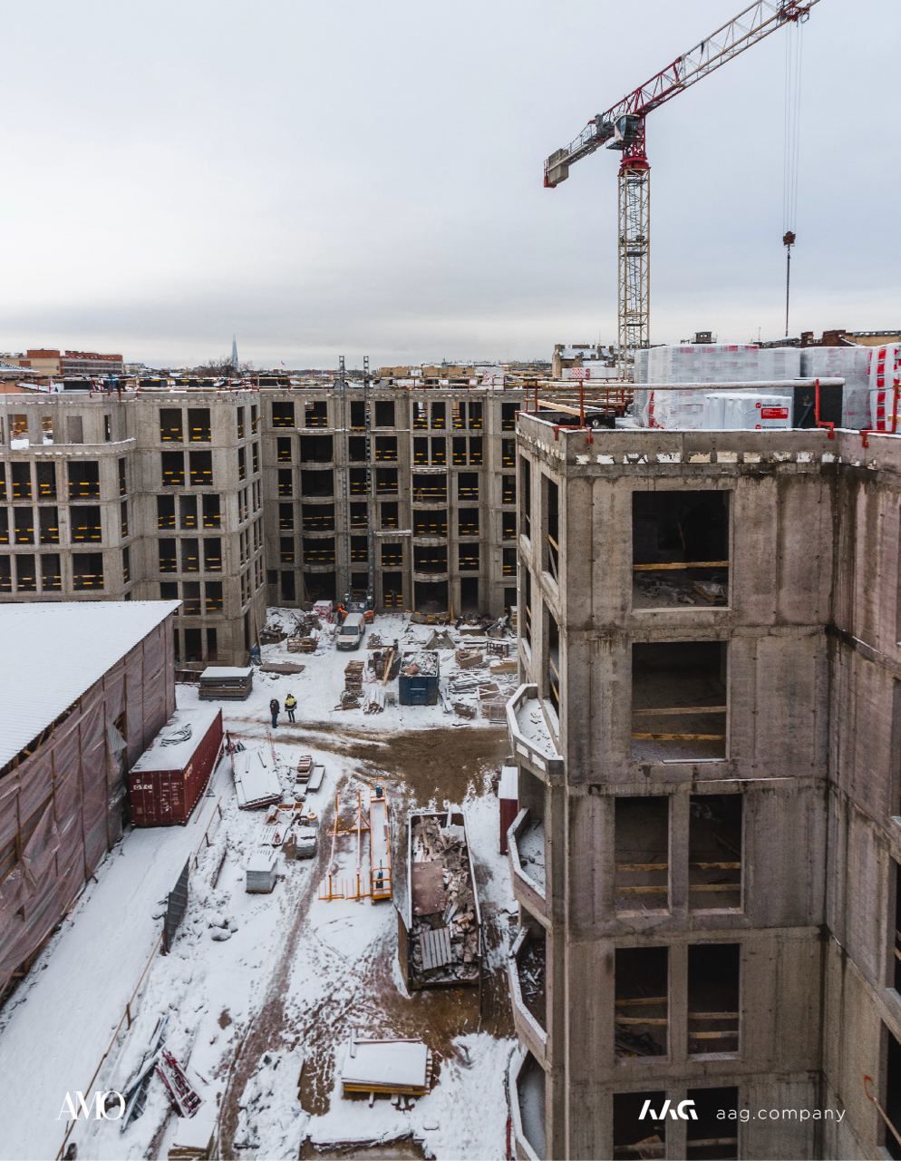 Сам «AMO» — ЖК из трех секций, расположенных в форме буквы П, что характерно для ступенчатой старинной застройки центральных районов Петербурга.