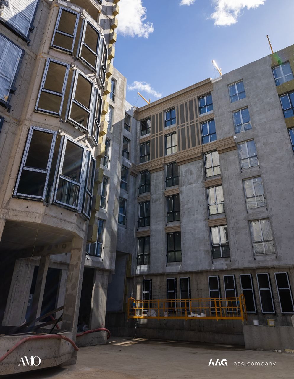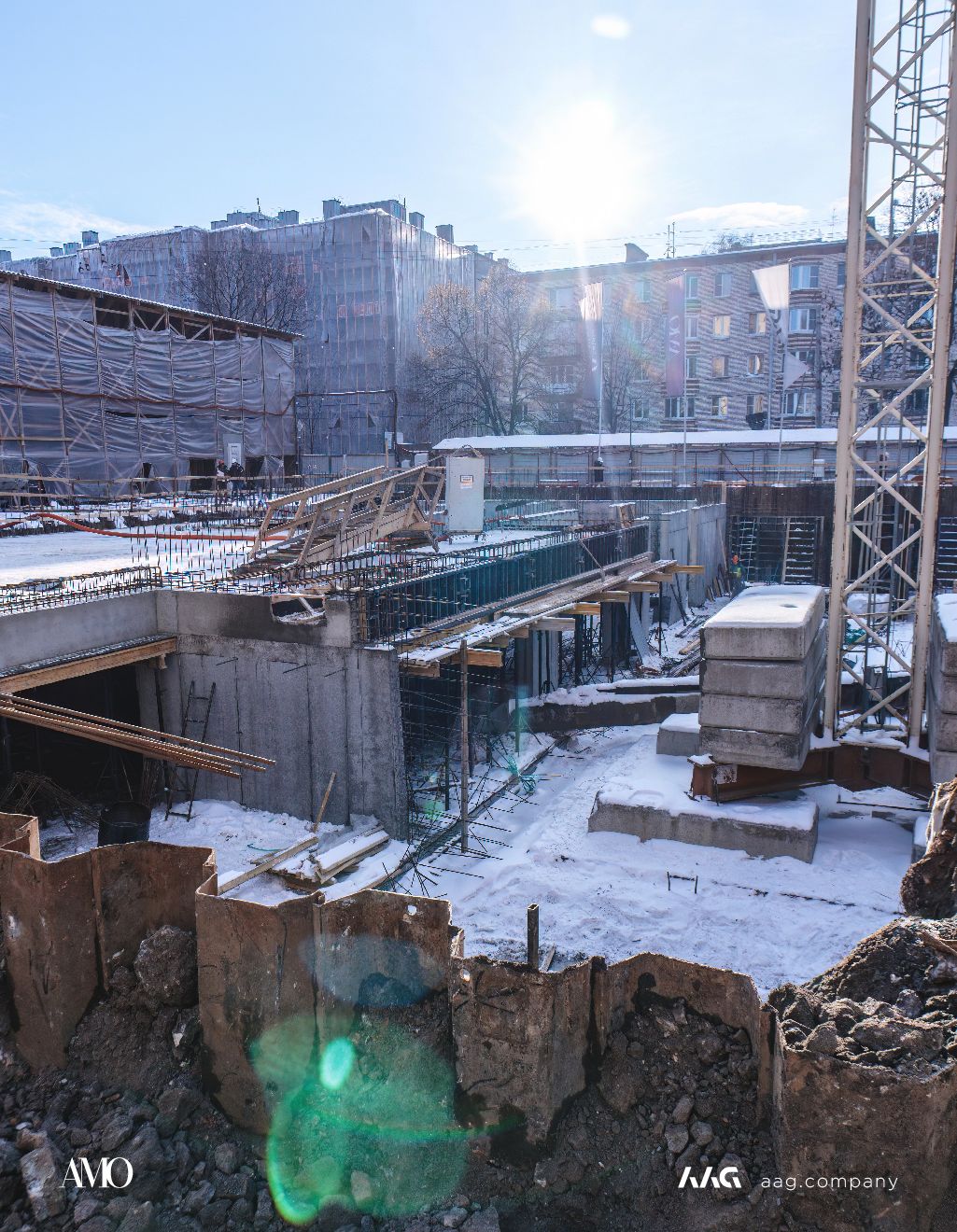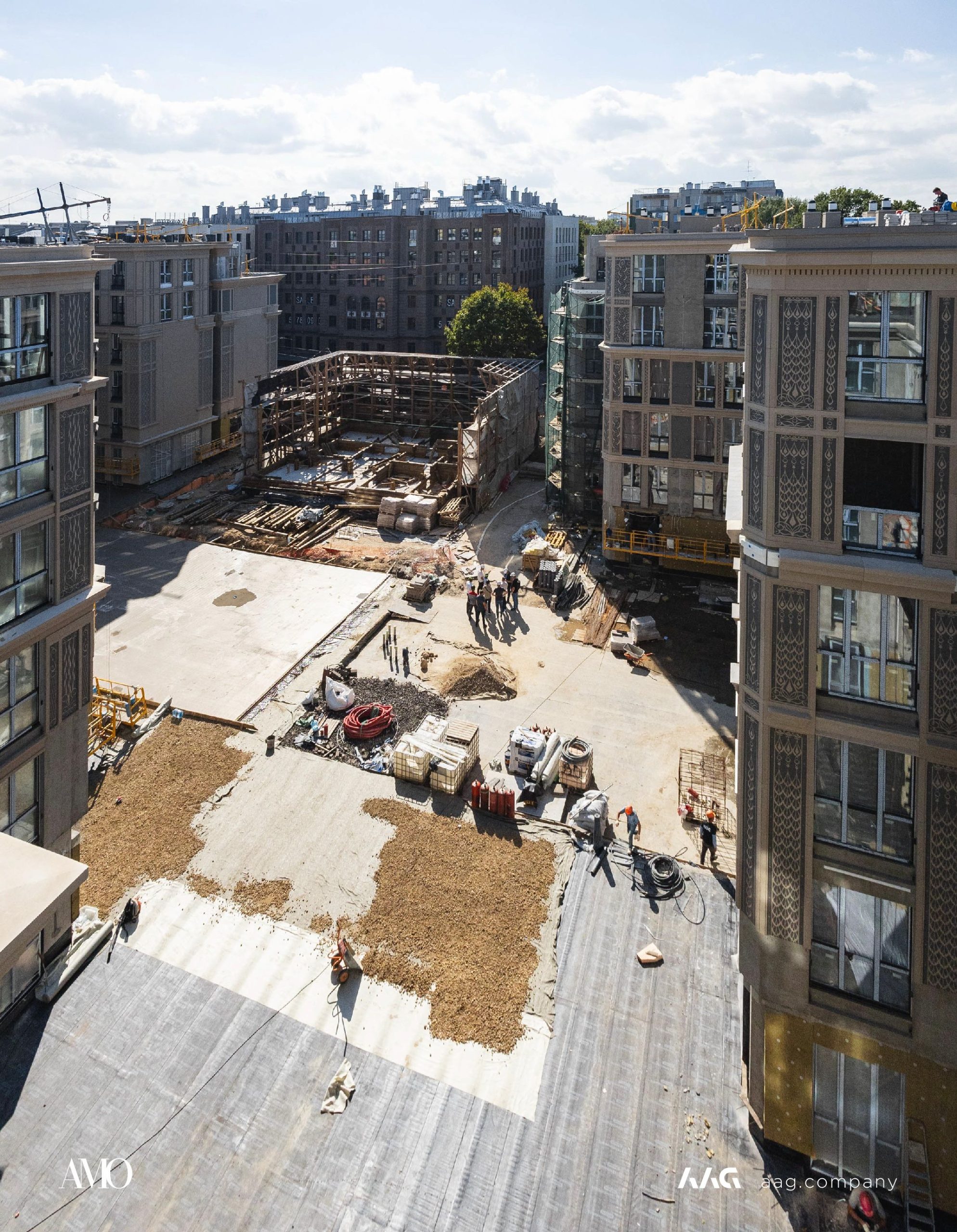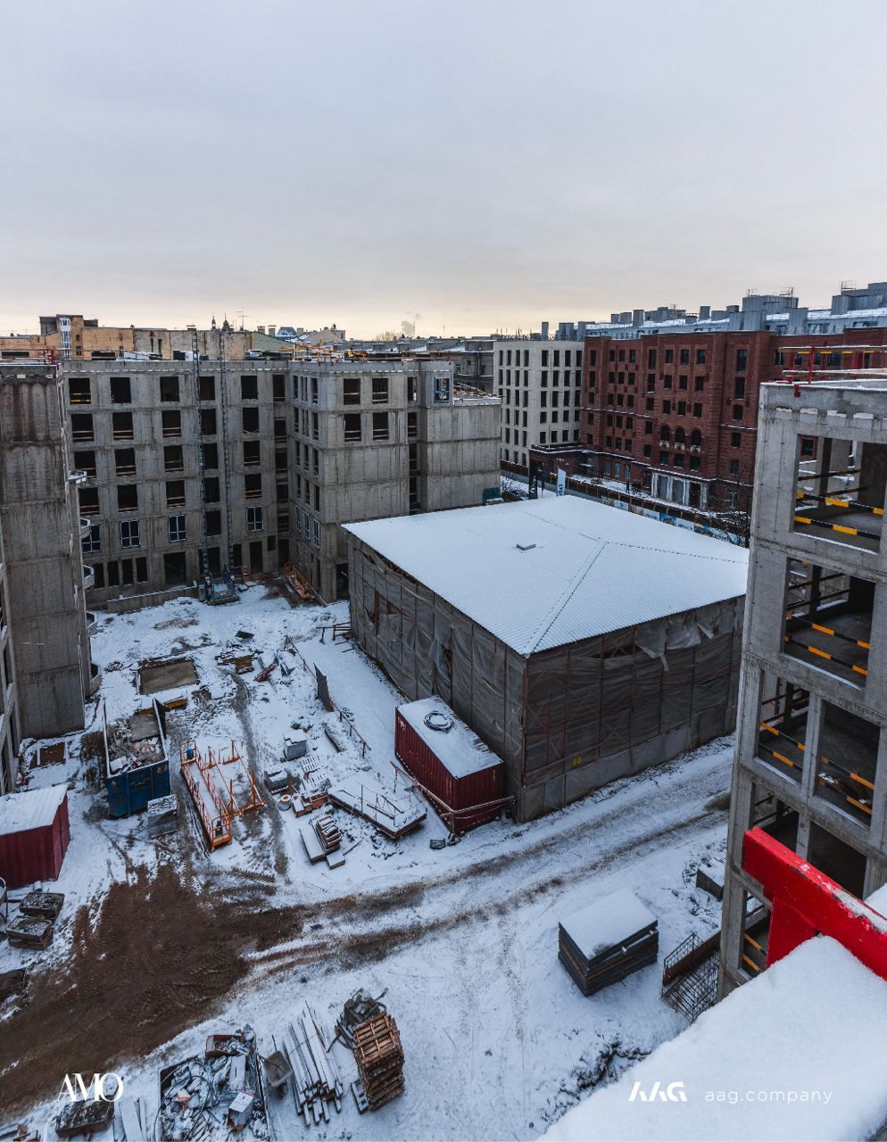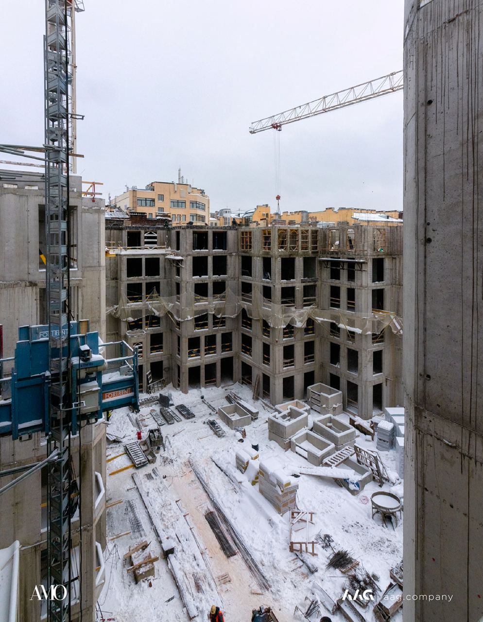 Сам «AMO» — ЖК из трех секций, расположенных в форме буквы П, что характерно для ступенчатой старинной застройки центральных районов Петербурга.