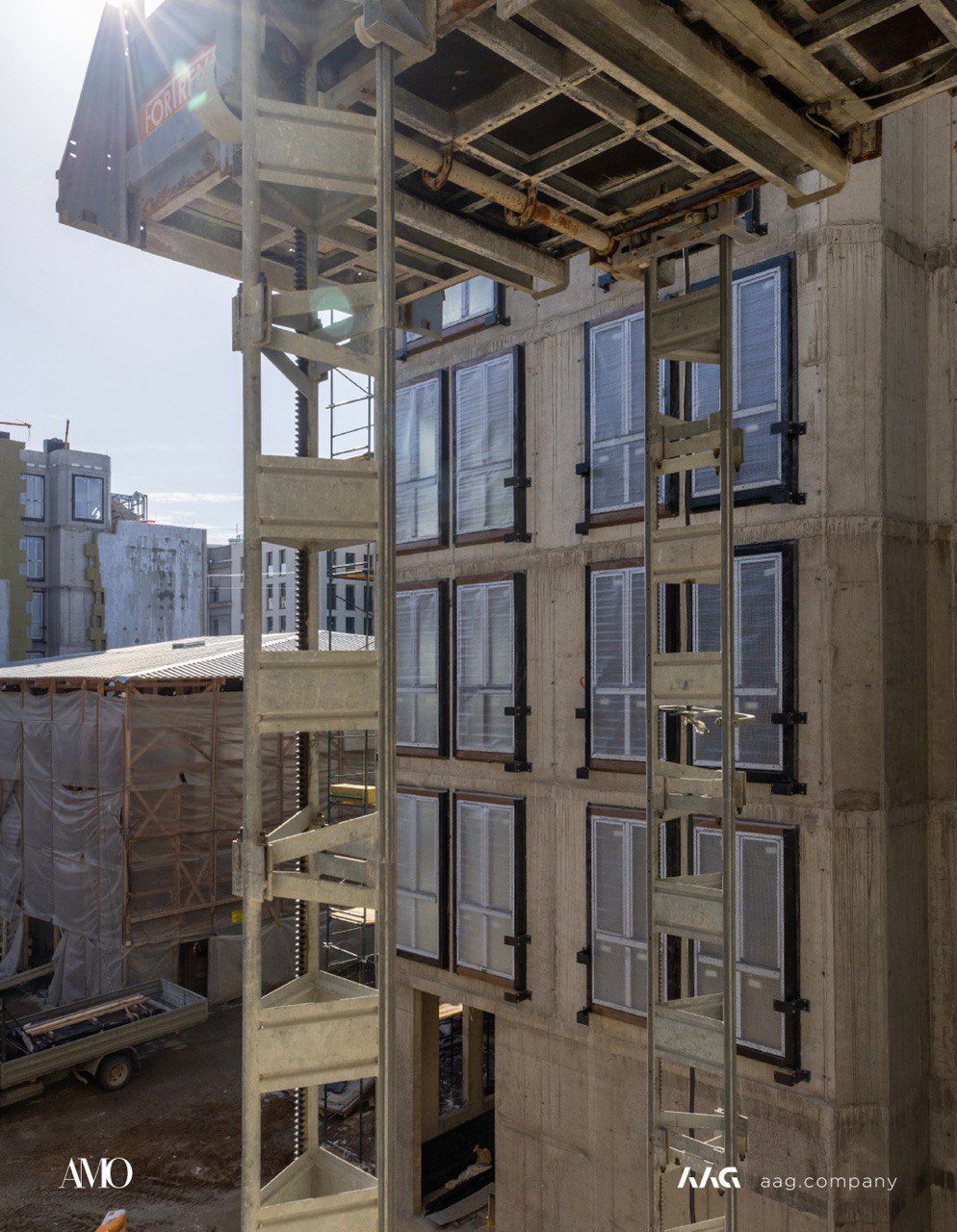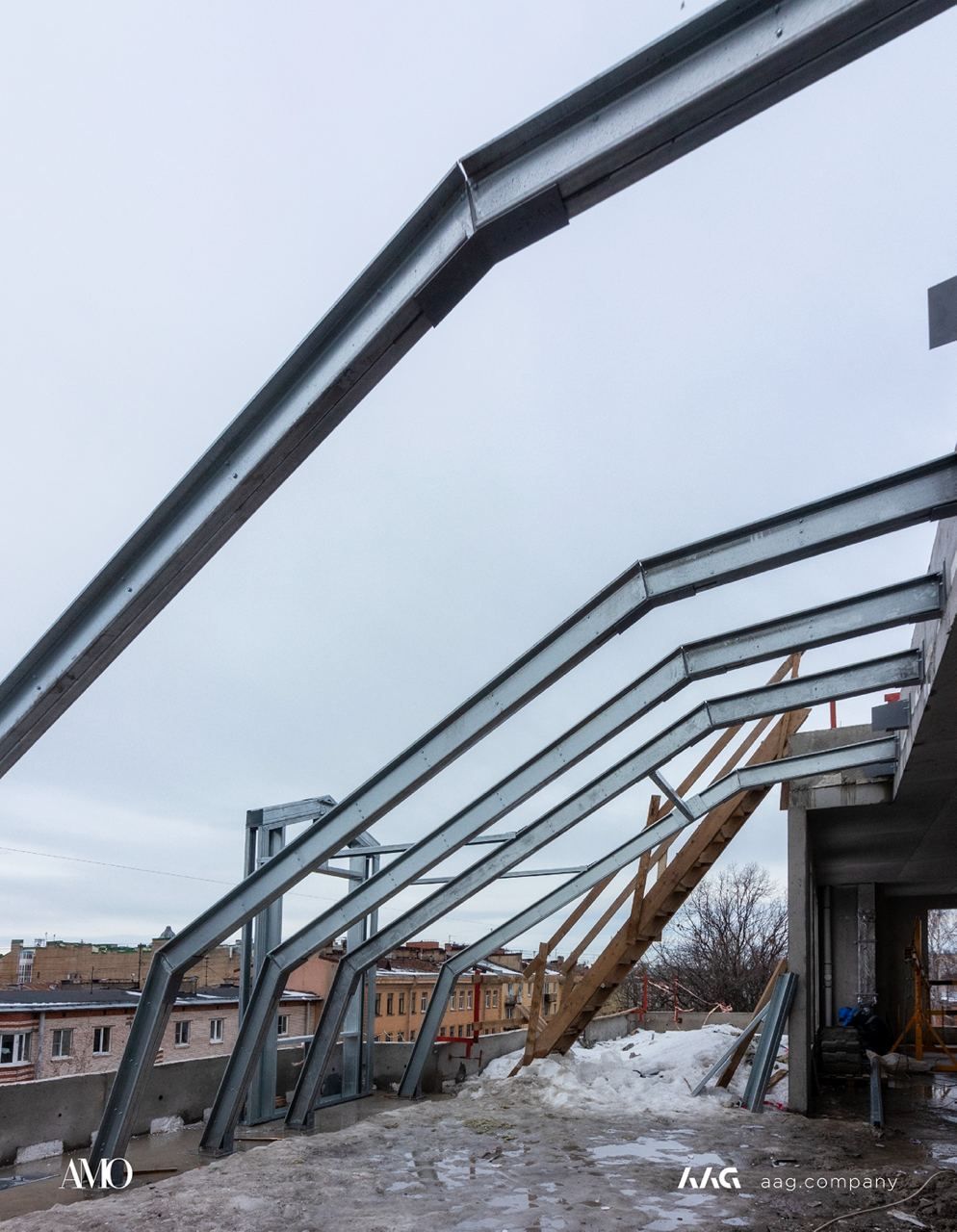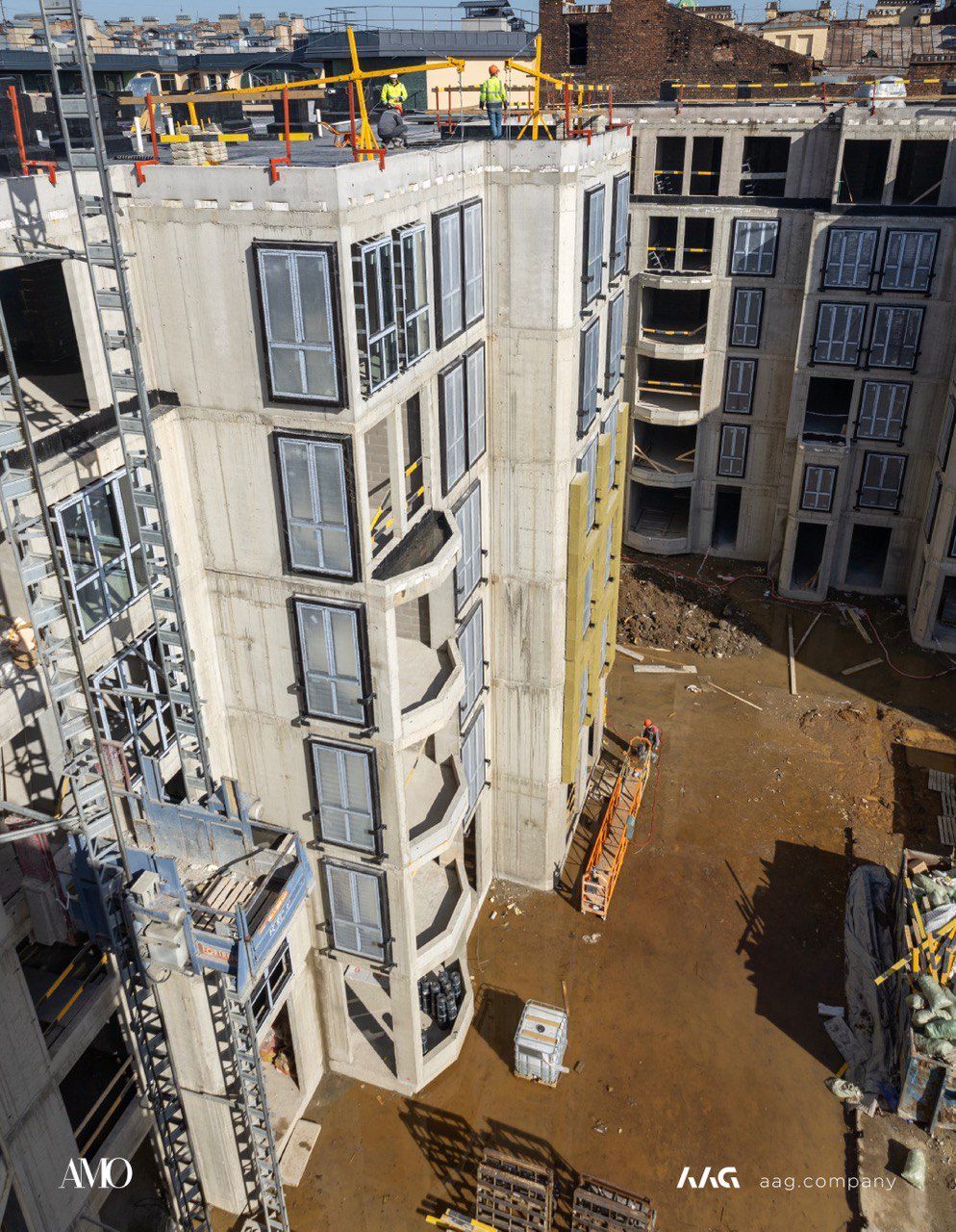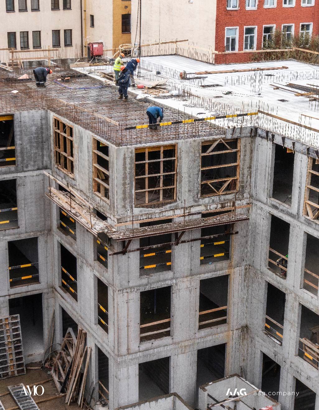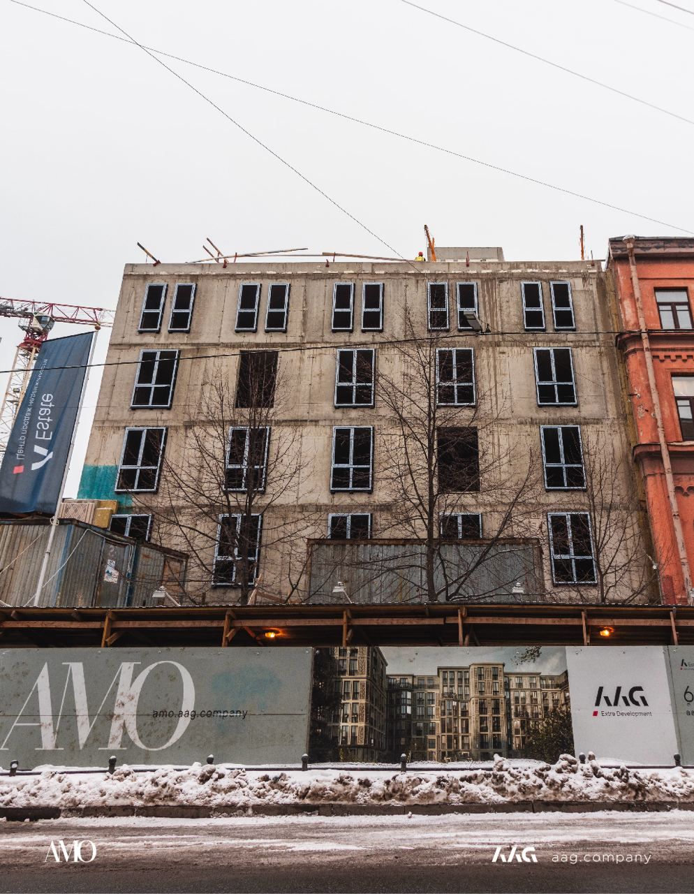 Сам «AMO» — ЖК из трех секций, расположенных в форме буквы П, что характерно для ступенчатой старинной застройки центральных районов Петербурга.