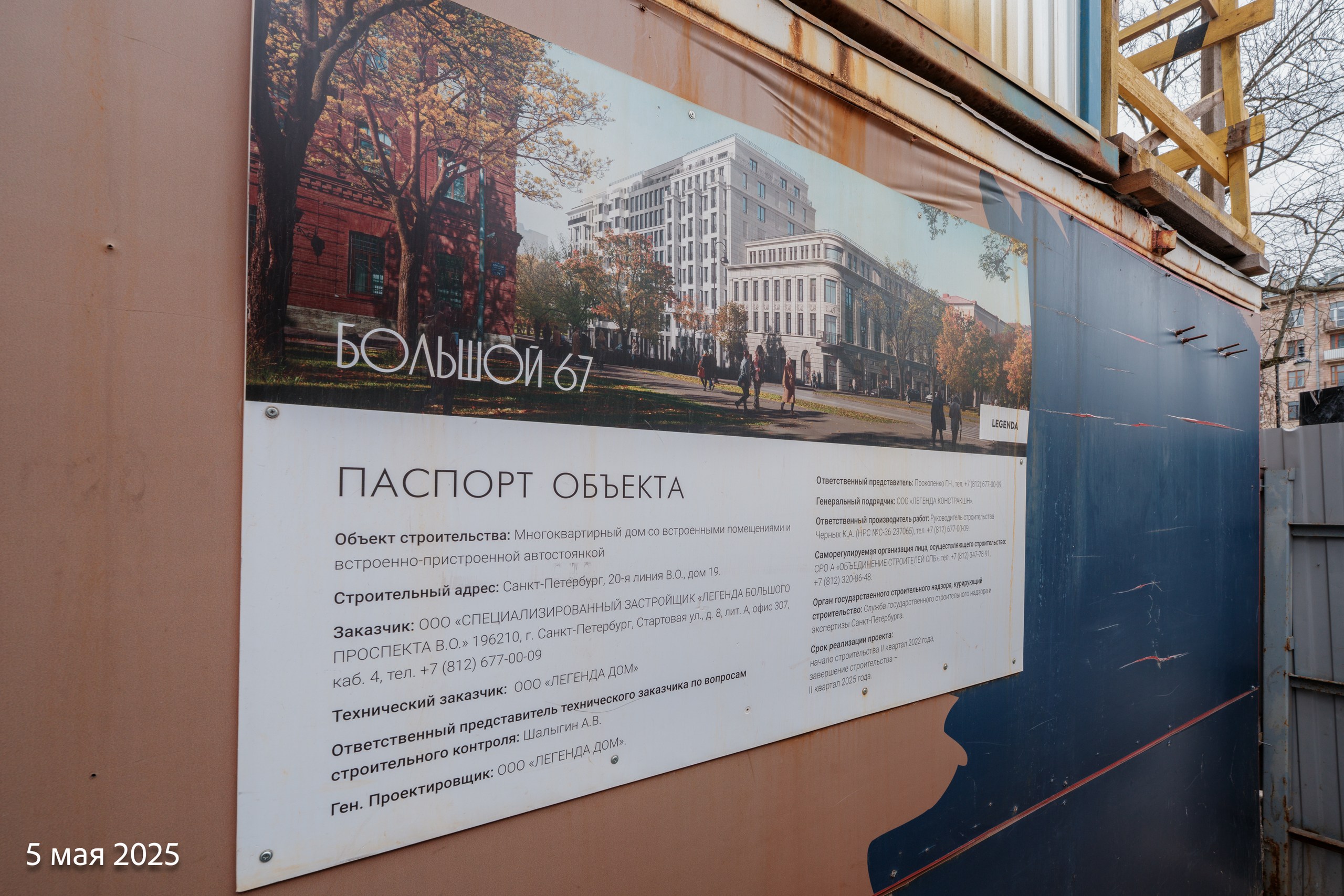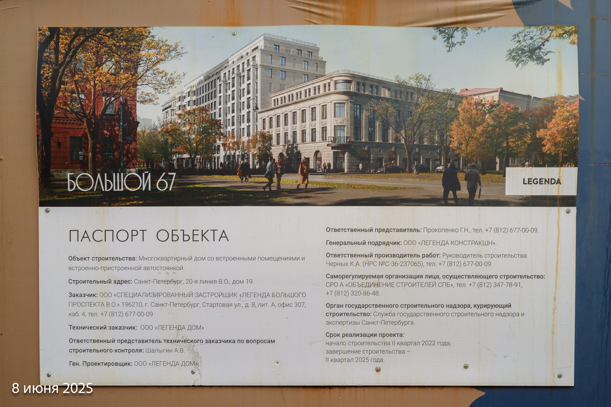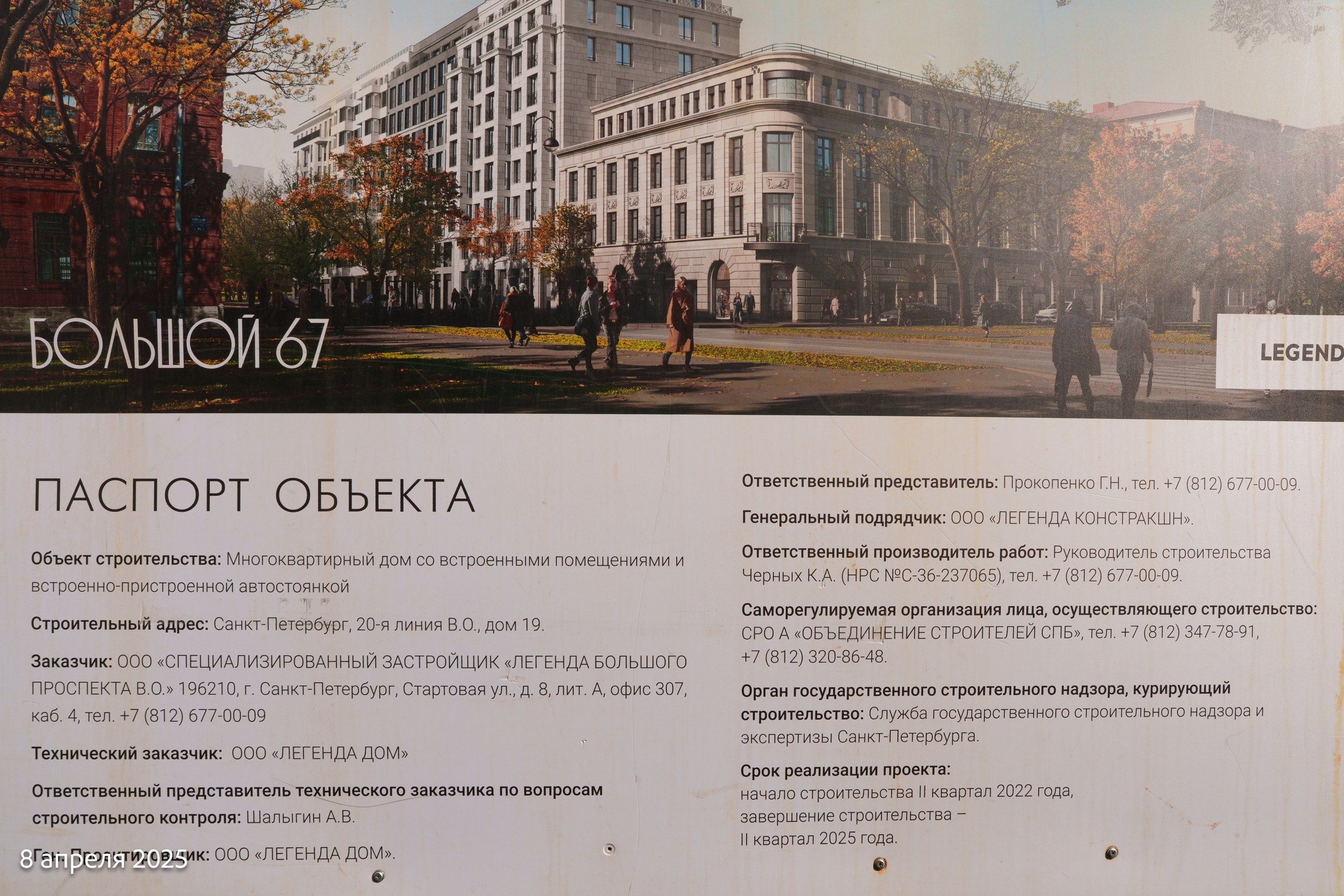 Именем главной магистрали Василеостровского района назван «Большой, 67», ЖК на 146 квартир с богатым выбором планировок и собственной инфраструктурой. Разновысотный дом в 4-9 этажей гармонично встроен в сложившуюся архитектуру Васильевского Острова. и дополнен уютным двором.