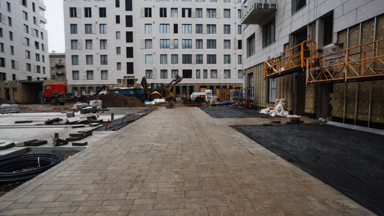 Несмотря на обилие зелени вокруг, застройщик позаботился о приватном дворе для жильцов, разделенном на функциональные зоны. Здесь есть площадка для детей с канатной дорогой и мягким конструктором, силовые тренажеры, амфитеатр и место для настольных игр.