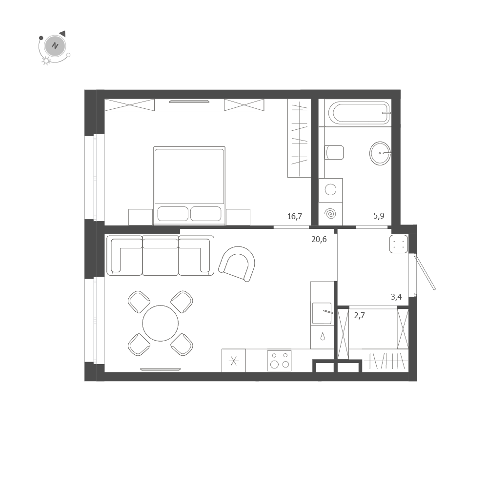 Продаётся элитная 1-комнатная квартира №340 в ЛДМ: 49.3 м2, этаж 4 за 39,74 рублей. Срок сдачи запланирован на IV кв. 2027 года.