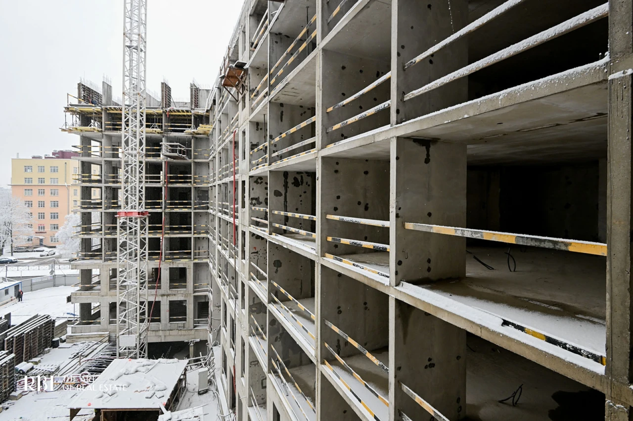 Квартирный фонд представлен тремя корпусами высотой 8-12 этажей, где можно найти подходящий вариант от студии до 4-комнатной, площадью 24-121 м2.