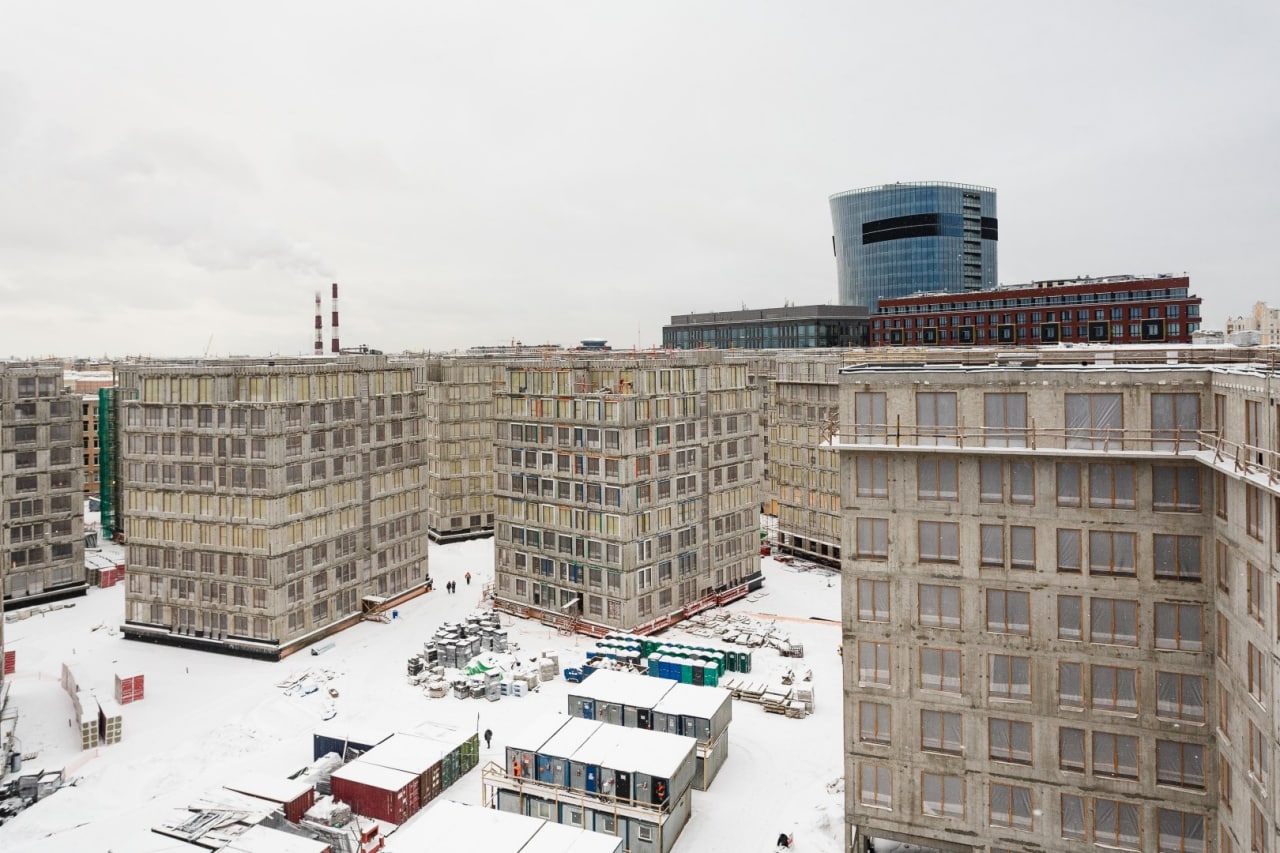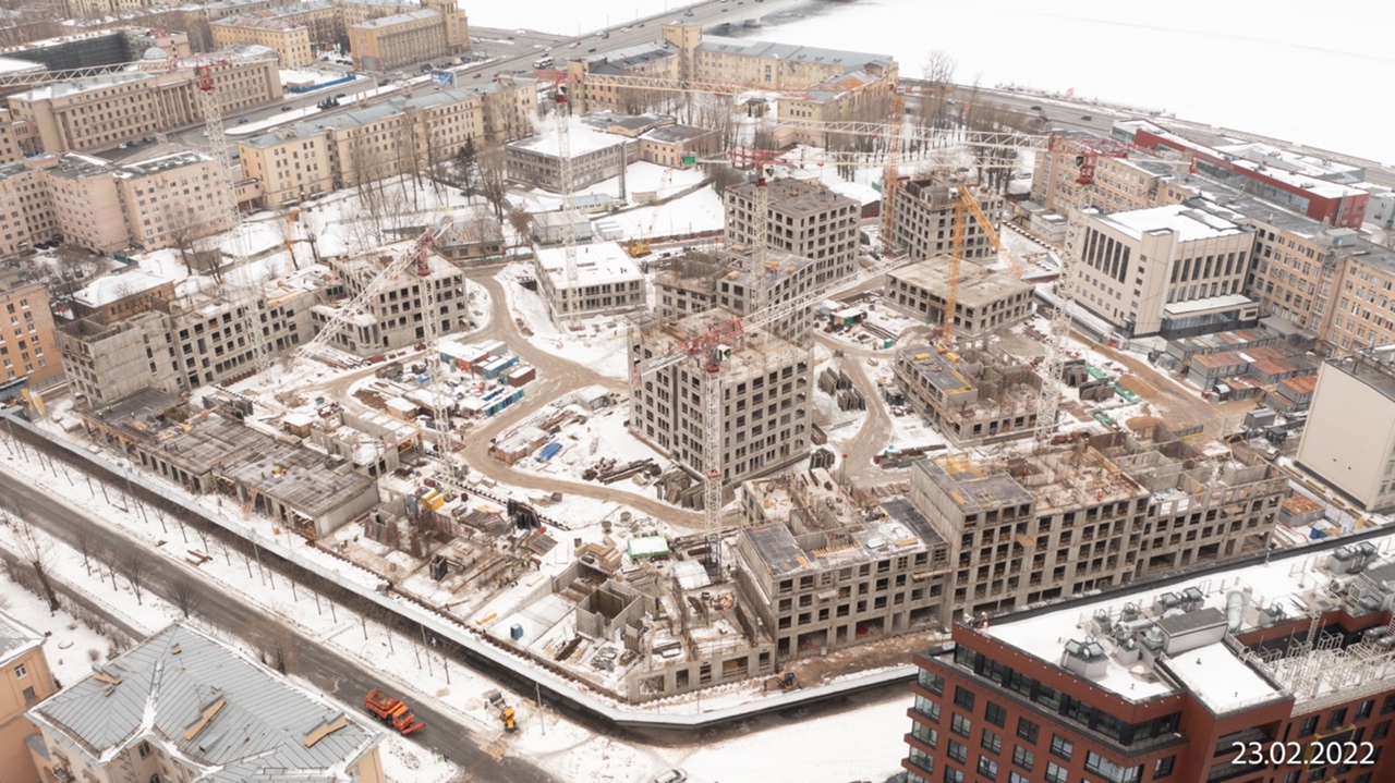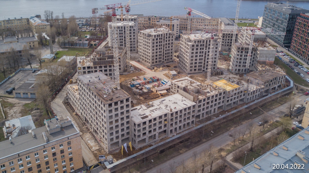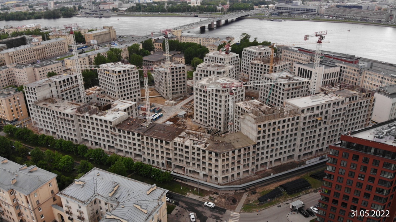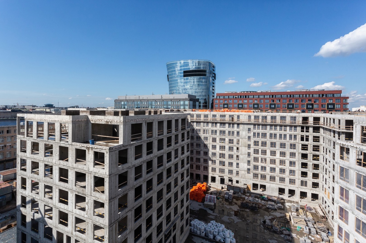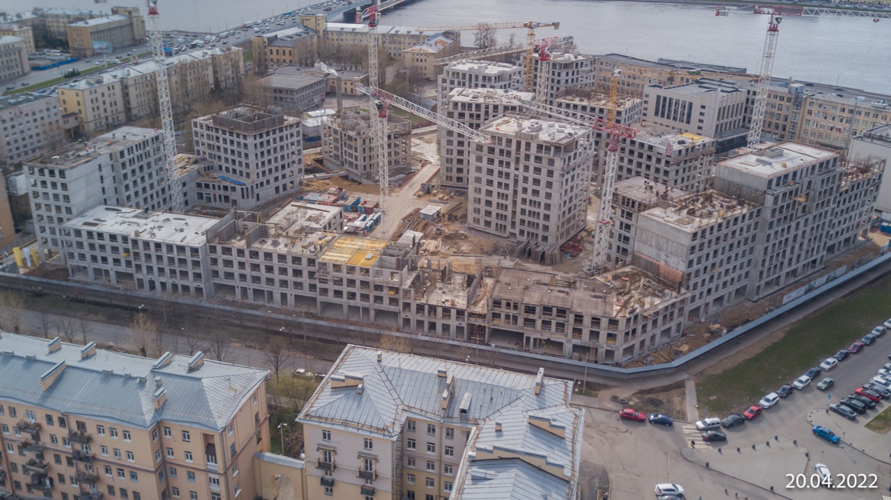 Квартал окружают реки Нева, Охта и Оккервиль, что служит основой оригинальной географии проекта. В комплексе 16 секций и асимметричное расположение корпусов — смелое и удачное решение.