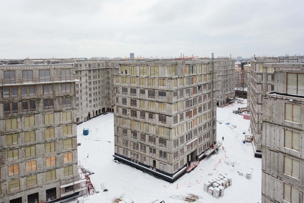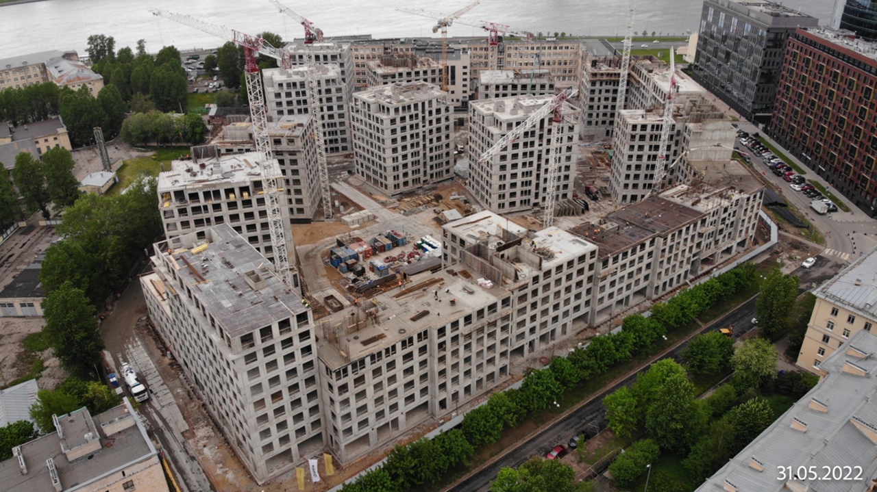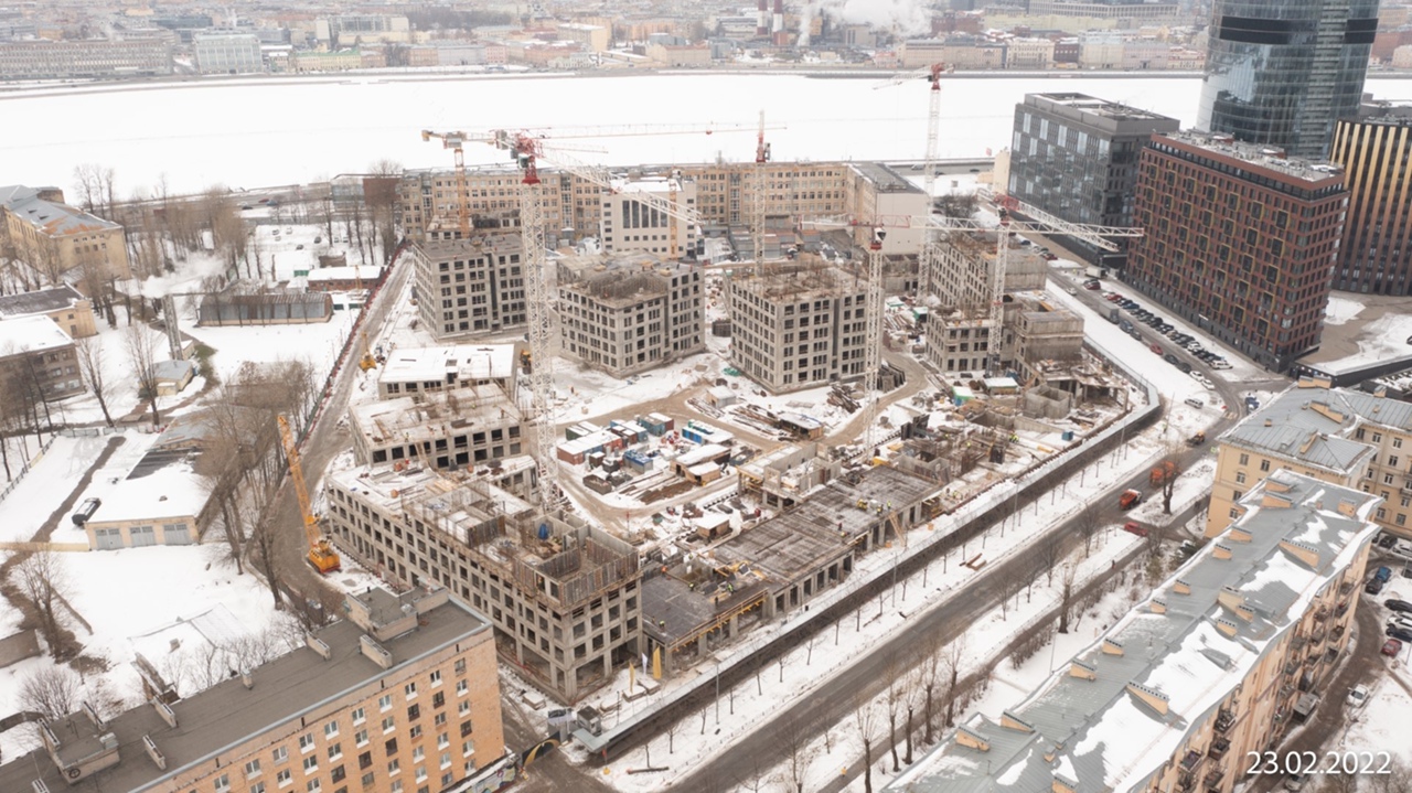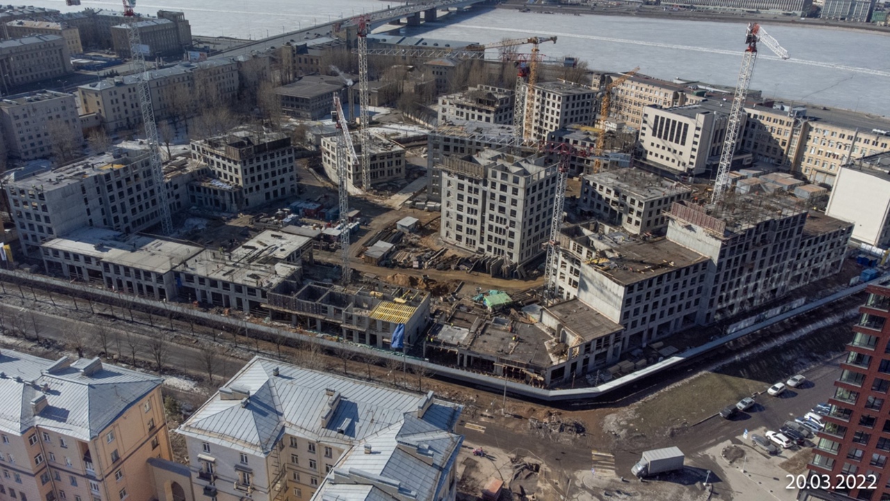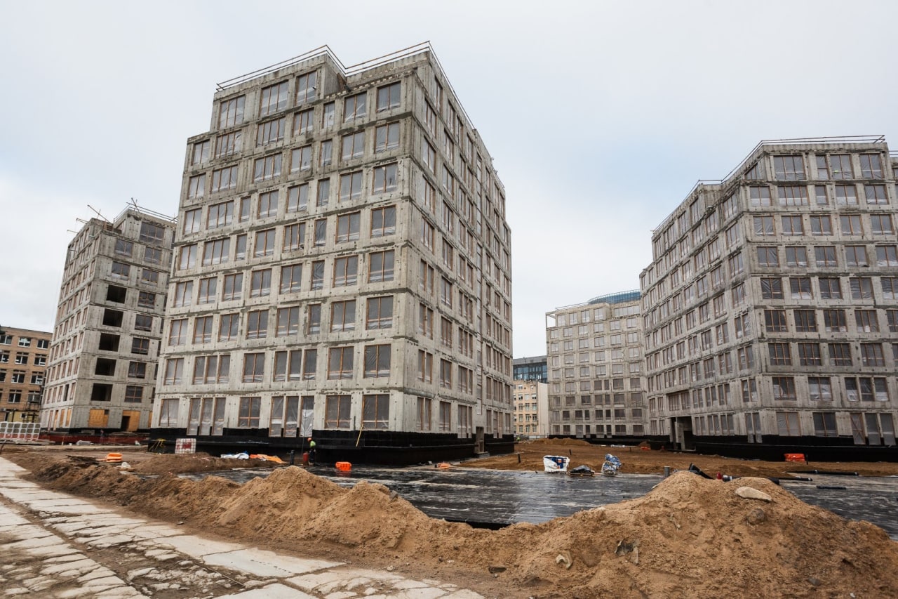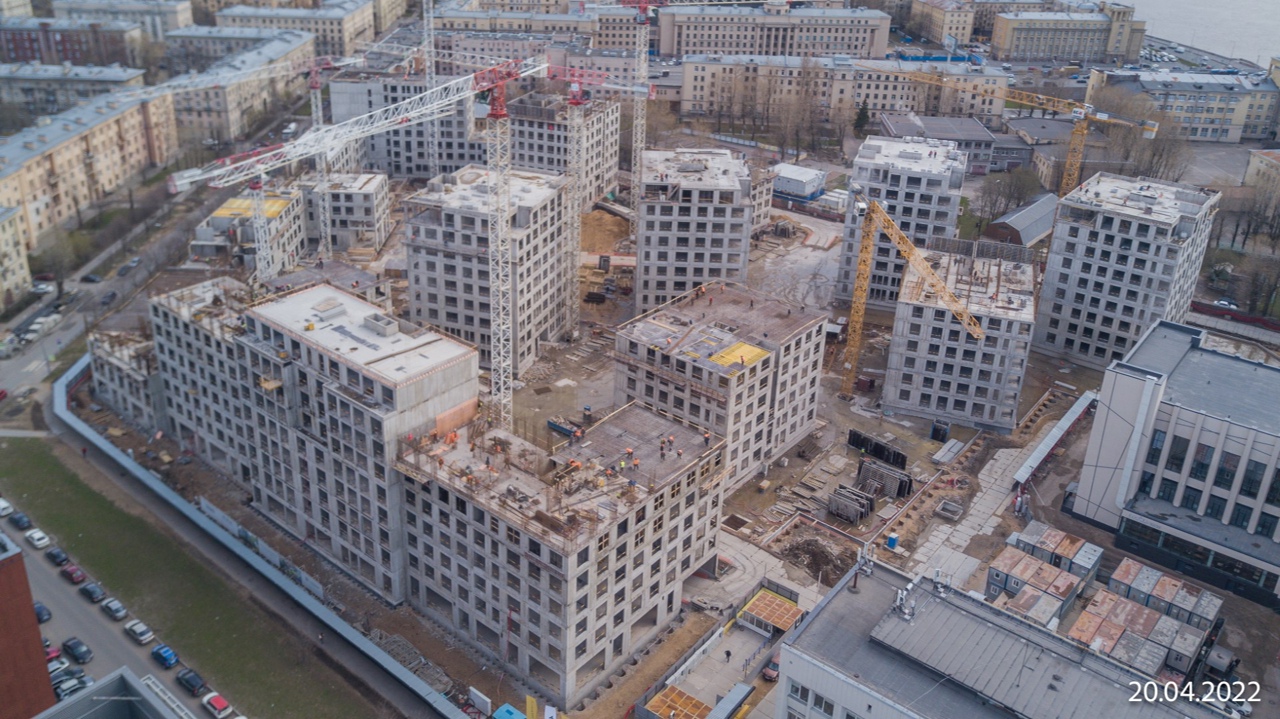 Квартал окружают реки Нева, Охта и Оккервиль, что служит основой оригинальной географии проекта. В комплексе 16 секций и асимметричное расположение корпусов — смелое и удачное решение.