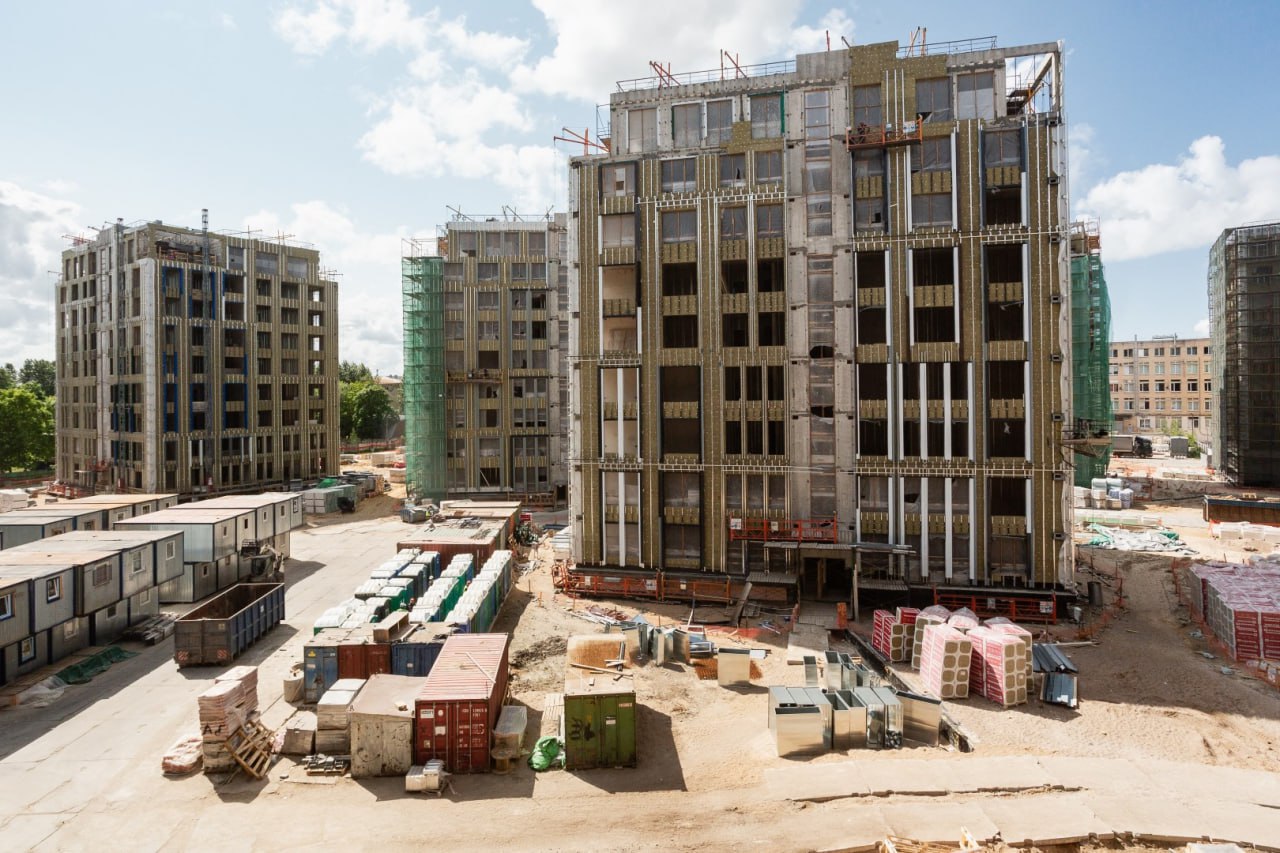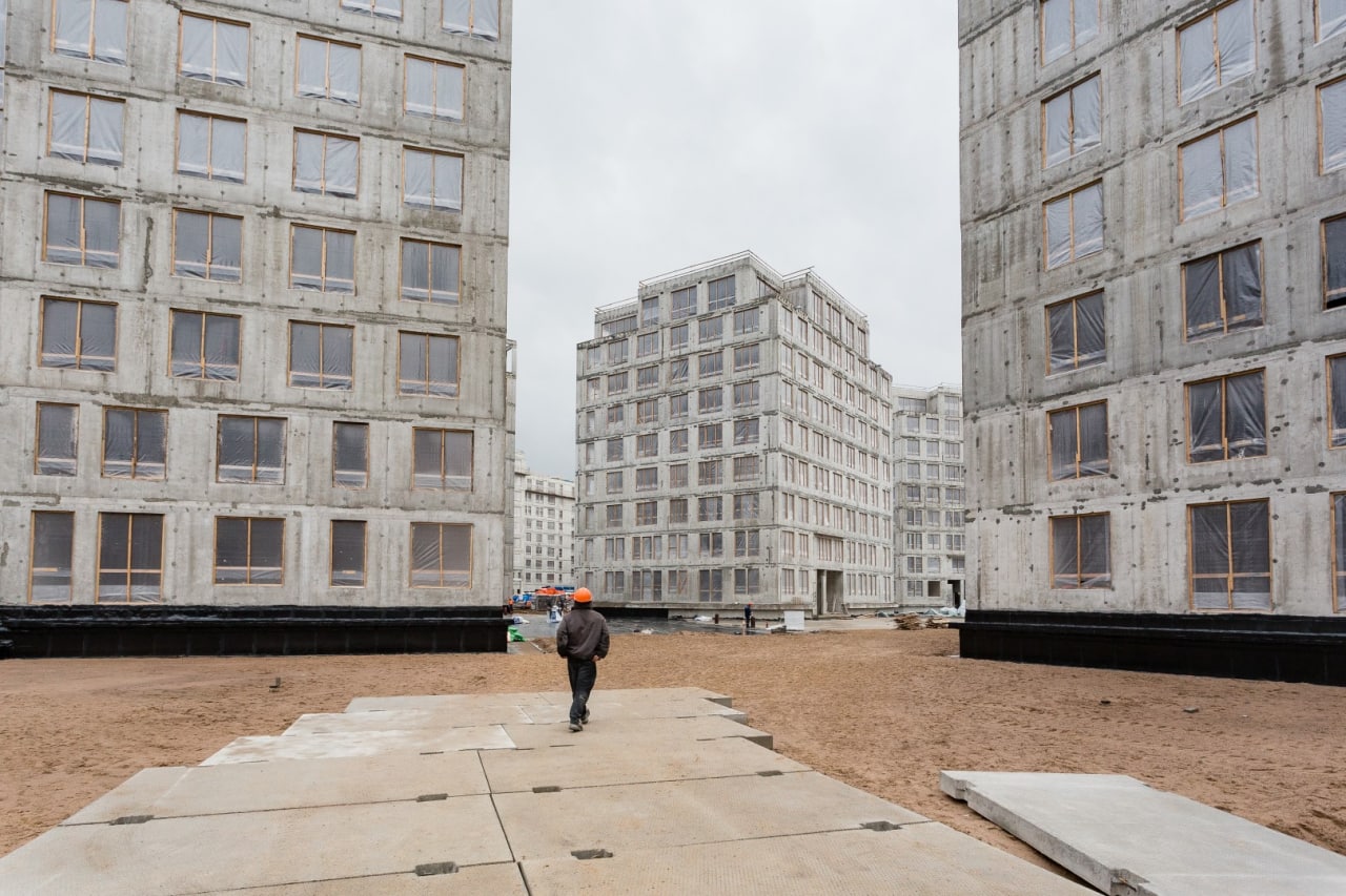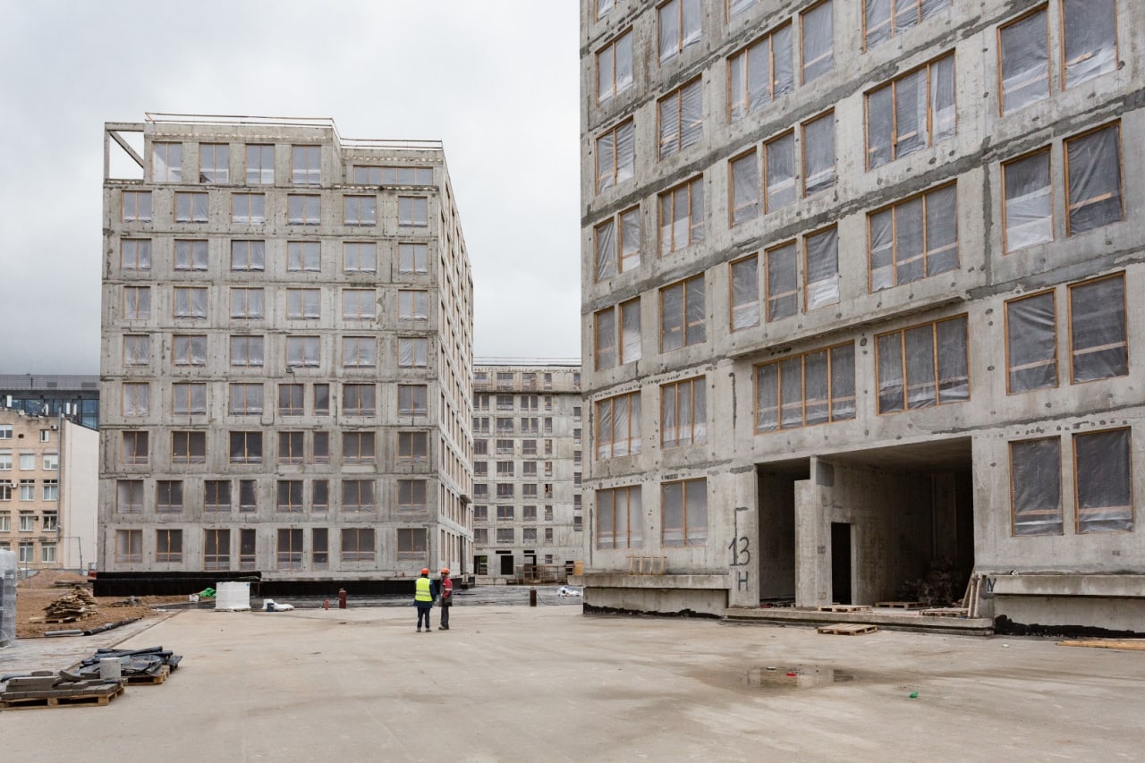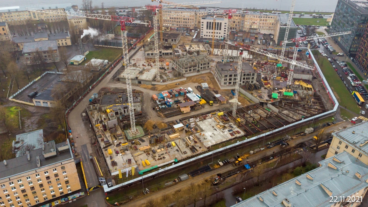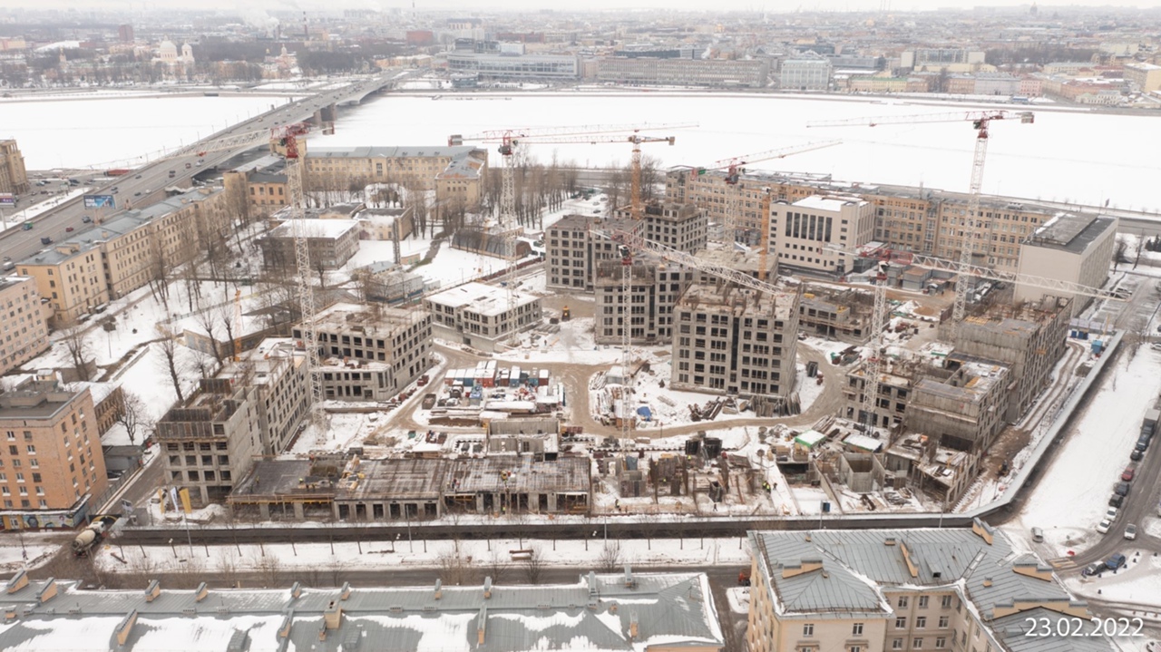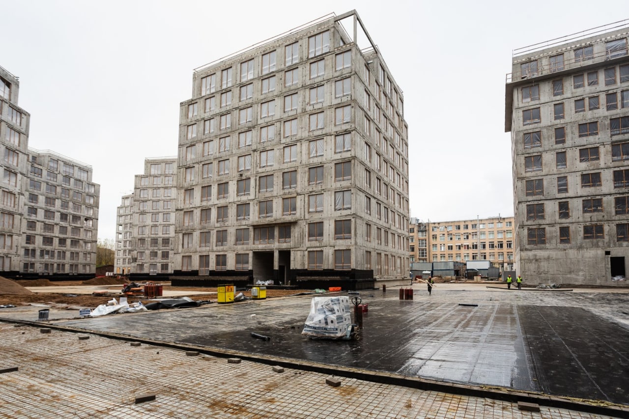 Квартал окружают реки Нева, Охта и Оккервиль, что служит основой оригинальной географии проекта. В комплексе 16 секций и асимметричное расположение корпусов — смелое и удачное решение.
