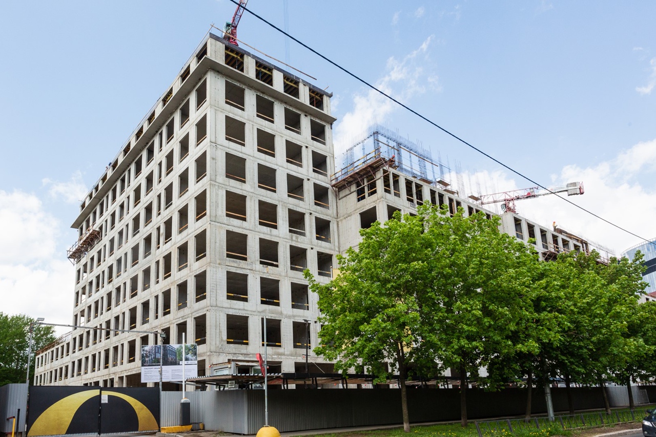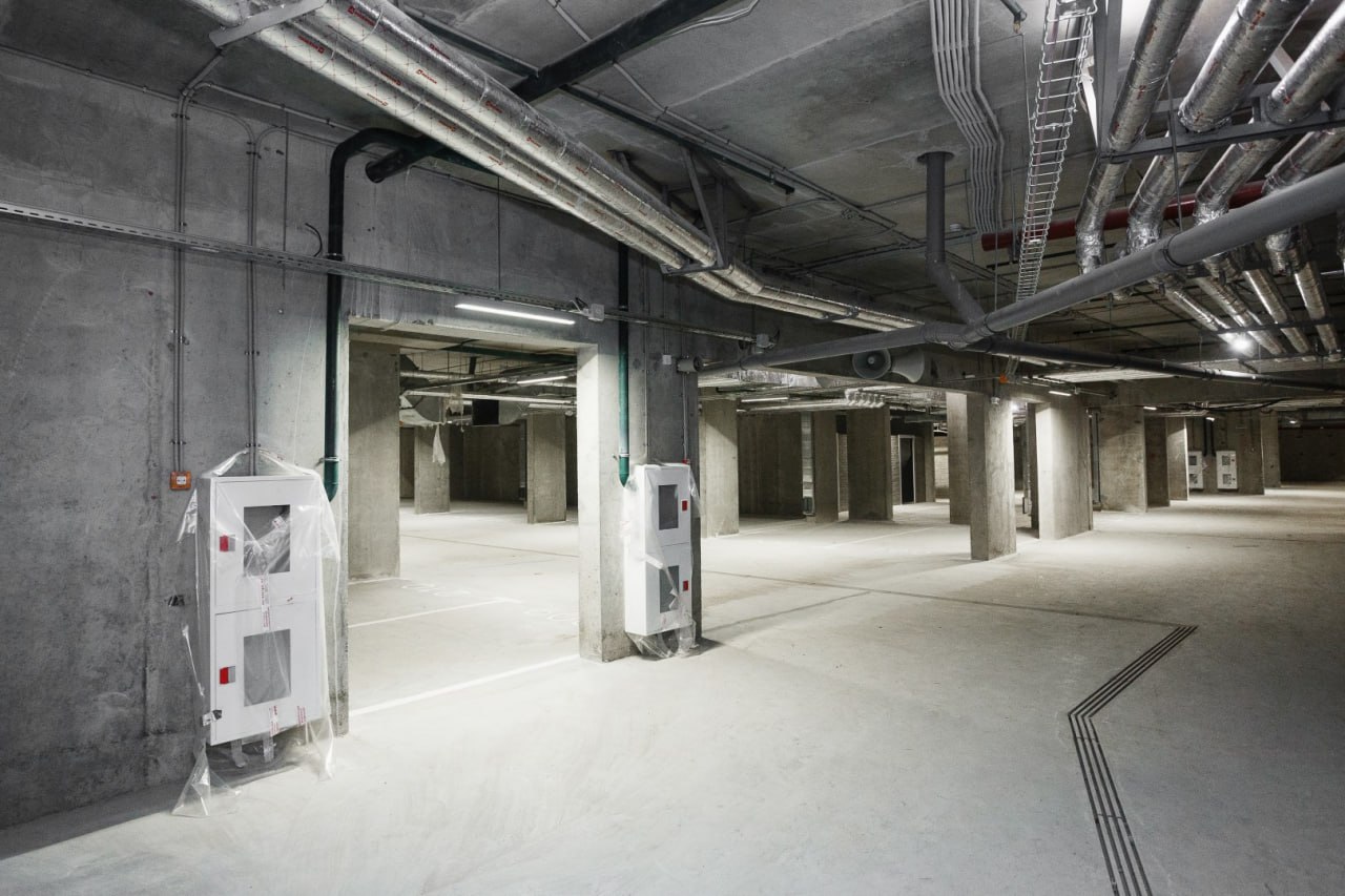 Со стороны улицы Стахановцев располагаются коммерческие помещения. Жильцов встречают стильные холлы. Подземный паркинг включает 490 м/м, действуют пассажирский и грузовой малошумные лифты.