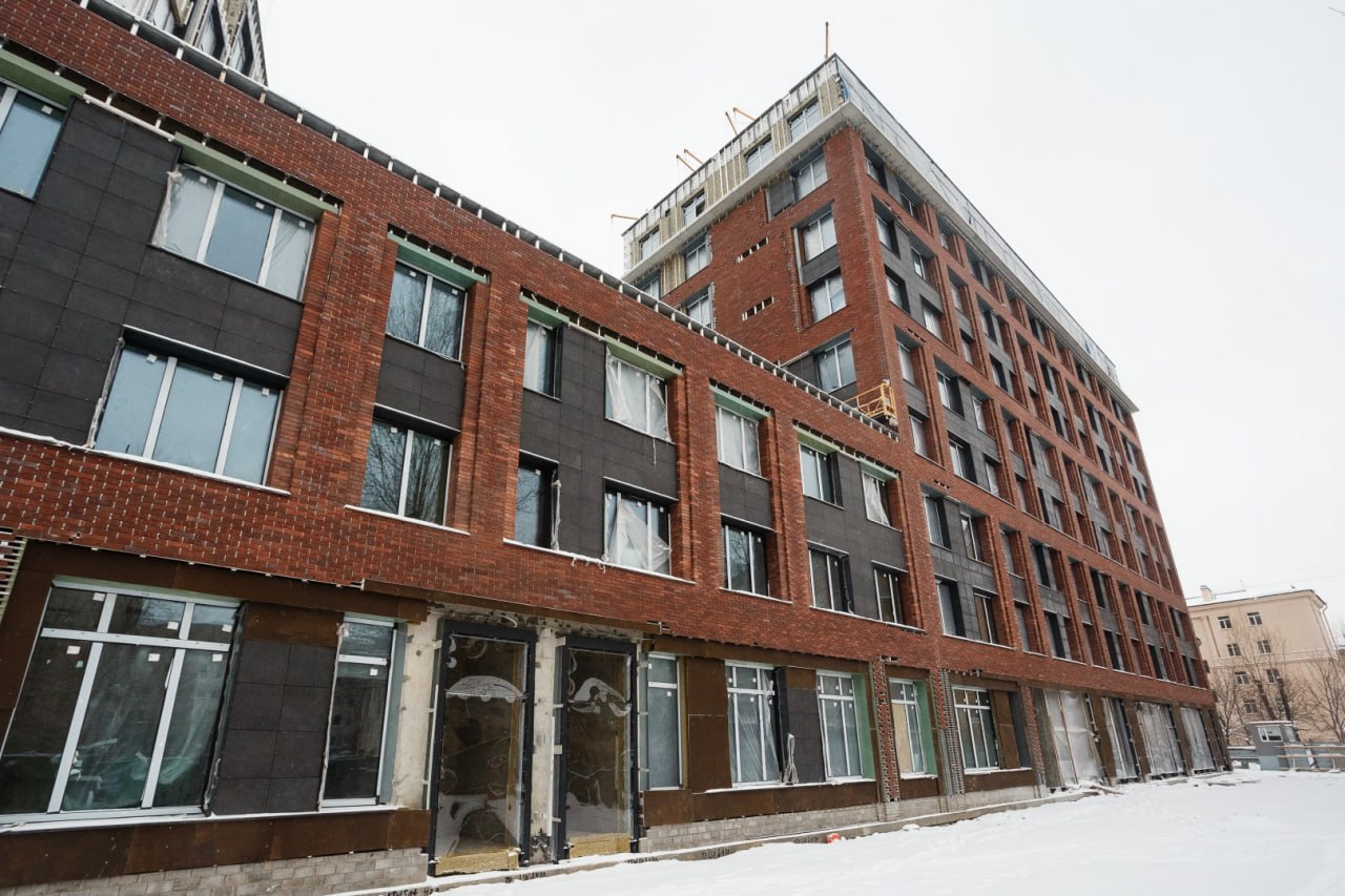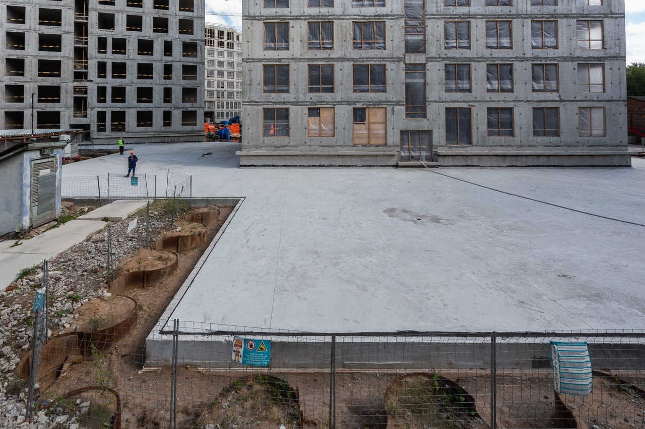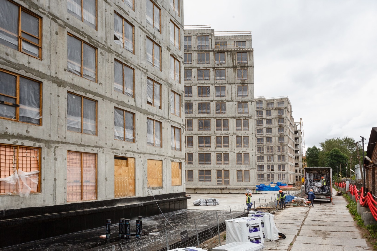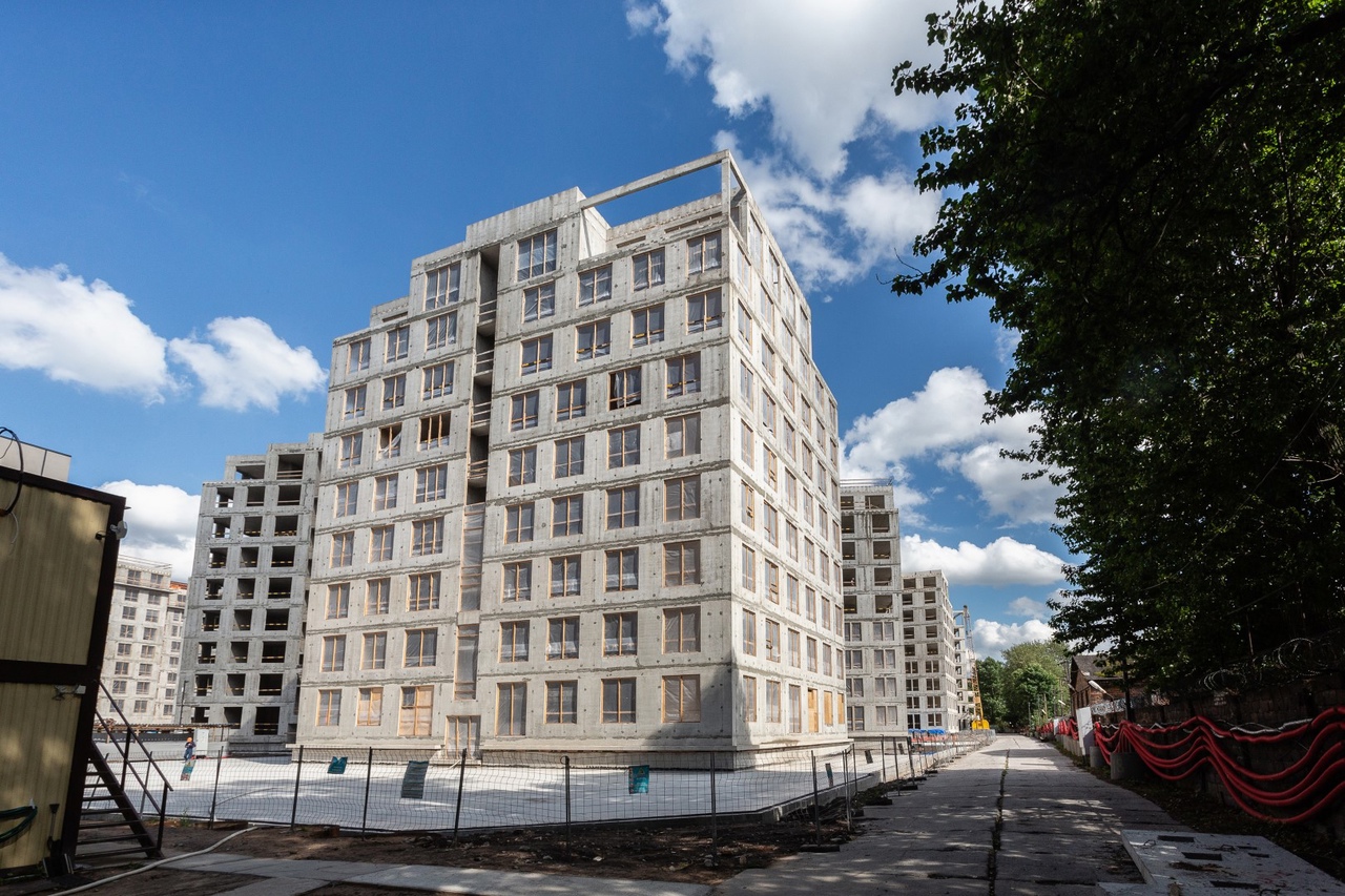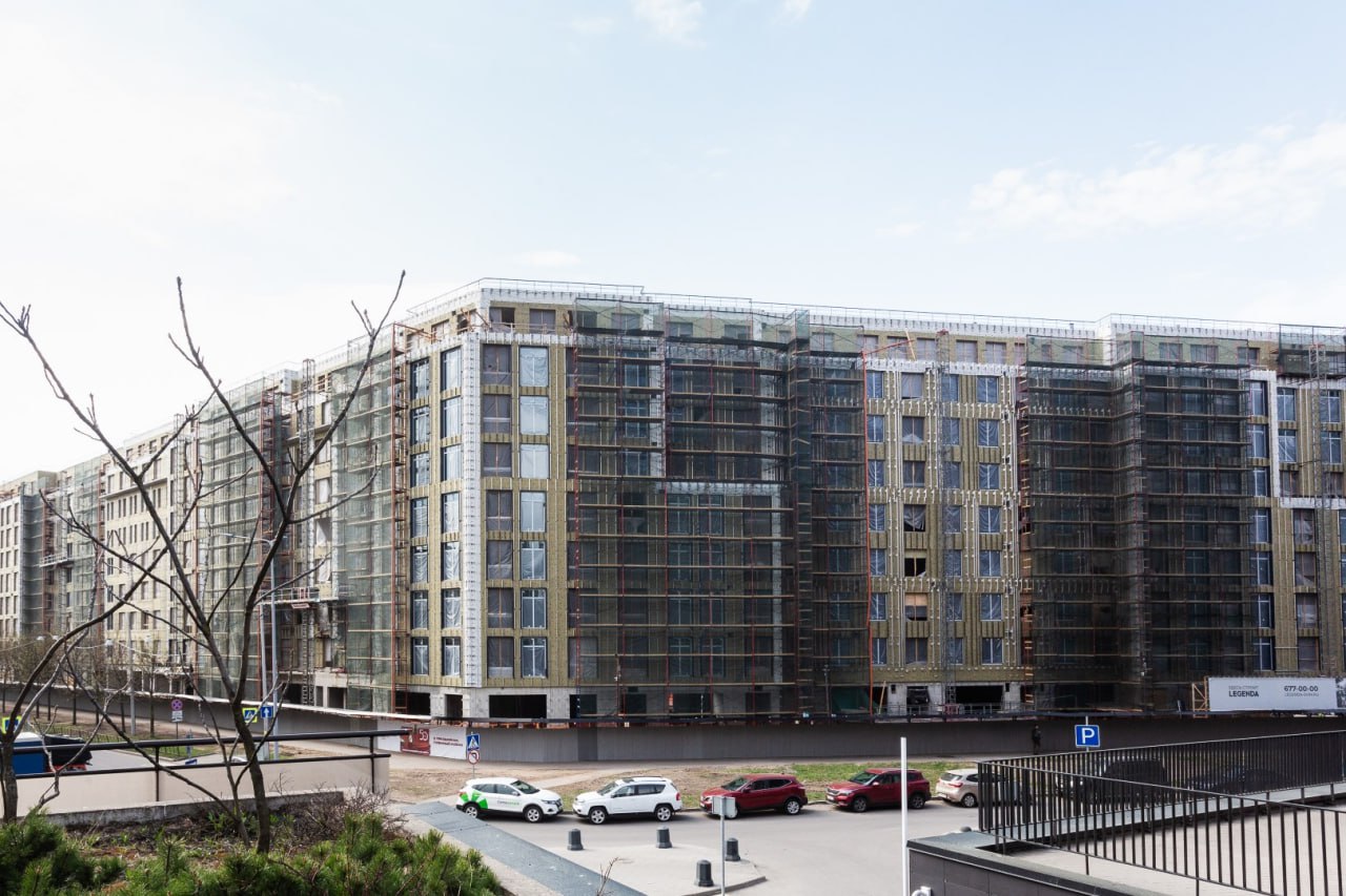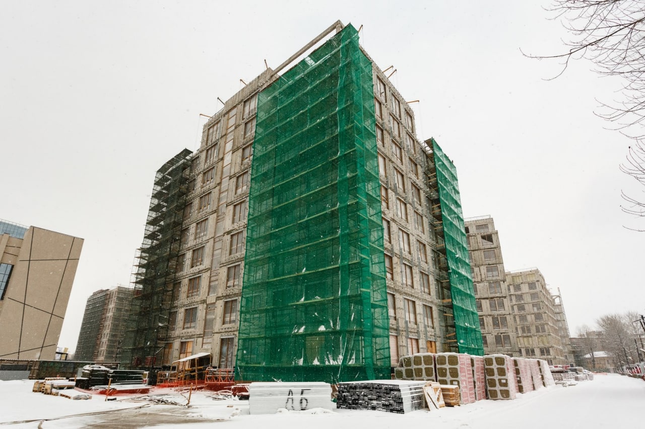 Под ЖК выкуплен целый квартал с озеленением, благодаря чему ансамбль не бросается в глаза, но находится рядом с центром города: