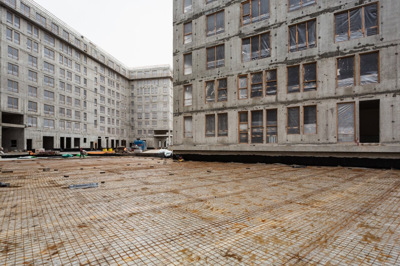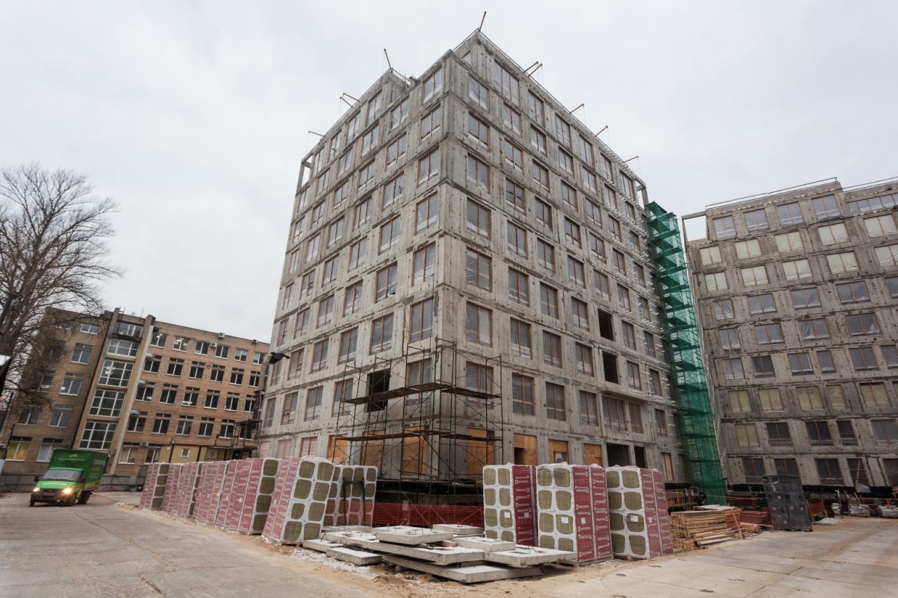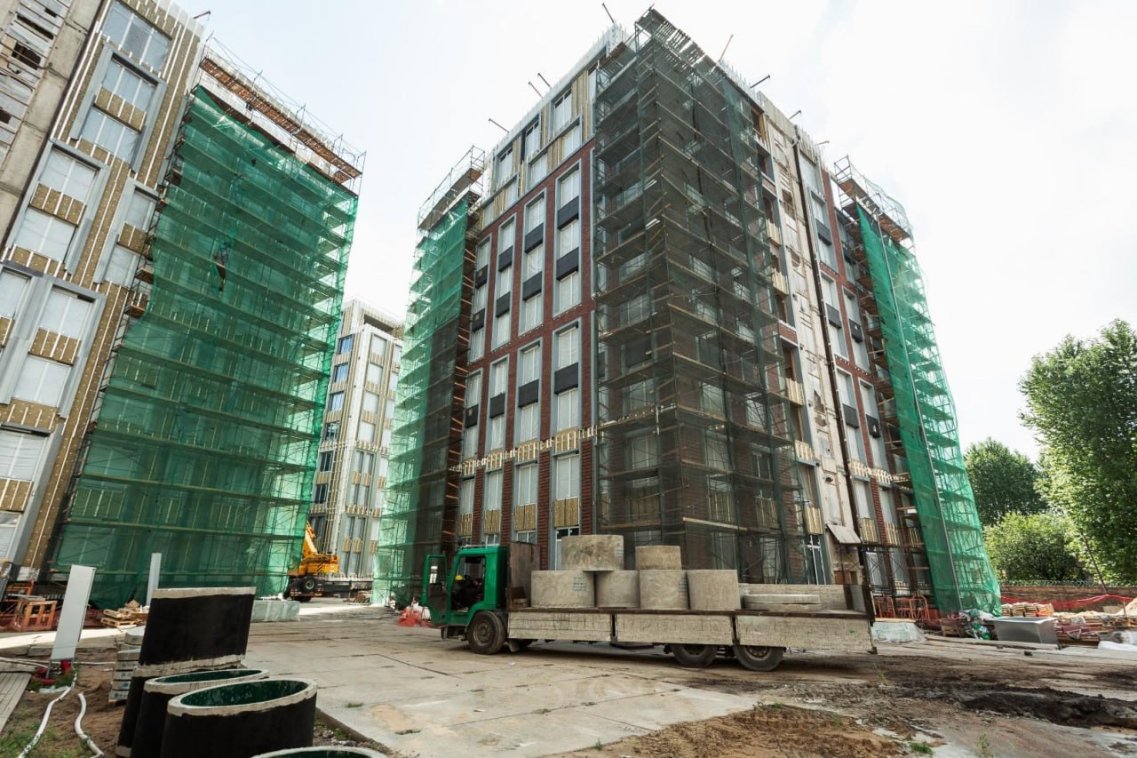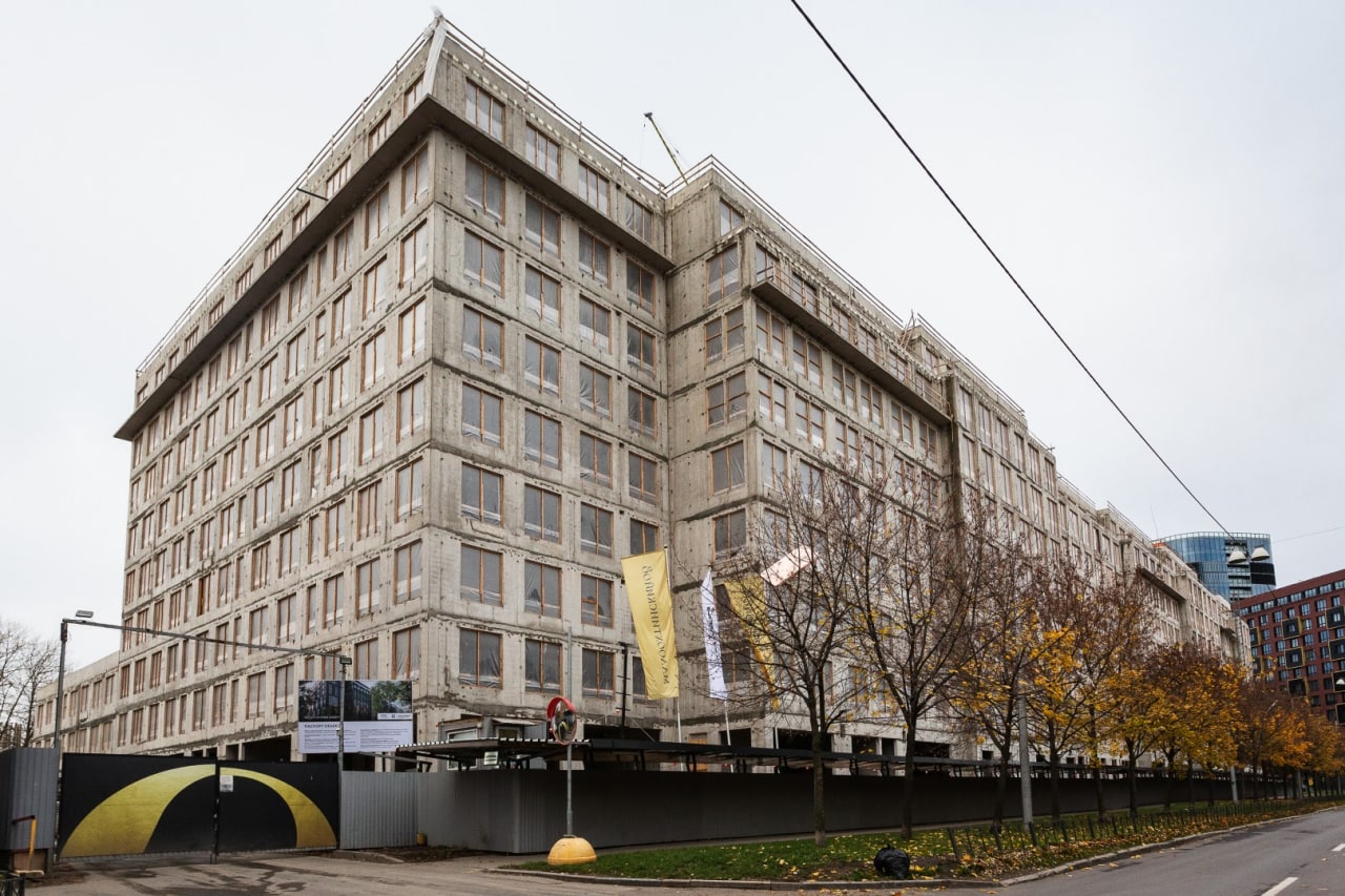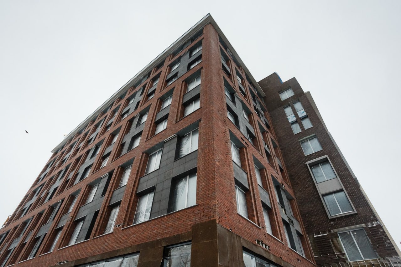 Под ЖК выкуплен целый квартал с озеленением, благодаря чему ансамбль не бросается в глаза, но находится рядом с центром города: