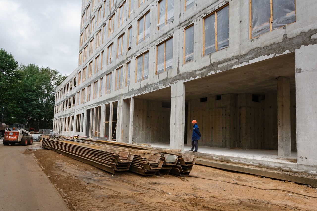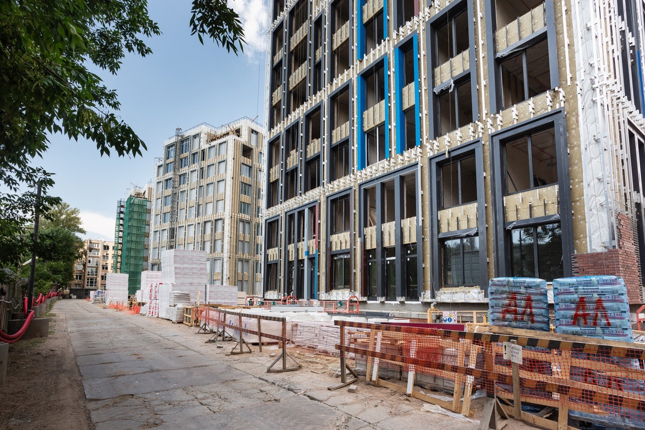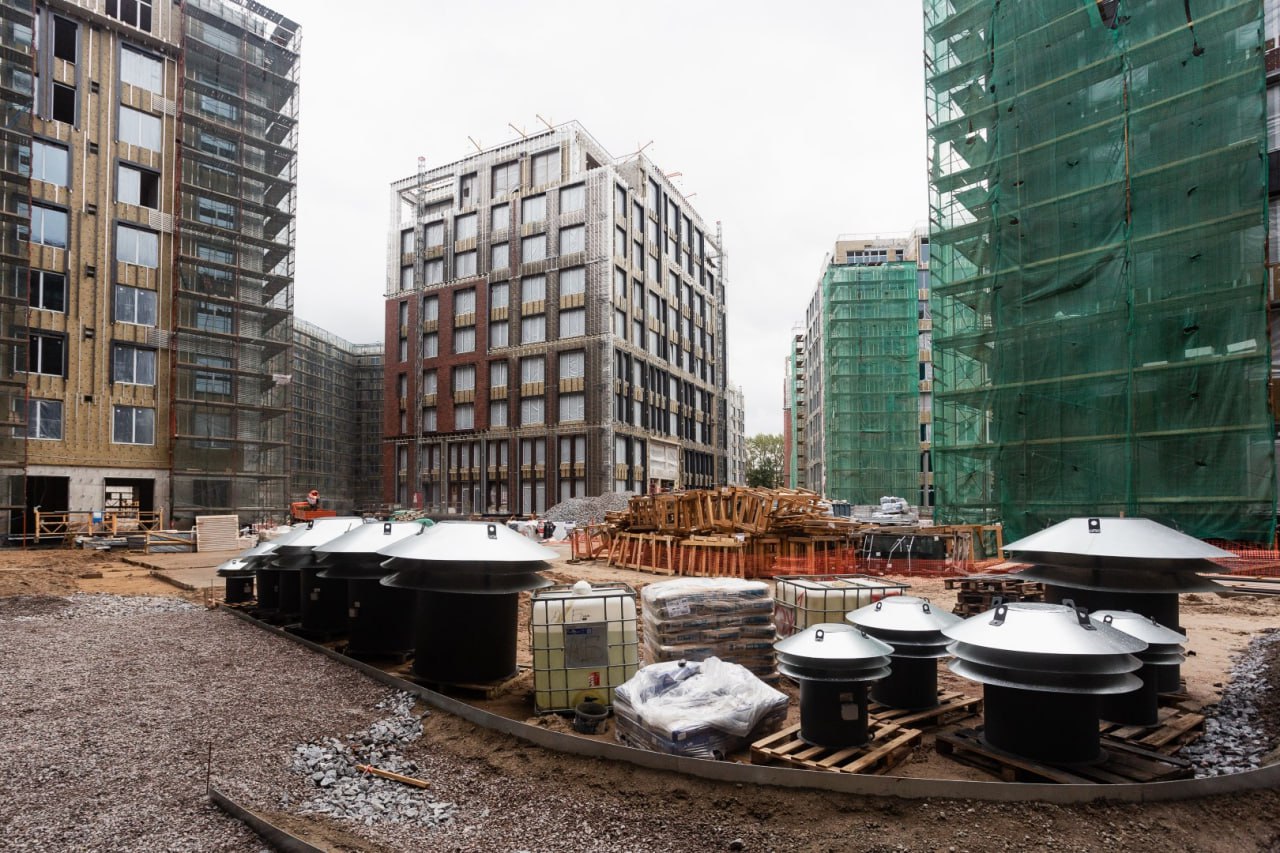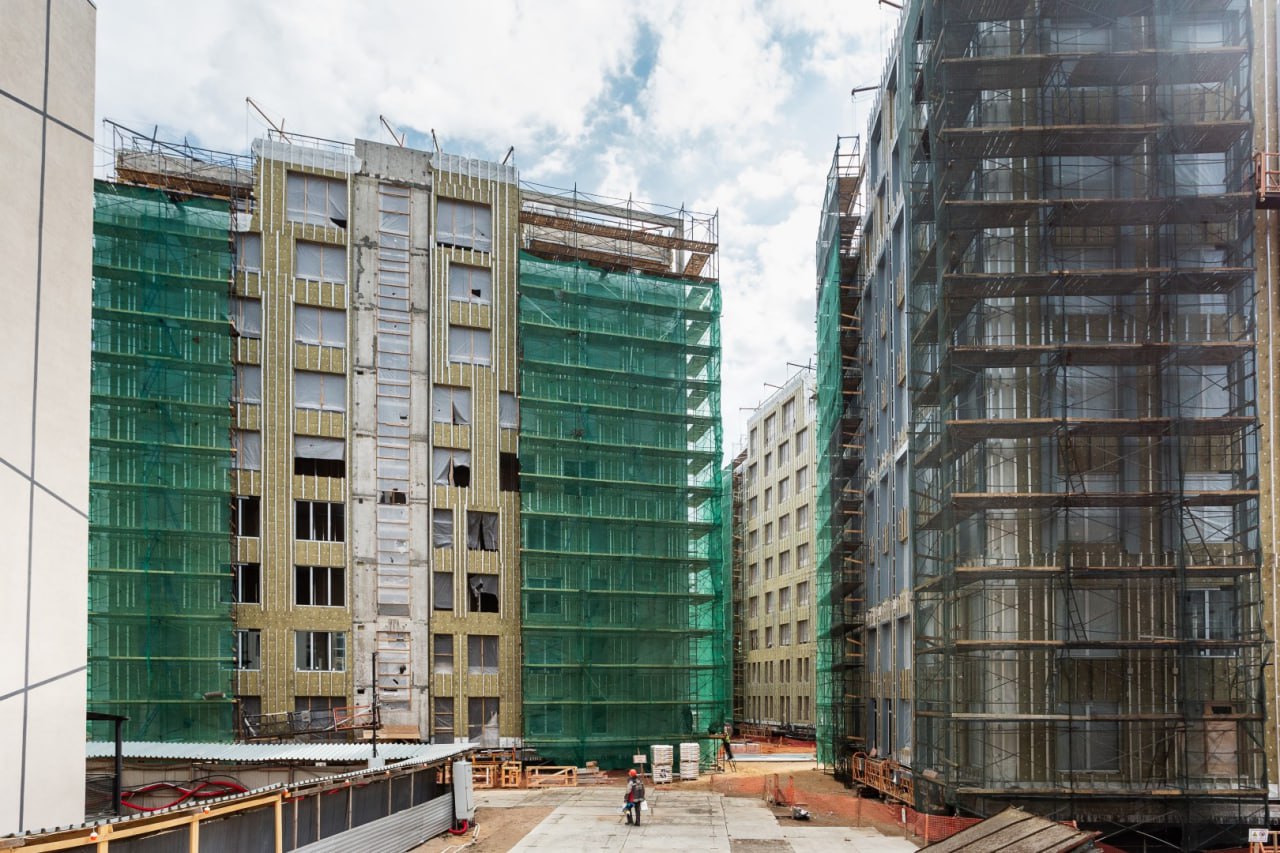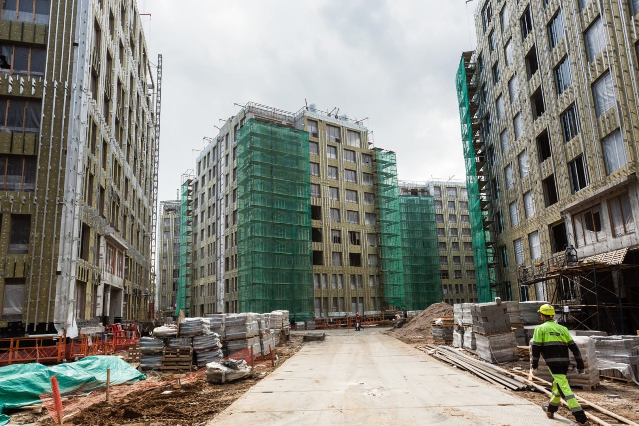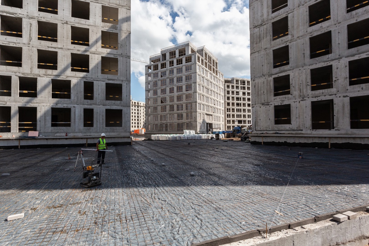 Под ЖК выкуплен целый квартал с озеленением, благодаря чему ансамбль не бросается в глаза, но находится рядом с центром города: