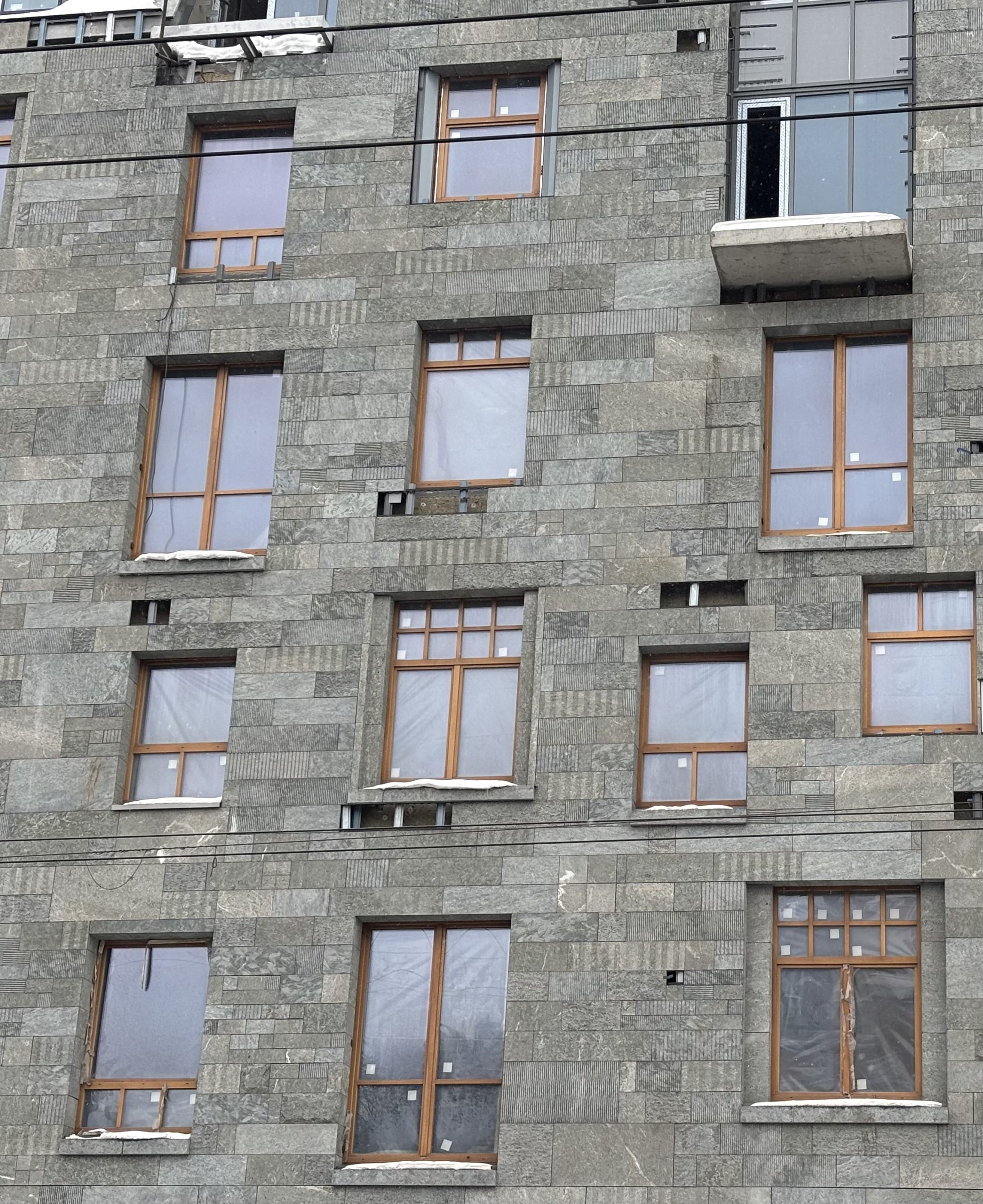 В 8-этажном ЖК предусмотрено 12 парадных и 163 квартиры, от однокомнатных до пятикомнатных, площадью 45-313 м2. Есть планировки евро.