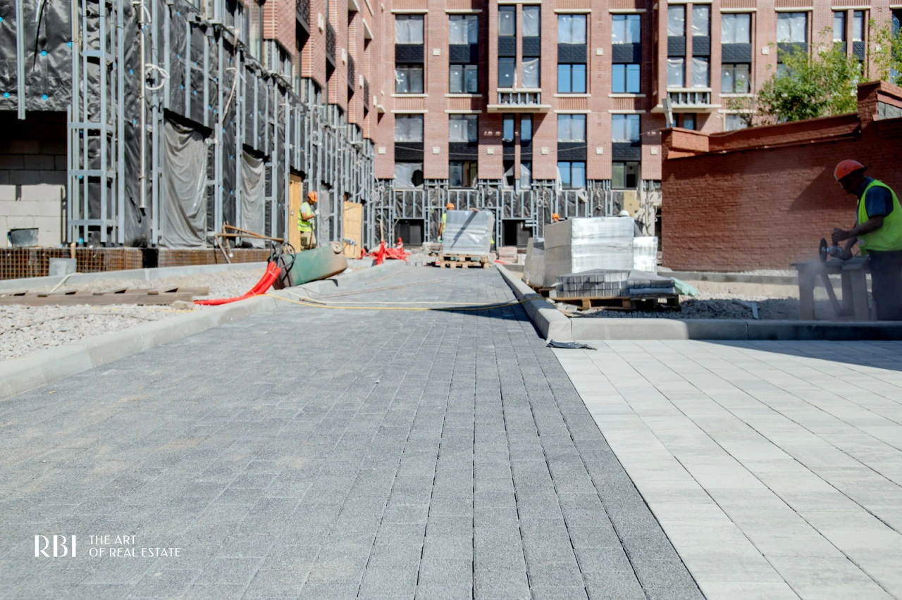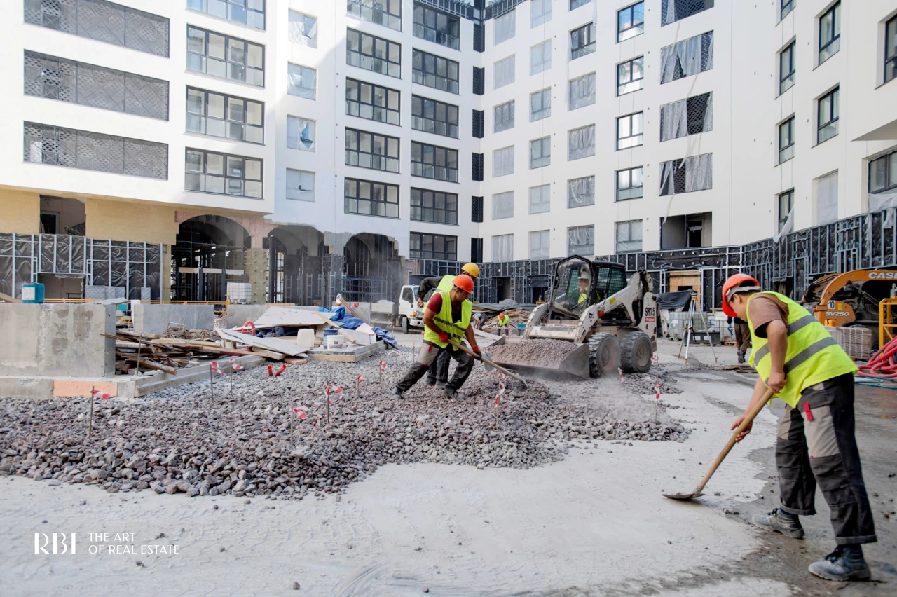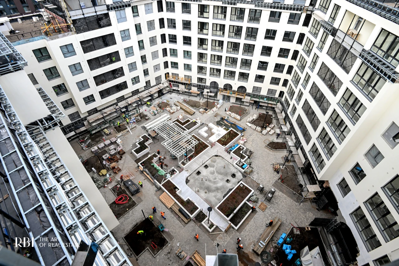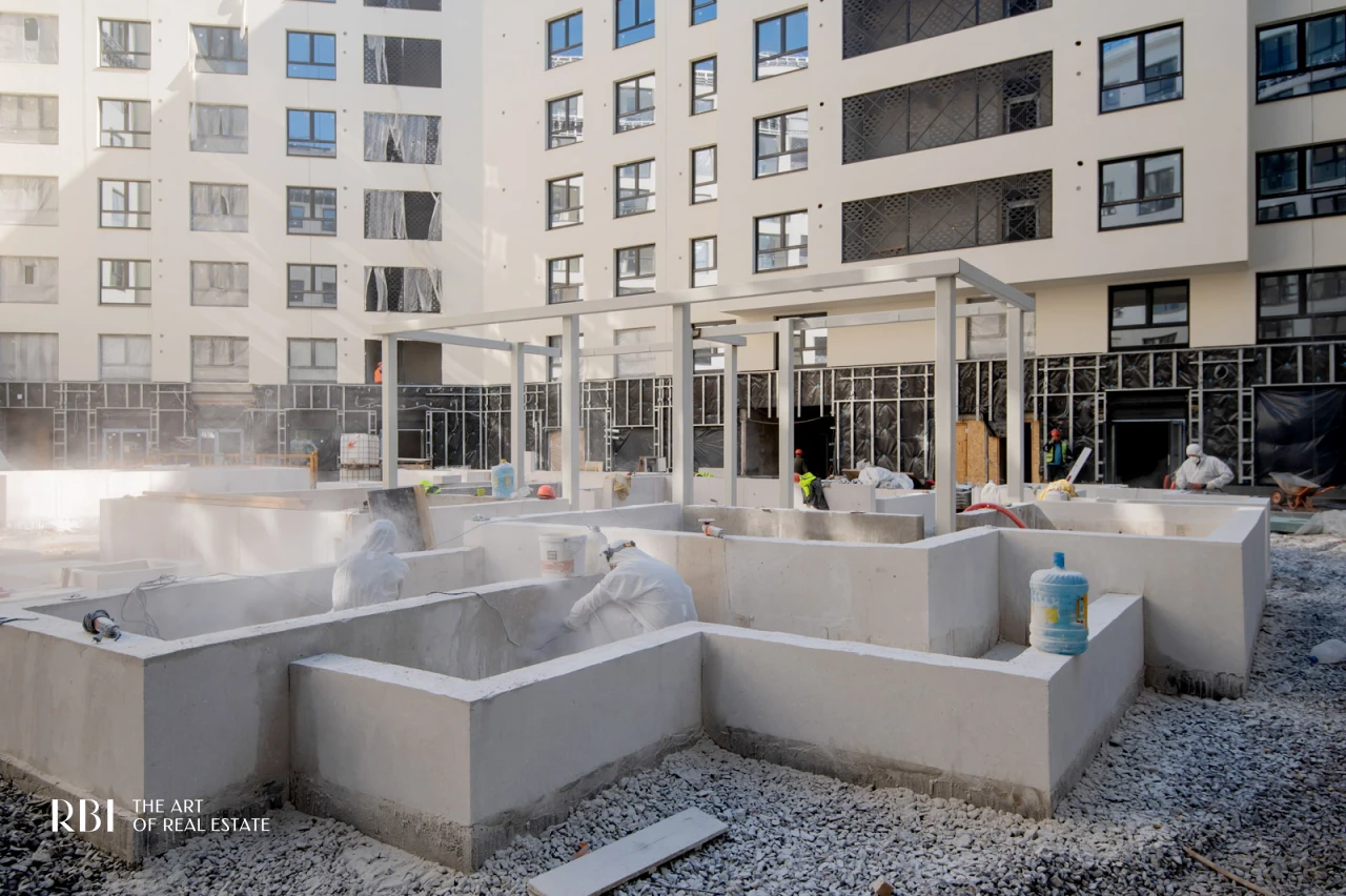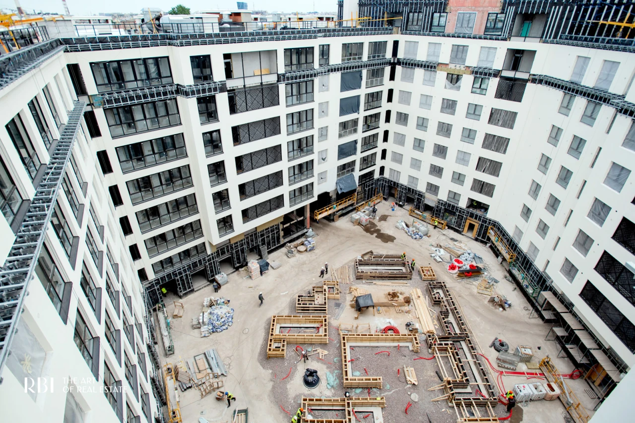 Большое значение RBI придает благоустройству придомовой территории. Внутренний двор похож на зеленый сквер с детской площадкой из натуральных материалов, амфитеатром, деревянными шезлонгами, уличными обогревателями и пространством под навесом.