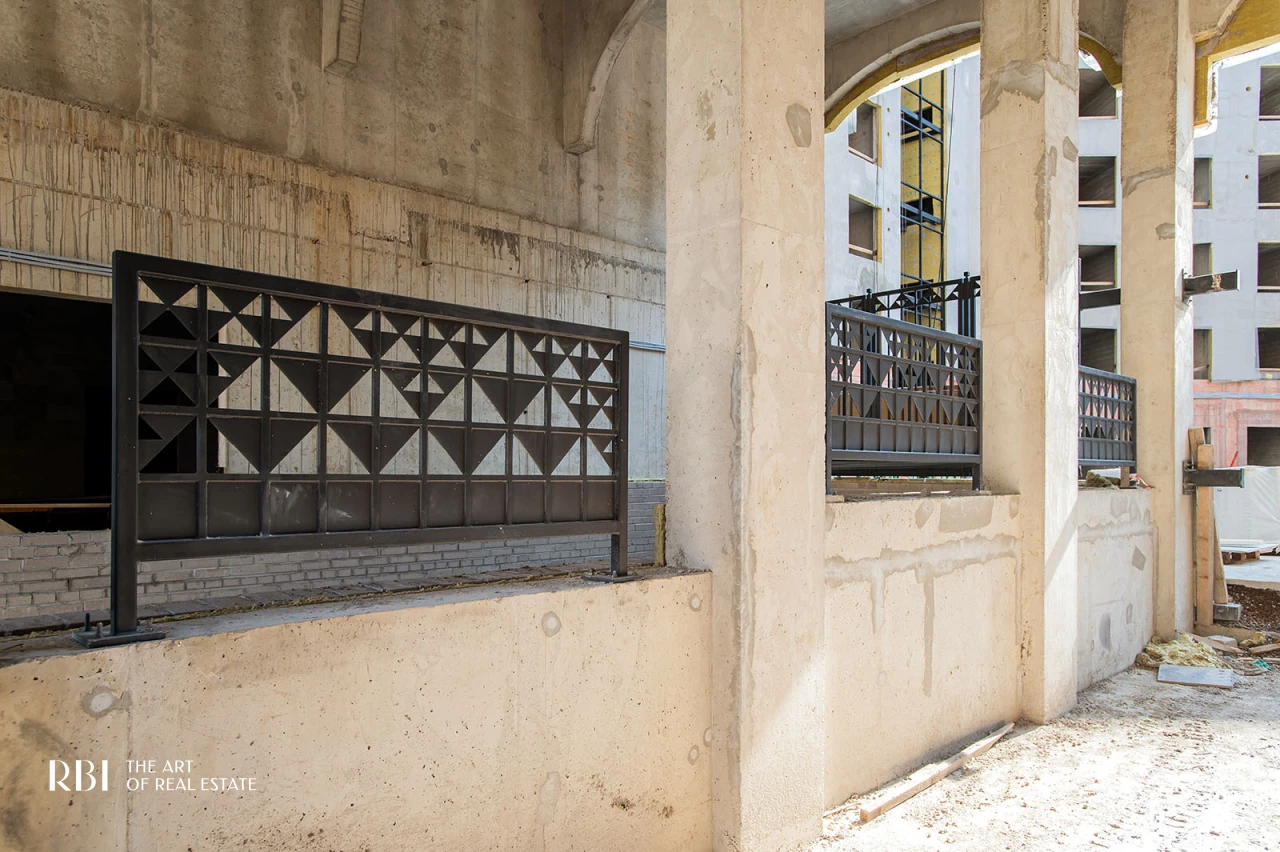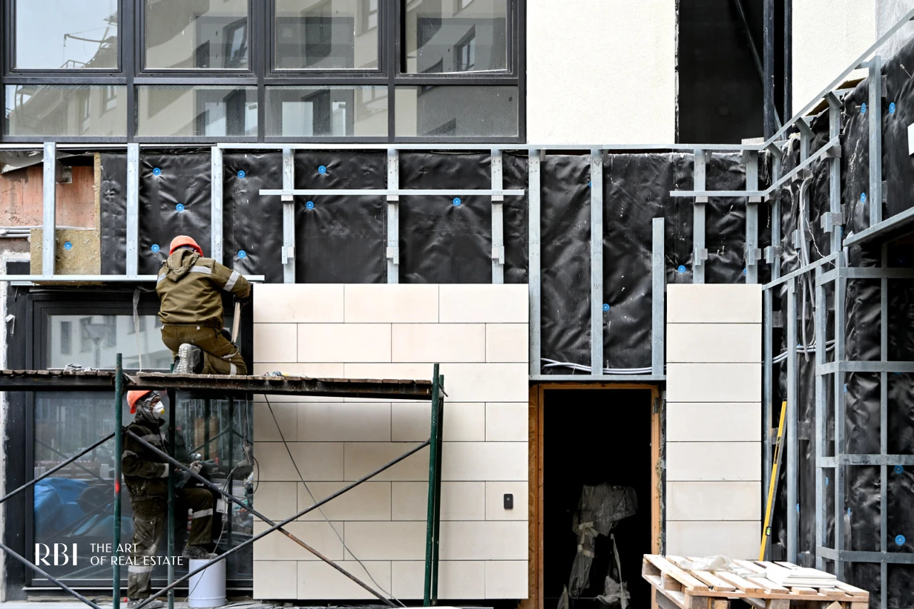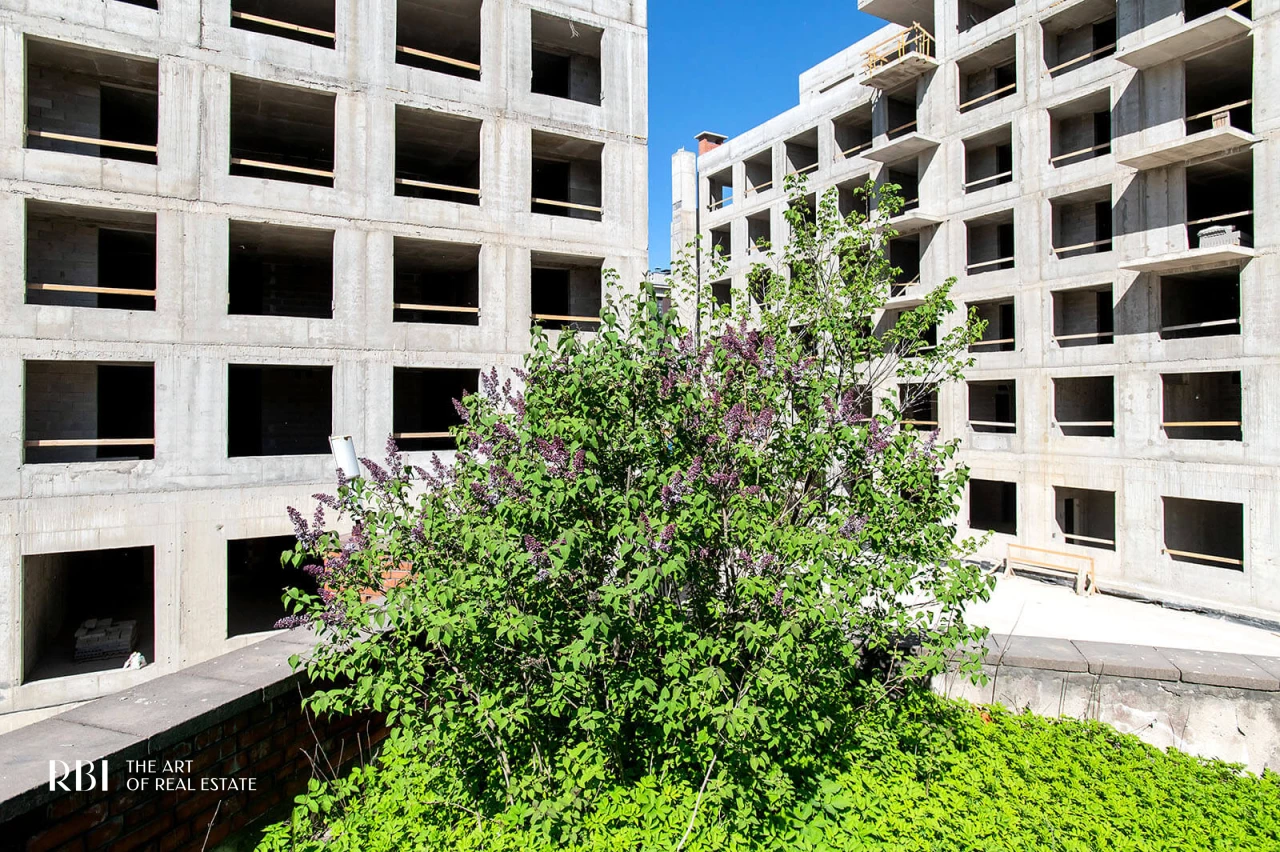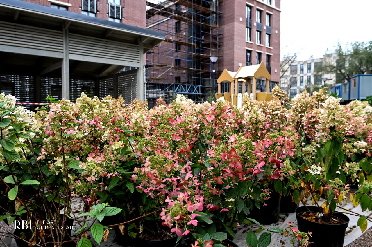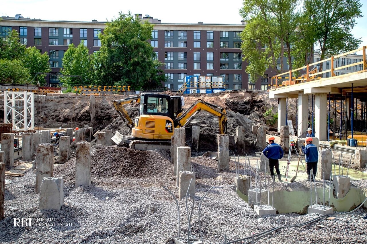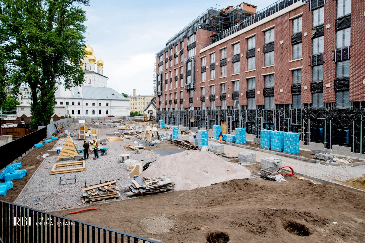 Большое значение RBI придает благоустройству придомовой территории. Внутренний двор похож на зеленый сквер с детской площадкой из натуральных материалов, амфитеатром, деревянными шезлонгами, уличными обогревателями и пространством под навесом.