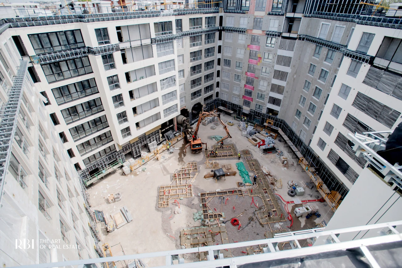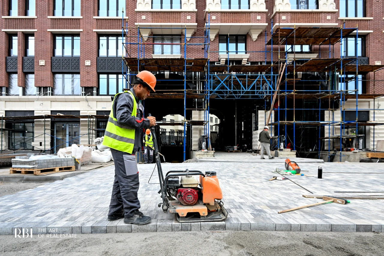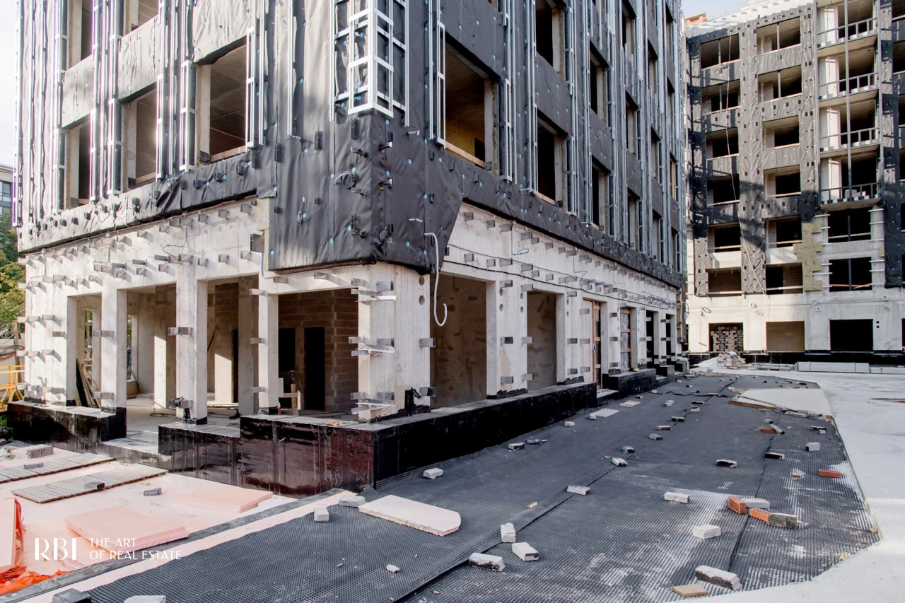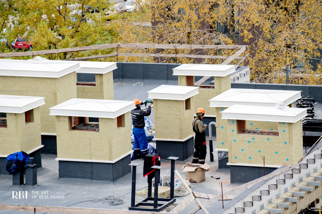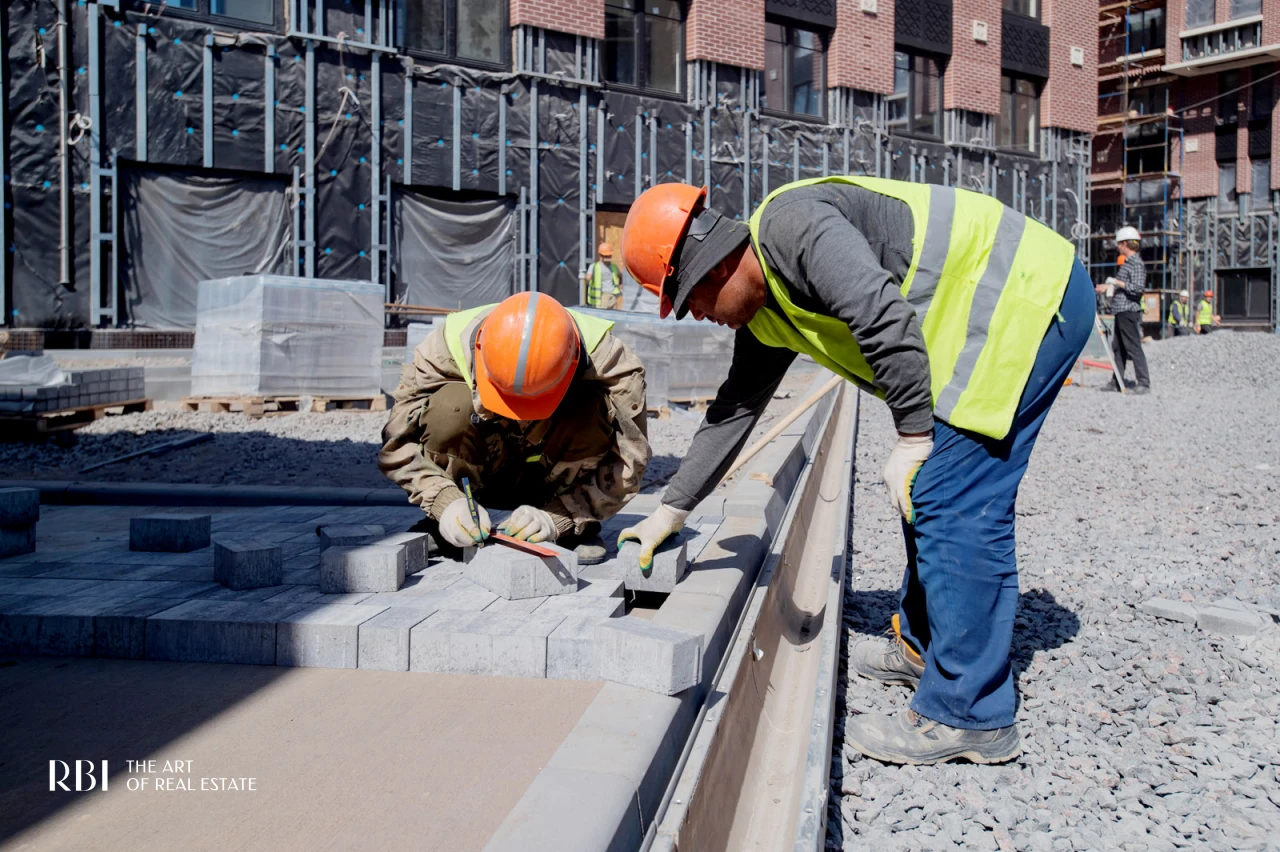 Большое значение RBI придает благоустройству придомовой территории. Внутренний двор похож на зеленый сквер с детской площадкой из натуральных материалов, амфитеатром, деревянными шезлонгами, уличными обогревателями и пространством под навесом.