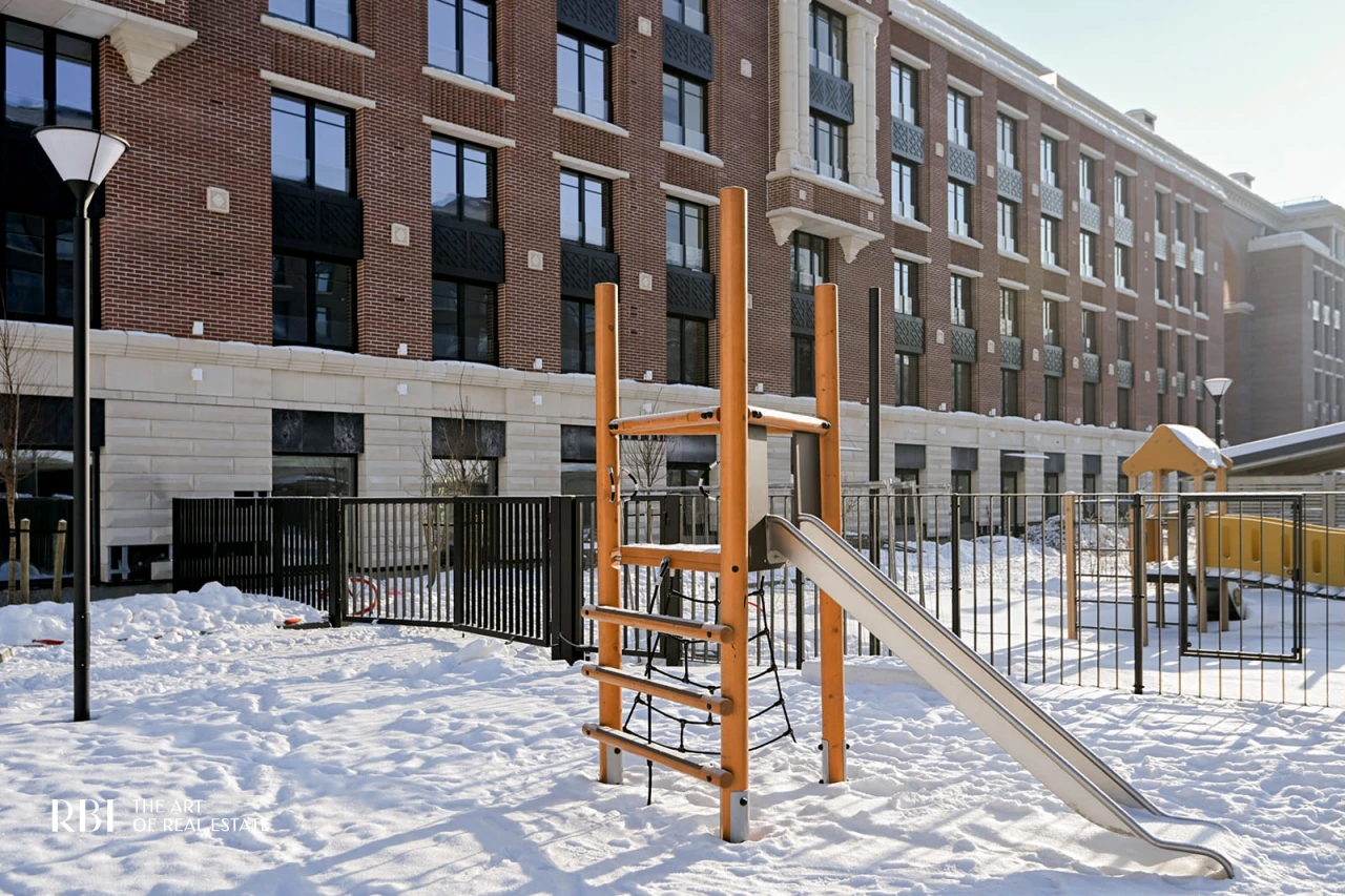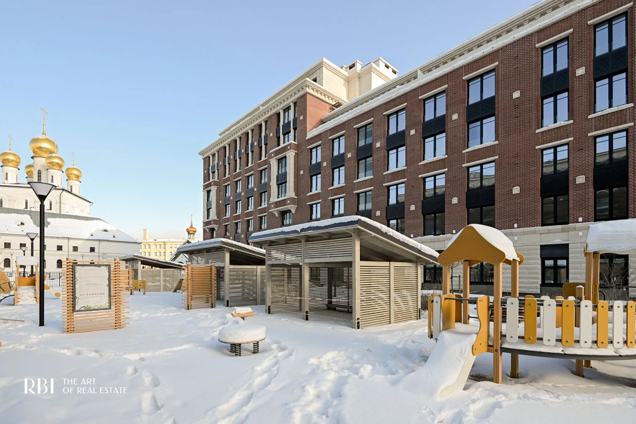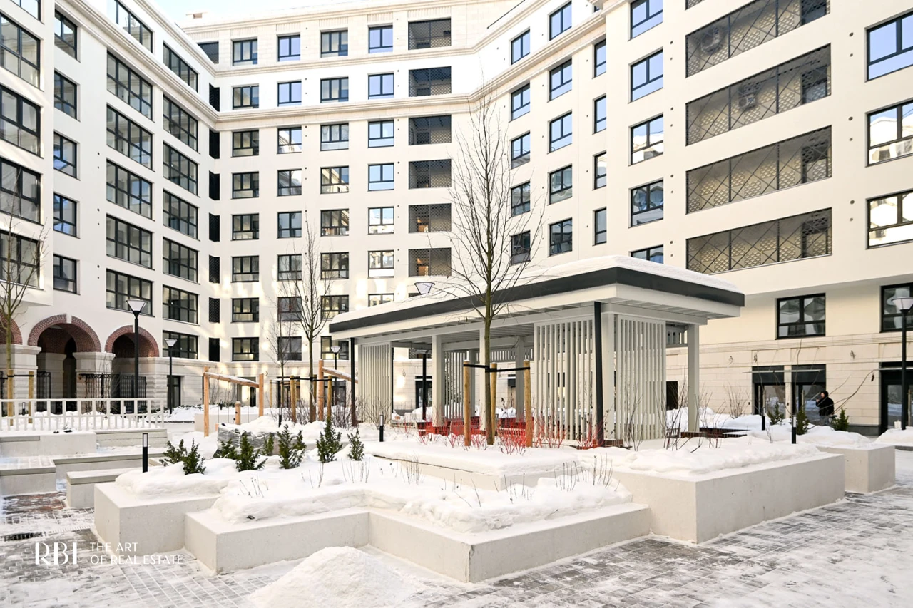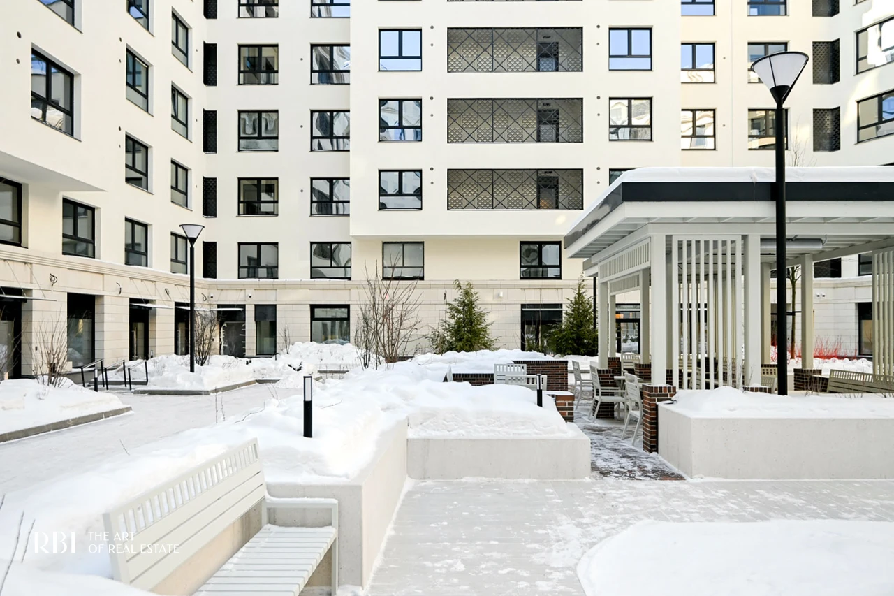 Большое значение RBI придает благоустройству придомовой территории. Внутренний двор похож на зеленый сквер с детской площадкой из натуральных материалов, амфитеатром, деревянными шезлонгами, уличными обогревателями и пространством под навесом.