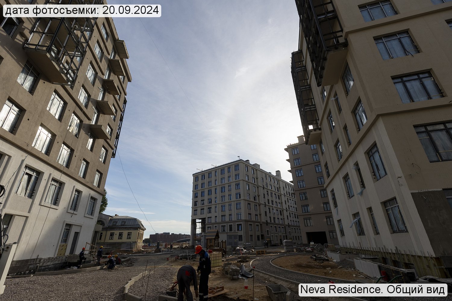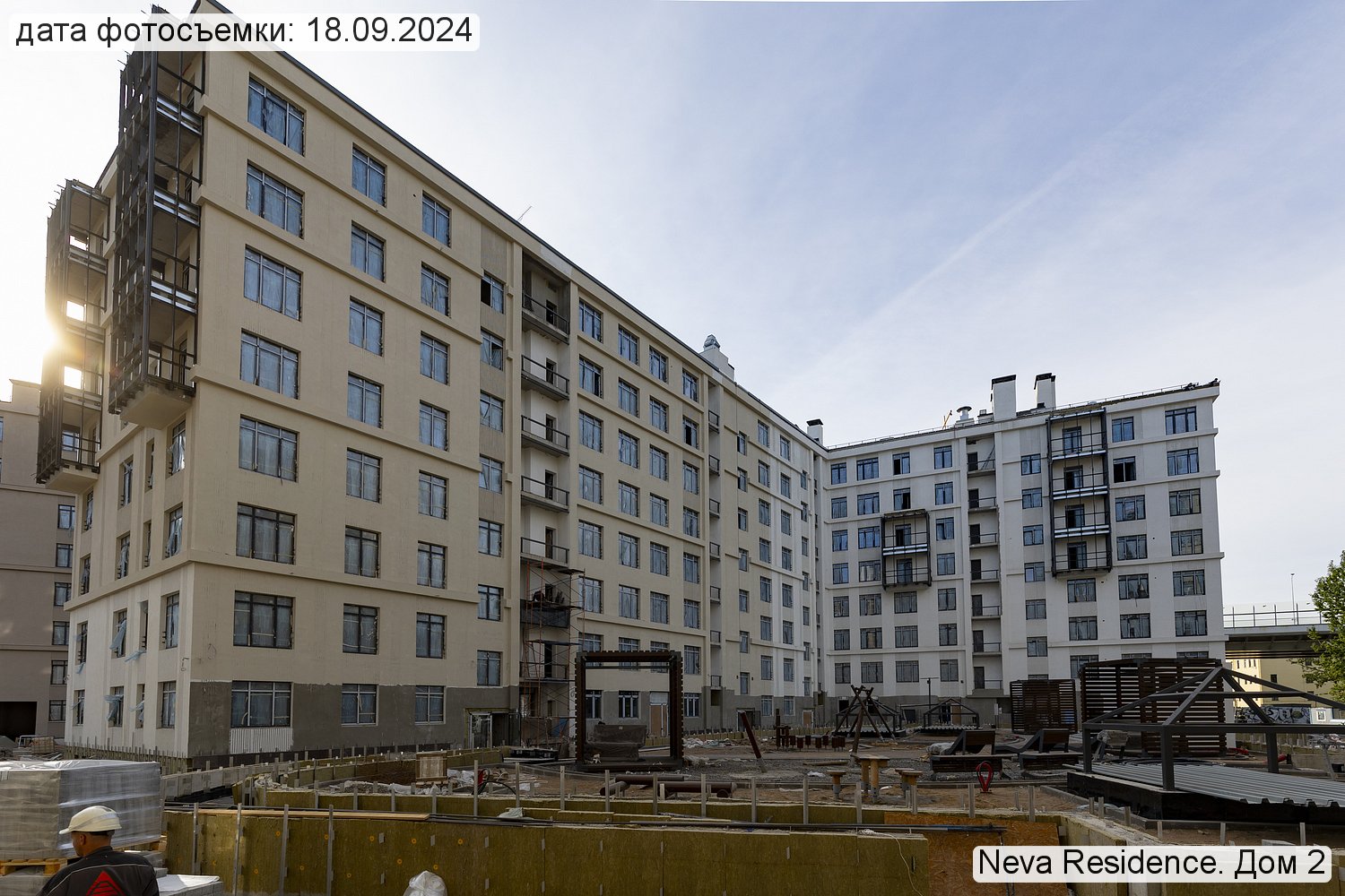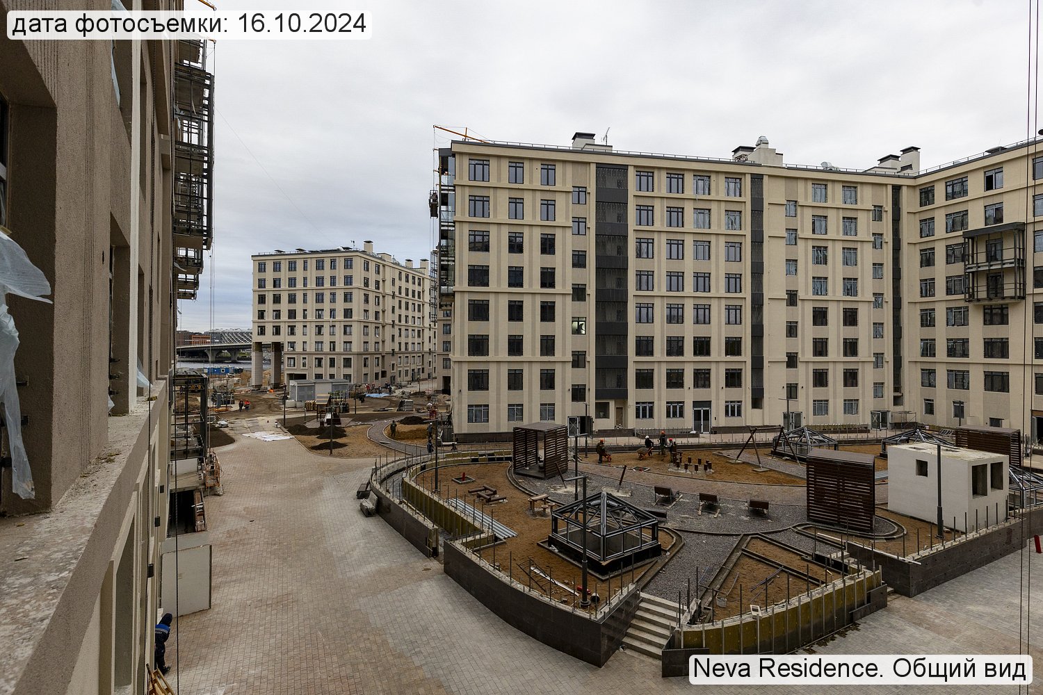 Территория премиального комплекса начинается от Невы и включает собственную набережную с променадом, протяженностью 500 м. Далее обустроена зона отдыха под открытым небом с великолепными видами на воду. Изысканный ландшафтный дизайн включает насыпные холмы, деревья-крупномеры, декоративные кустарники и цветочные клумбы, мощеные дорожки.