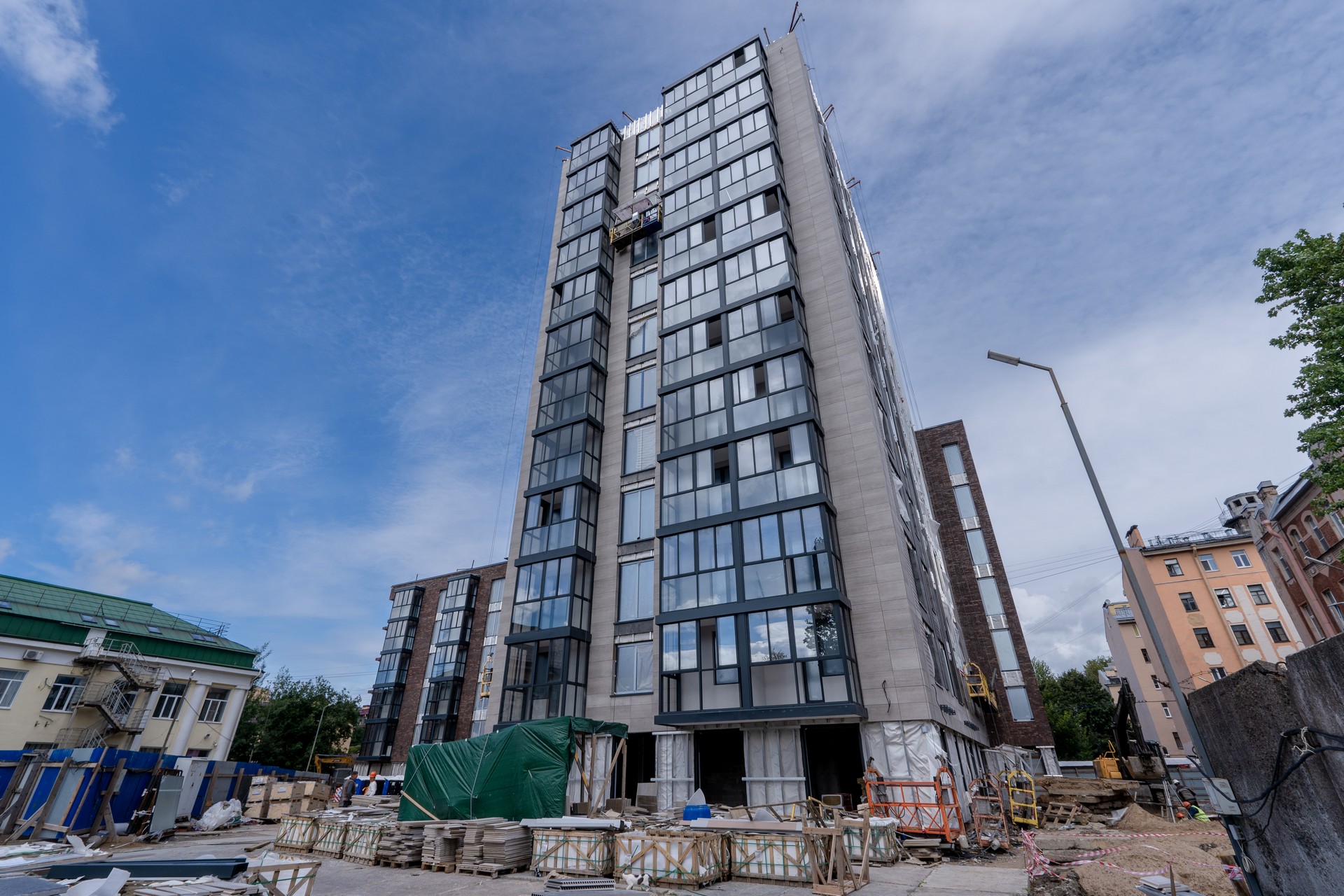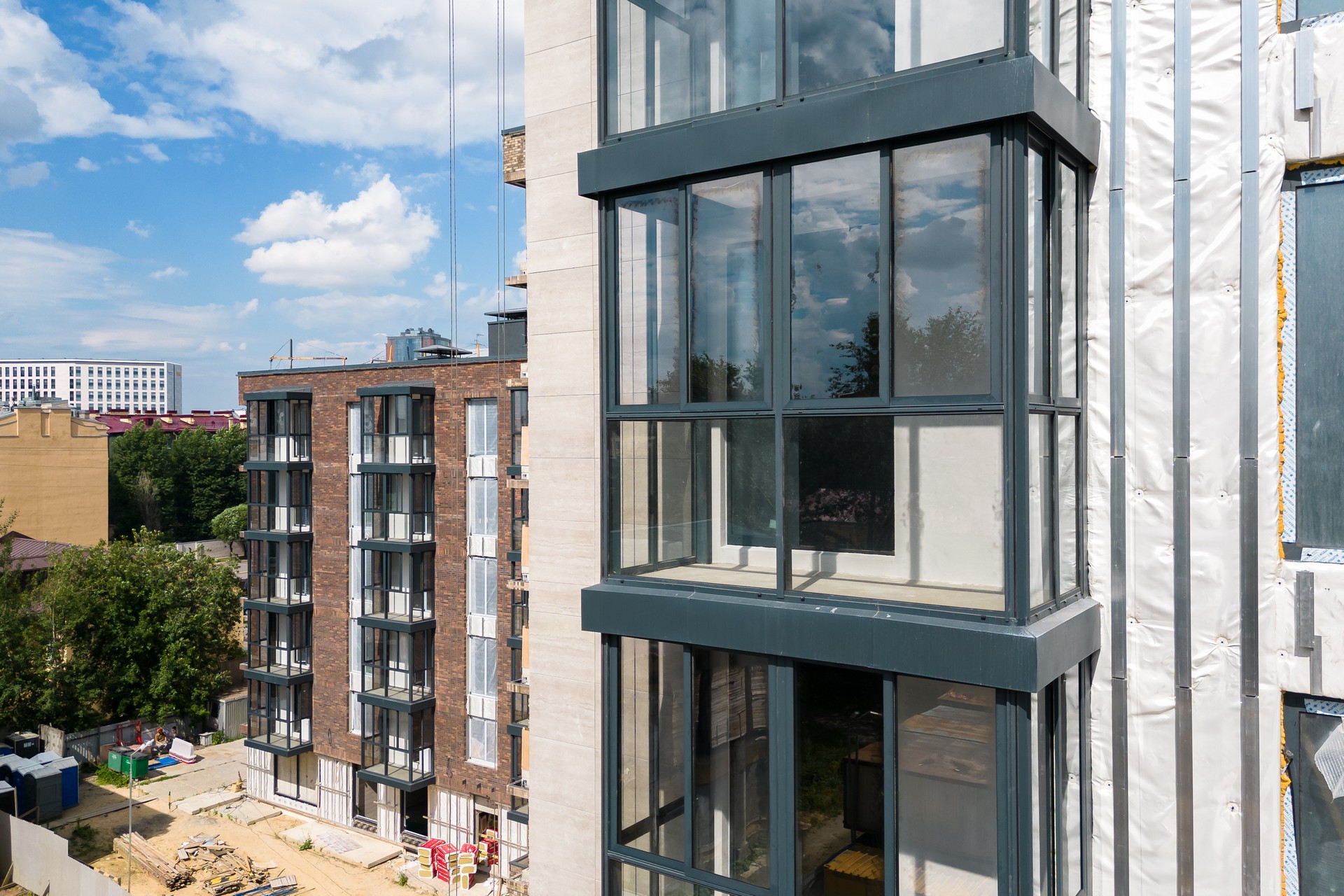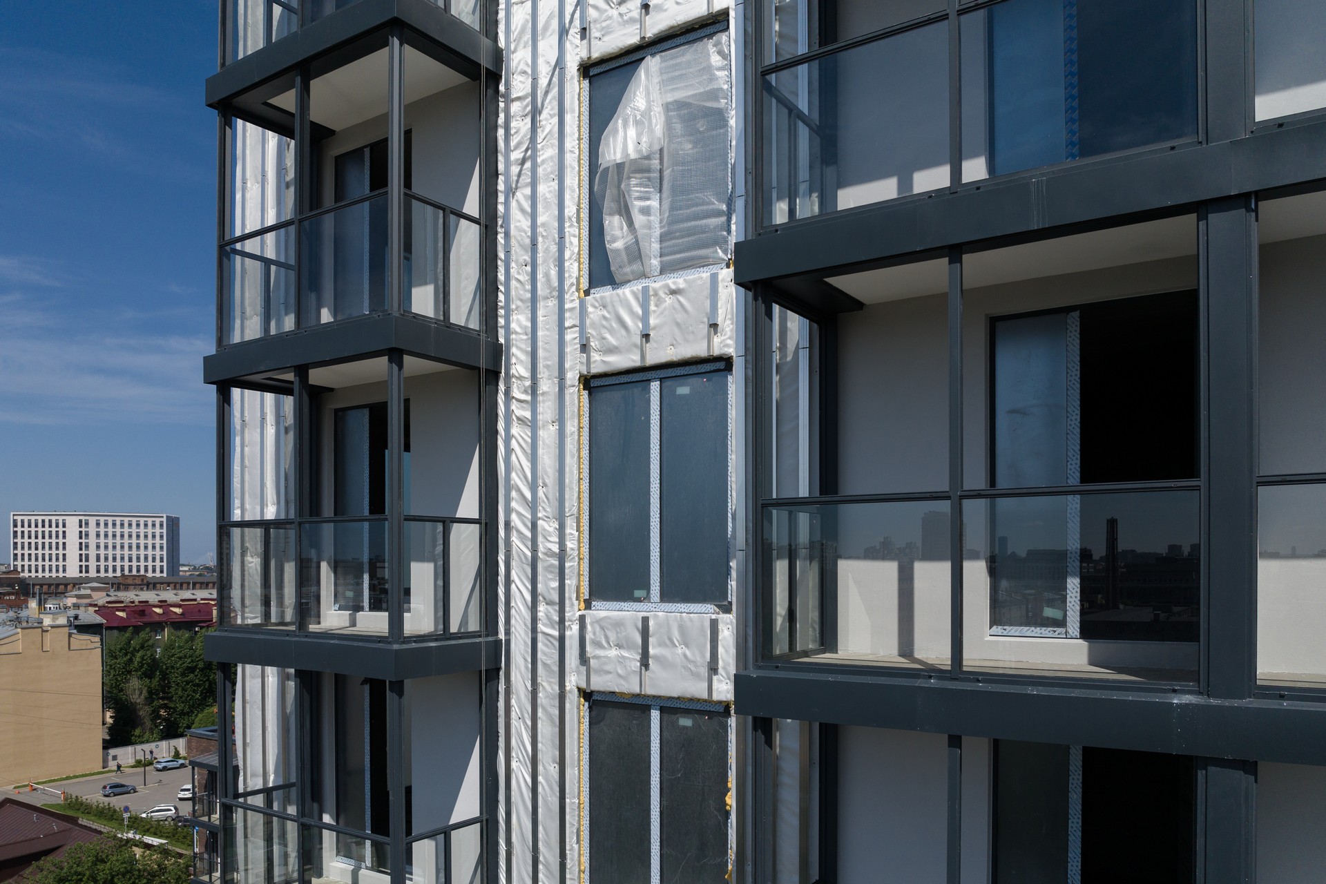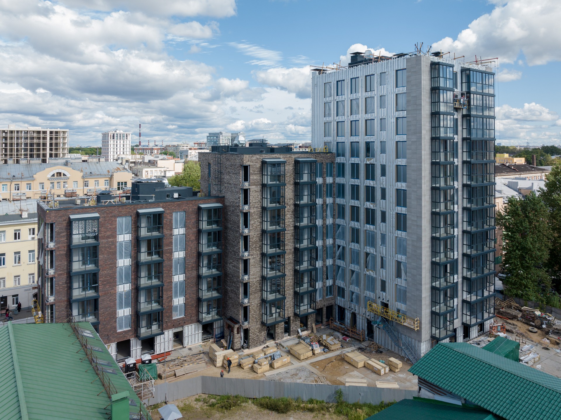 В оригинальном архитектурном облике дома из двух секций в 7 и 12 этажей прослеживаются мотивы холодного скандинавского стиля, брутального лофта и индустриальной застройки Московской заставы.
