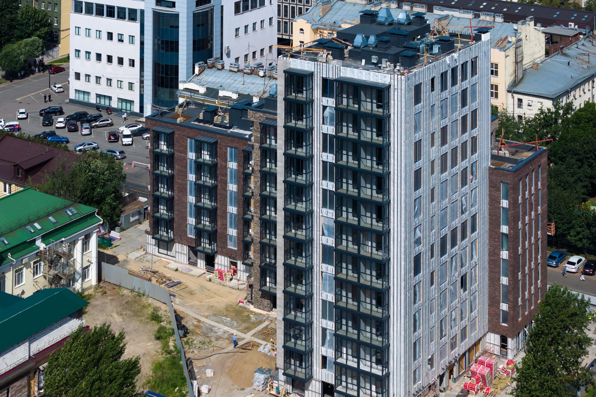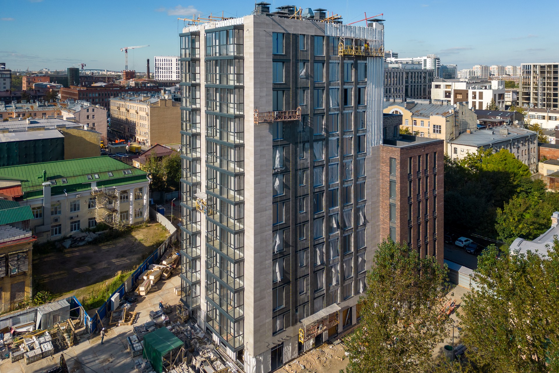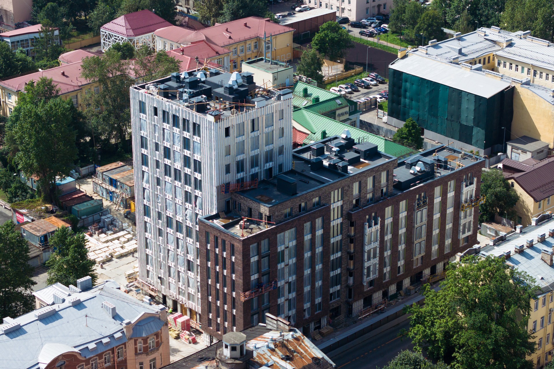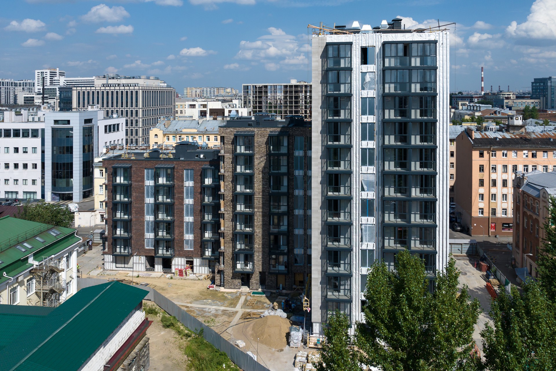 В оригинальном архитектурном облике дома из двух секций в 7 и 12 этажей прослеживаются мотивы холодного скандинавского стиля, брутального лофта и индустриальной застройки Московской заставы.