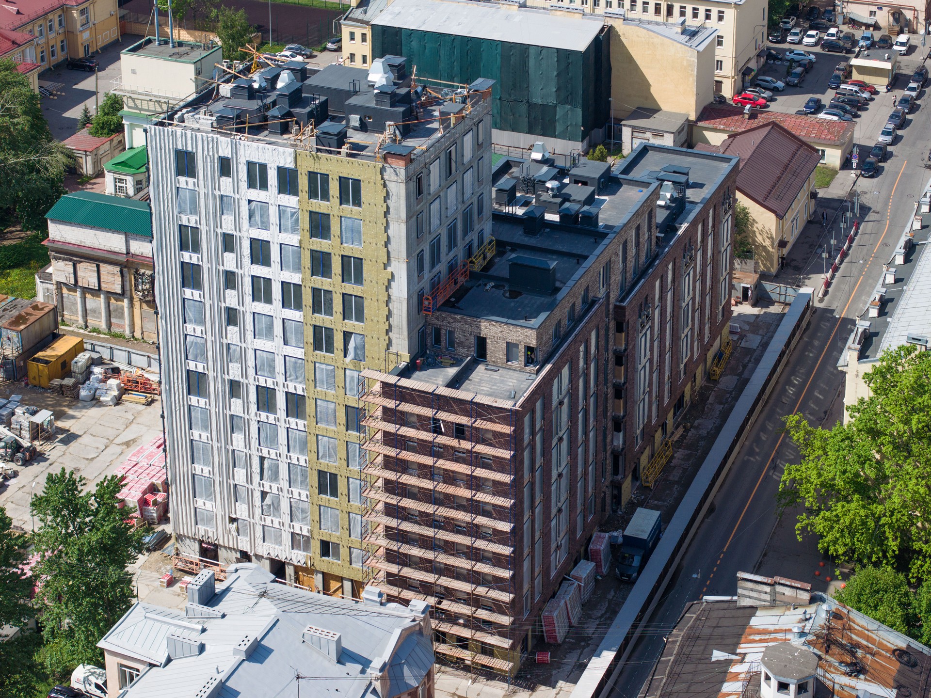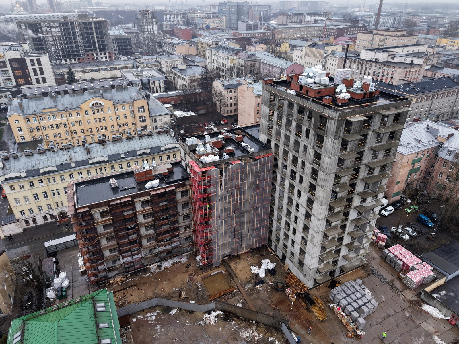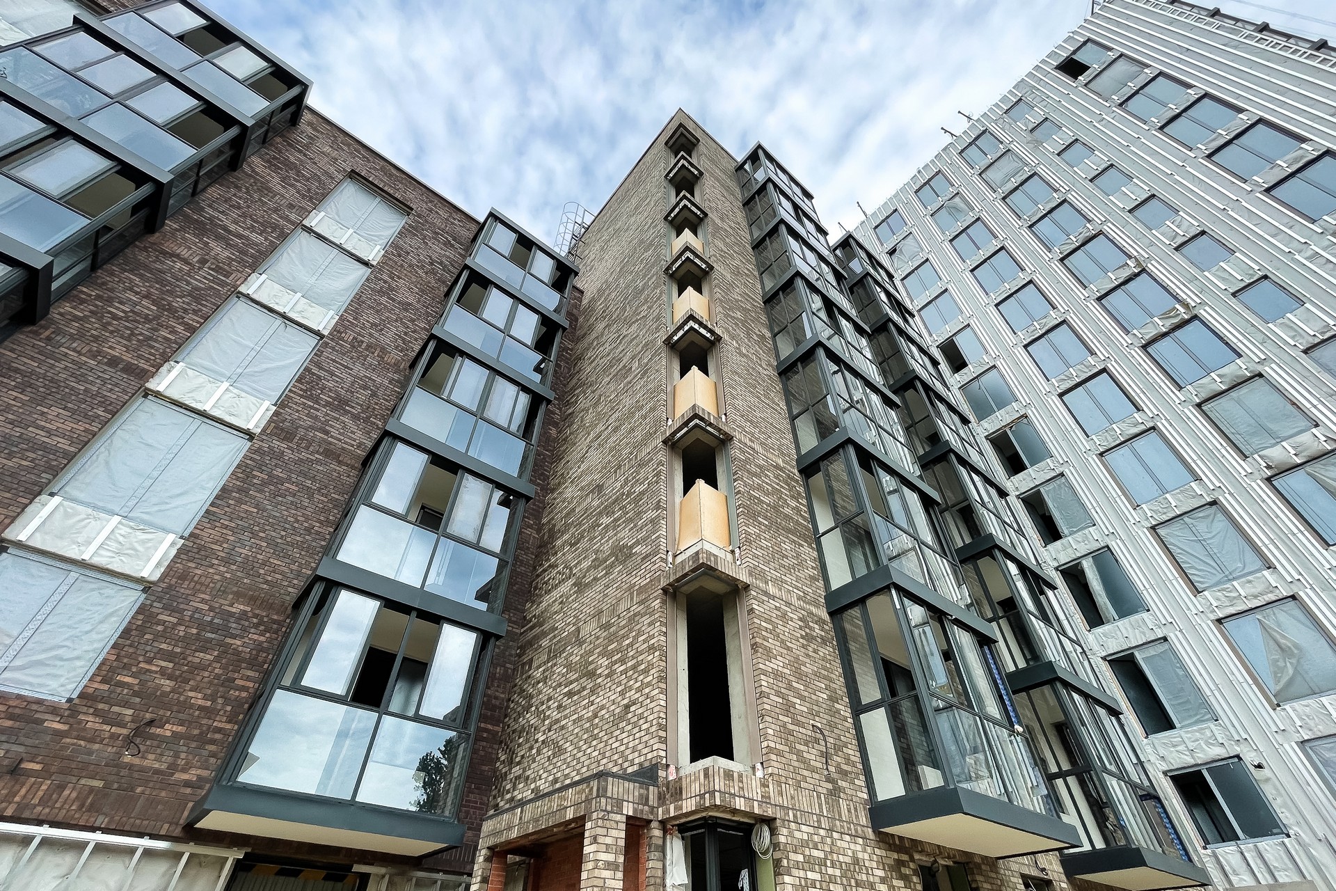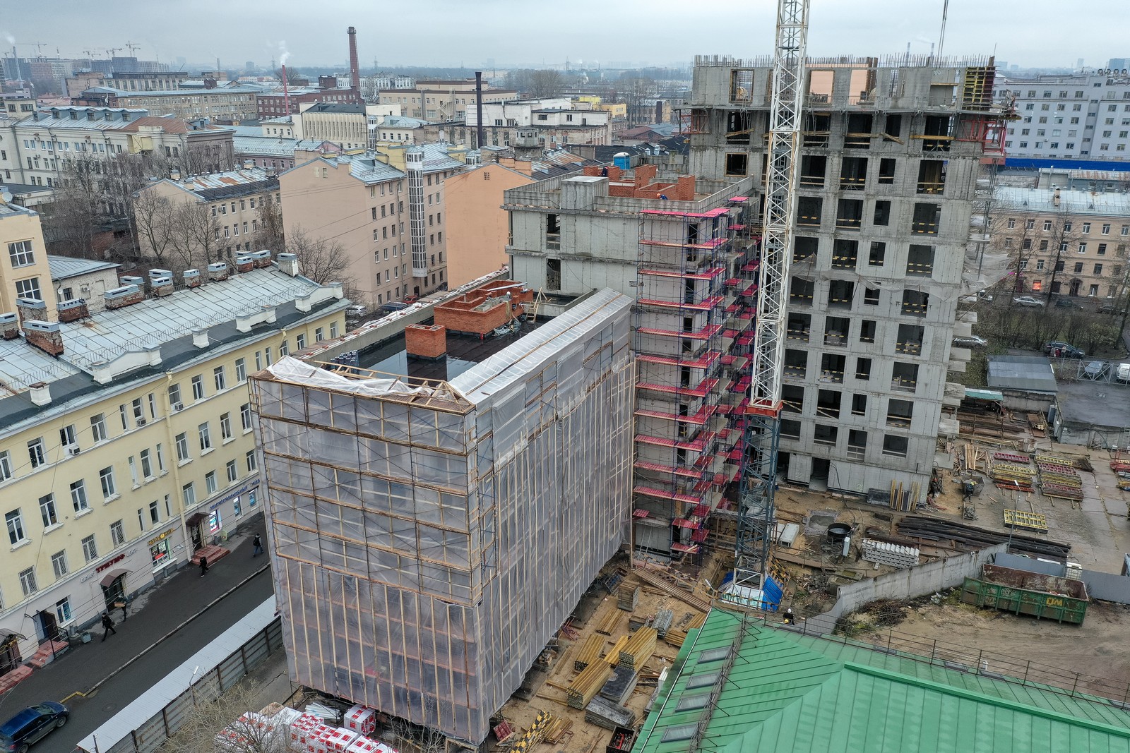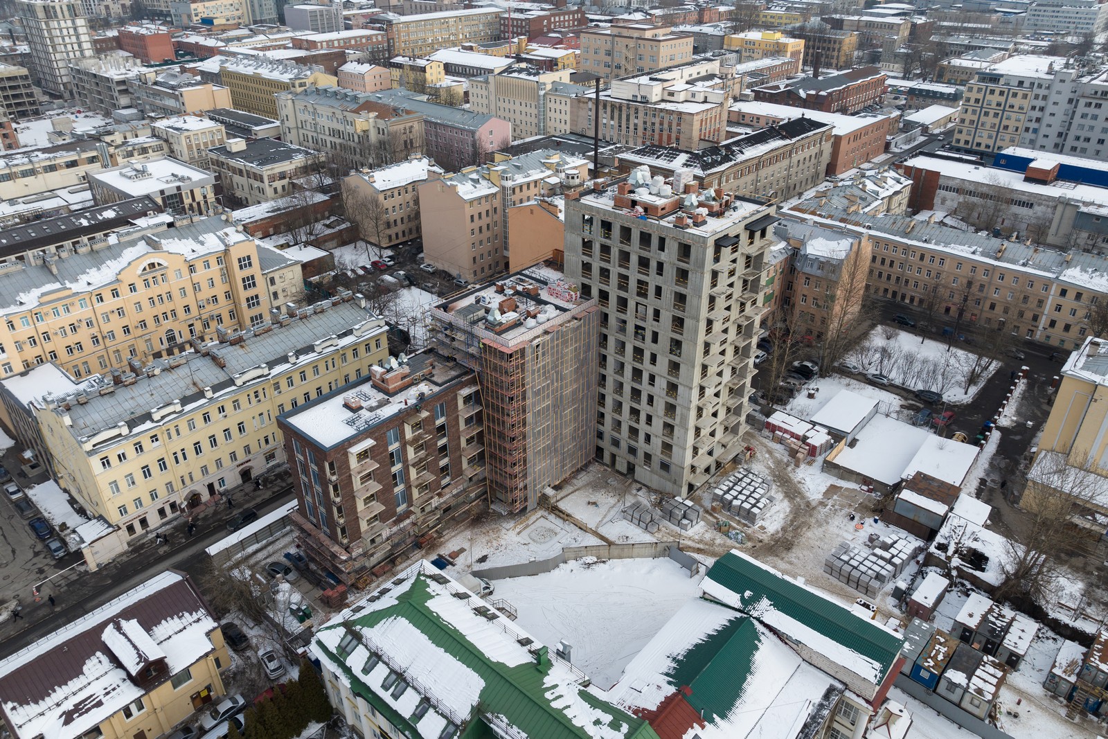 В оригинальном архитектурном облике дома из двух секций в 7 и 12 этажей прослеживаются мотивы холодного скандинавского стиля, брутального лофта и индустриальной застройки Московской заставы.
