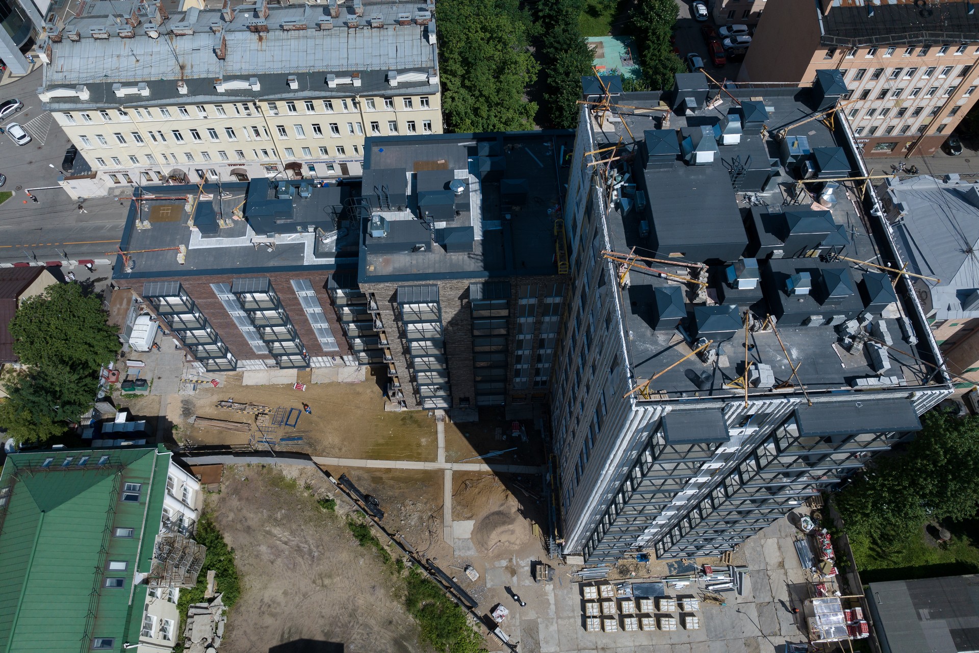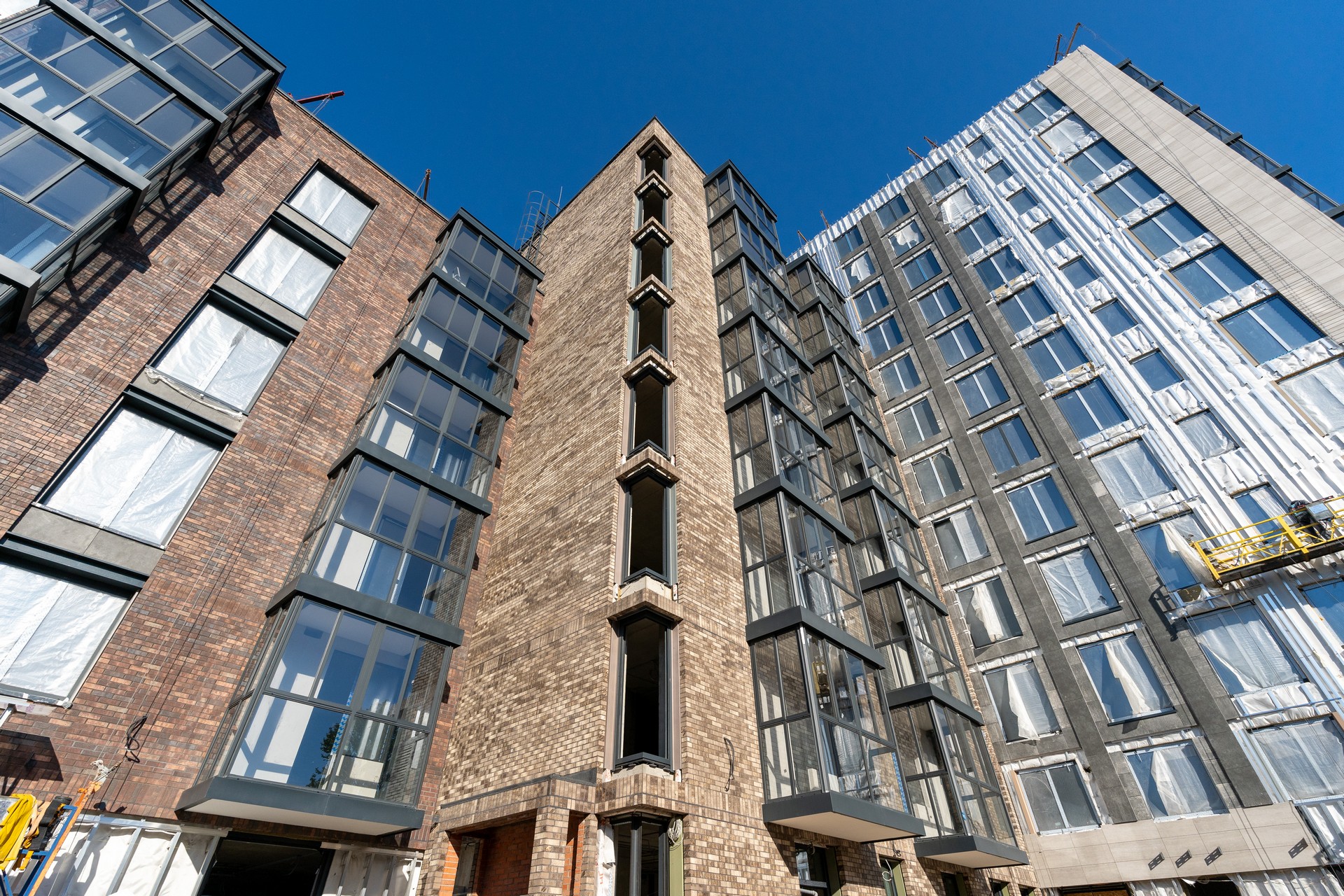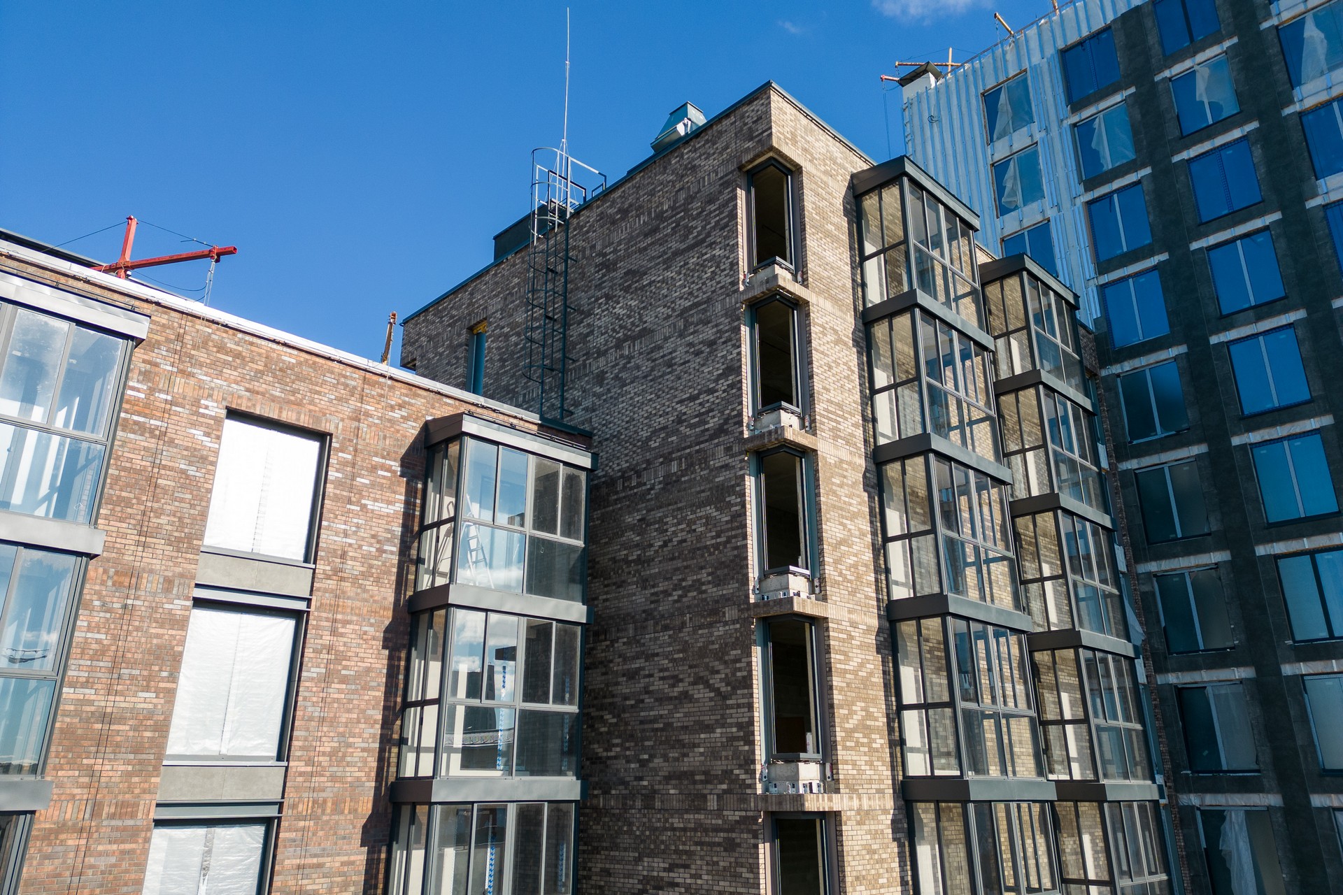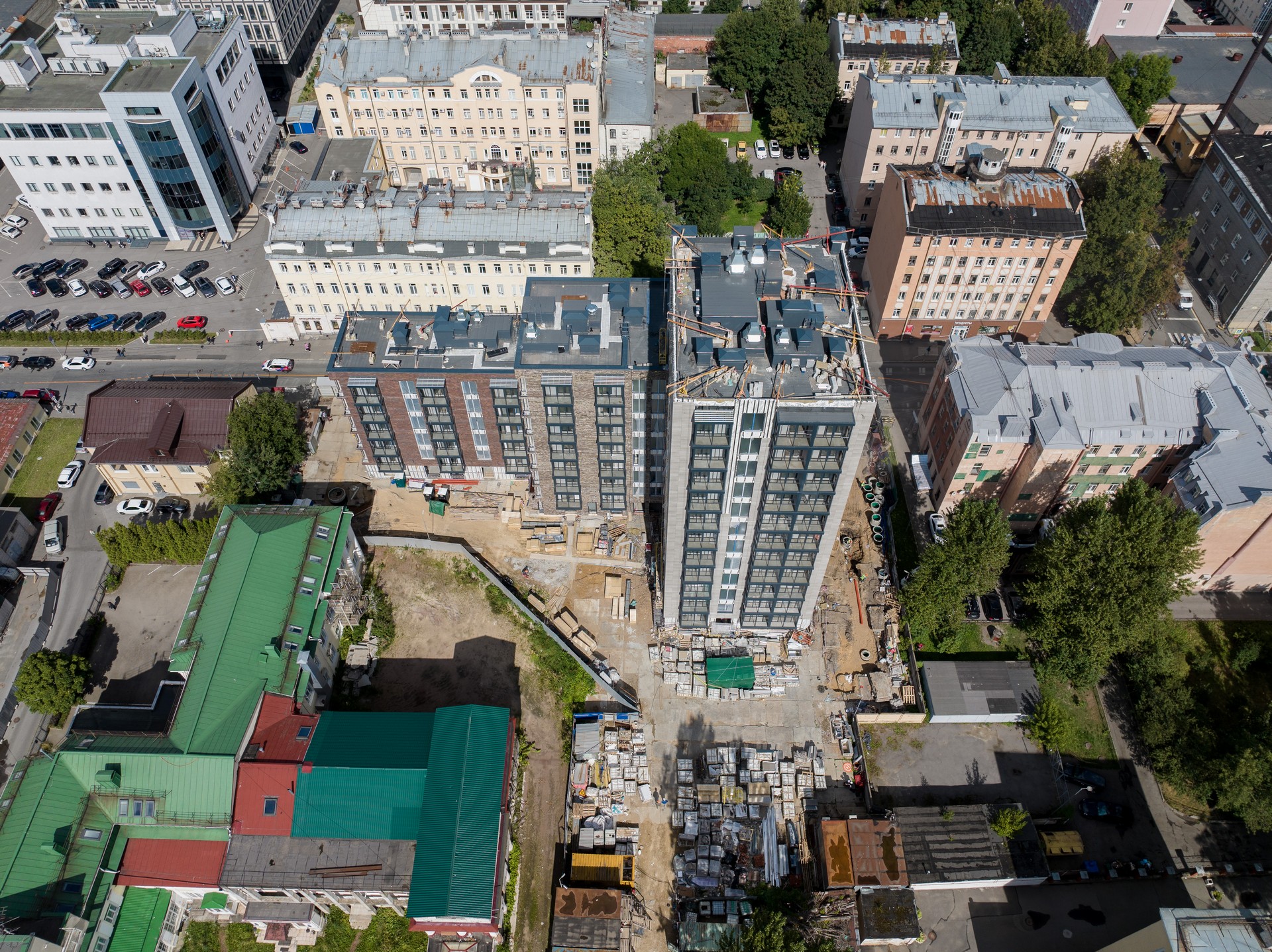 В оригинальном архитектурном облике дома из двух секций в 7 и 12 этажей прослеживаются мотивы холодного скандинавского стиля, брутального лофта и индустриальной застройки Московской заставы.