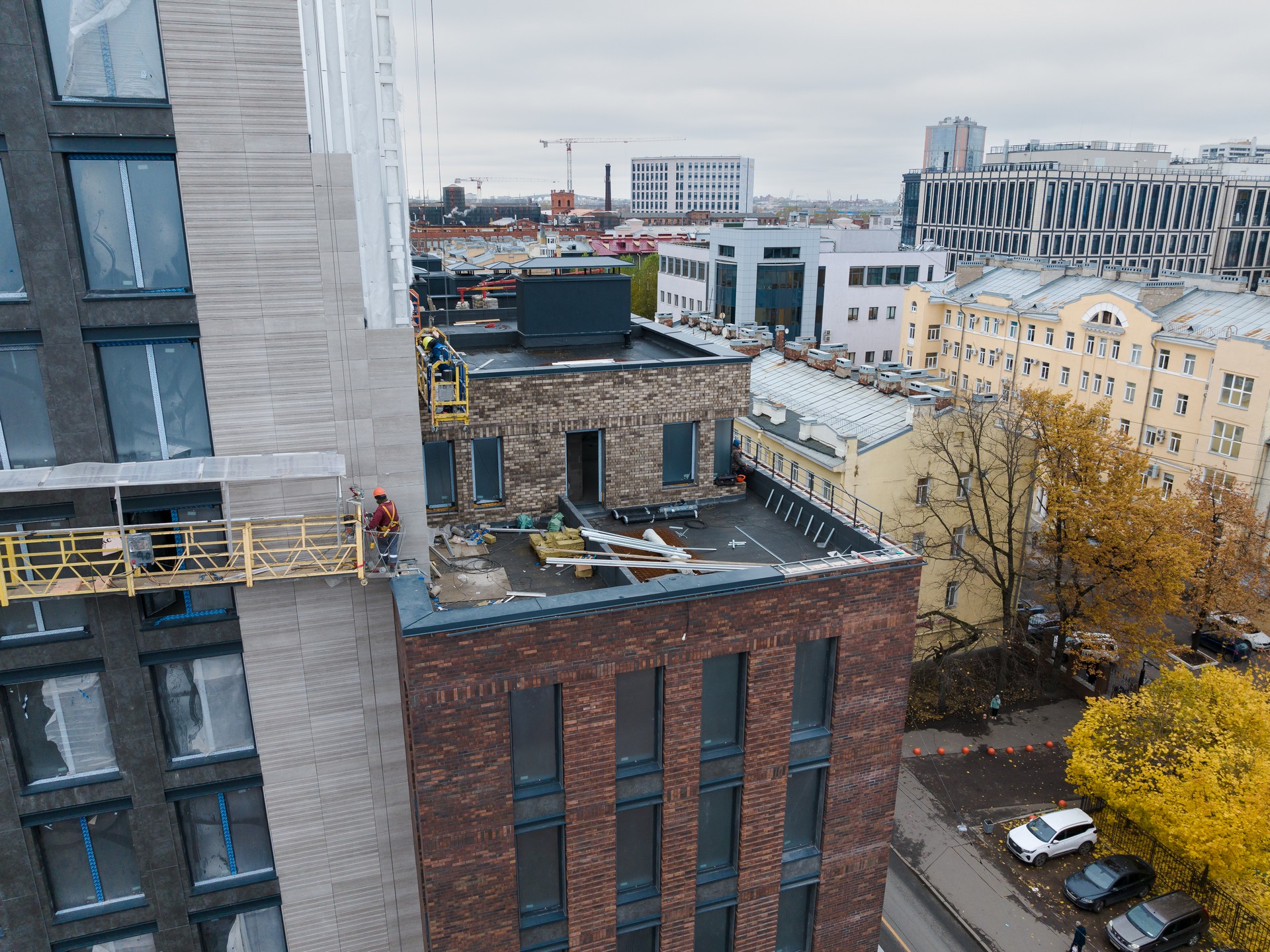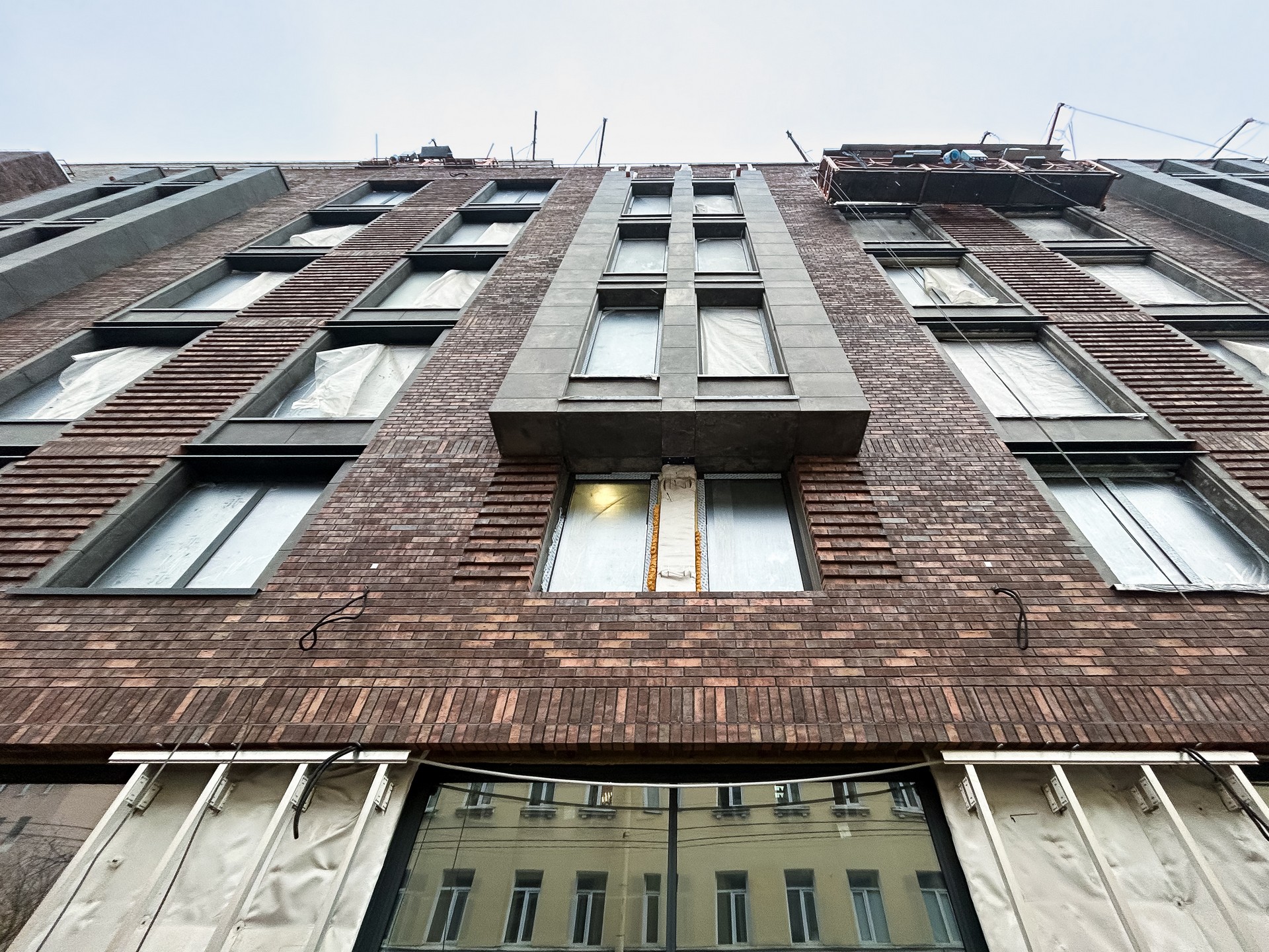 В оригинальном архитектурном облике дома из двух секций в 7 и 12 этажей прослеживаются мотивы холодного скандинавского стиля, брутального лофта и индустриальной застройки Московской заставы.