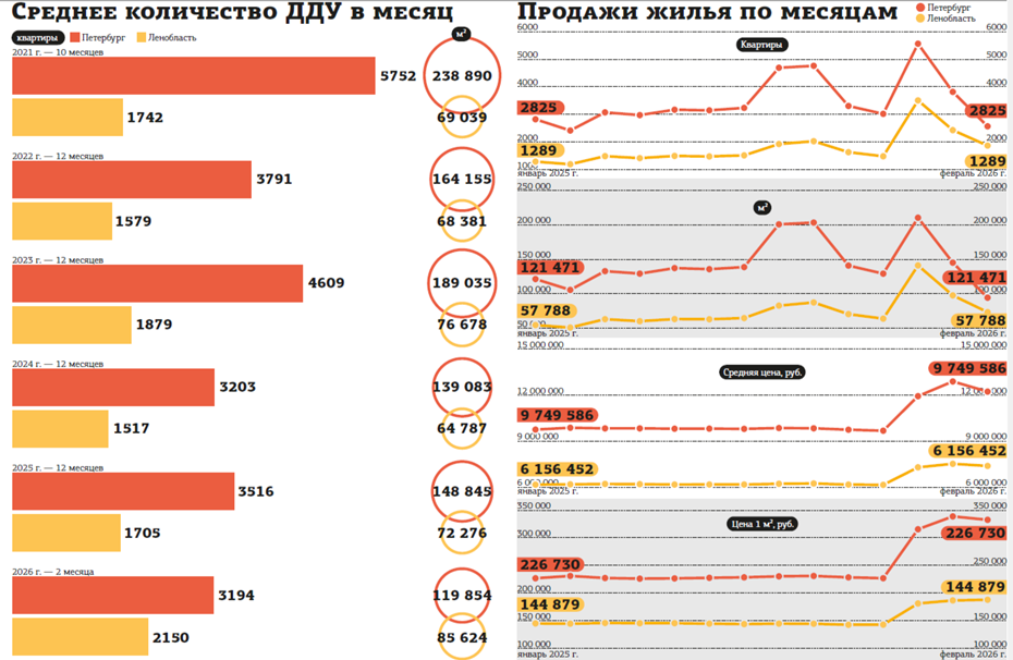 В Петербурге продажи жилья в феврале 2026 года упали на треть